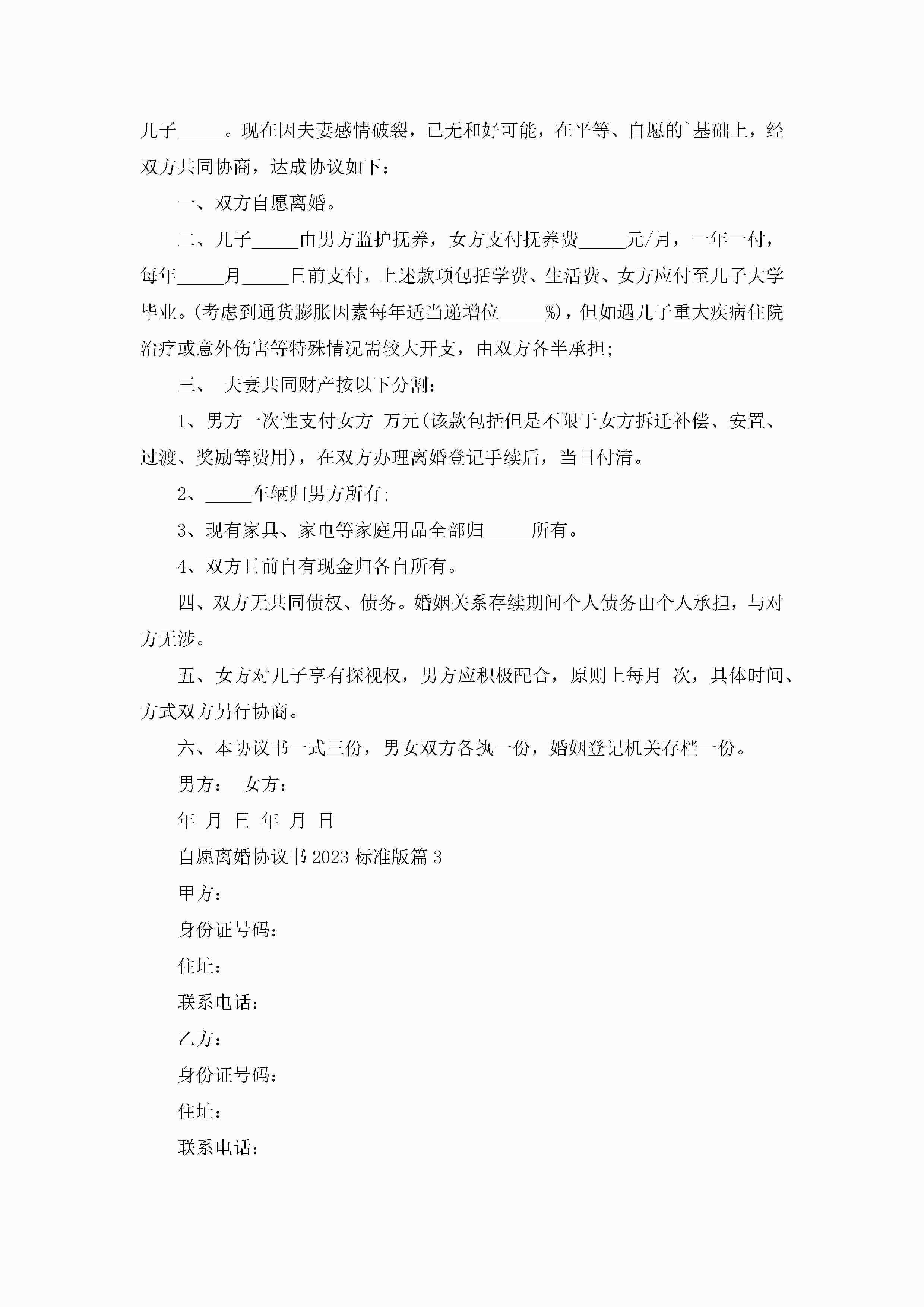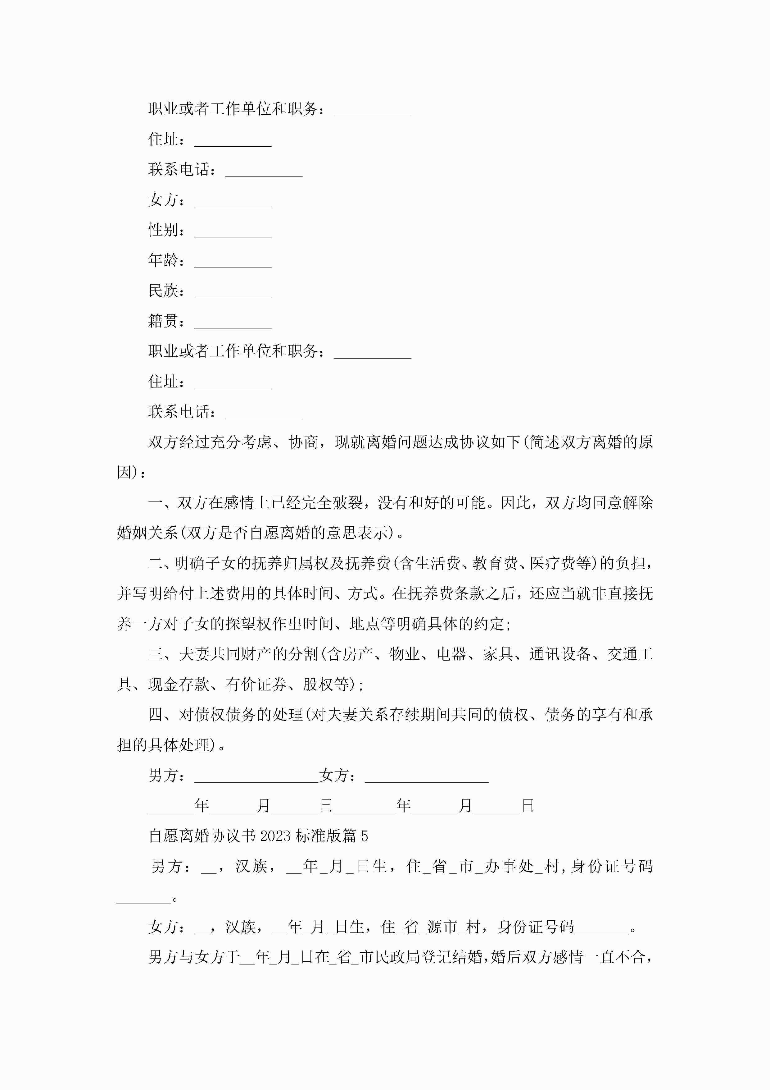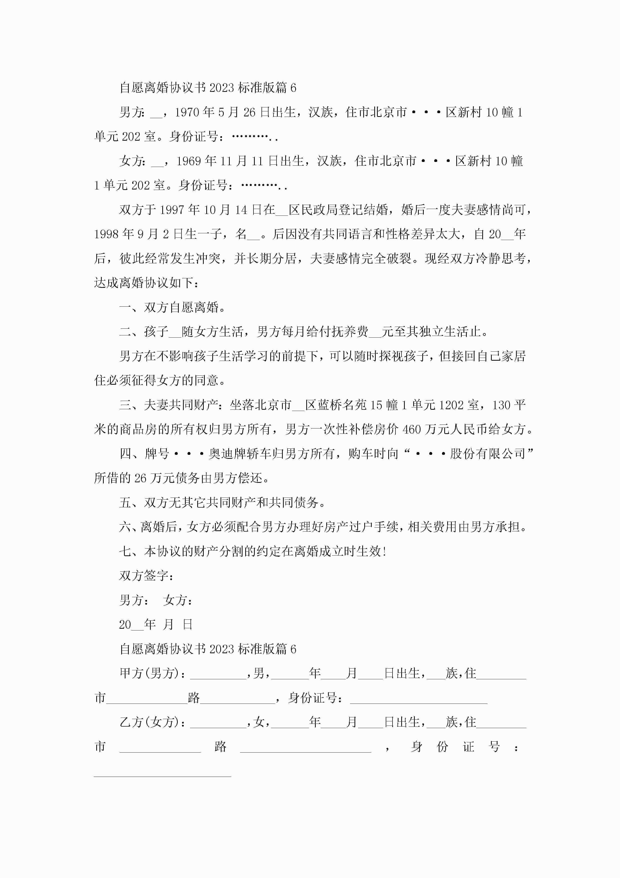 自愿离婚协议书2023标准版【7篇】jugei3月22日 01:32发布关注282 自愿离婚协议书2023标准版【7篇】此内容为付费资源,请付费后查看¥10.9 单篇文档限时特惠¥15个人会员开通企业会员开通立即下载无需登陆!可直接快捷下载单个模板付费资源© 版权声明THE ENDWord模板# 实用文档# 信函模板# 协议书# 自愿离婚协议书2023标准版 如有问题,可点击最底部“联系我们”联系客服 分享QQ空间微博QQ好友海报分享复制链接收藏