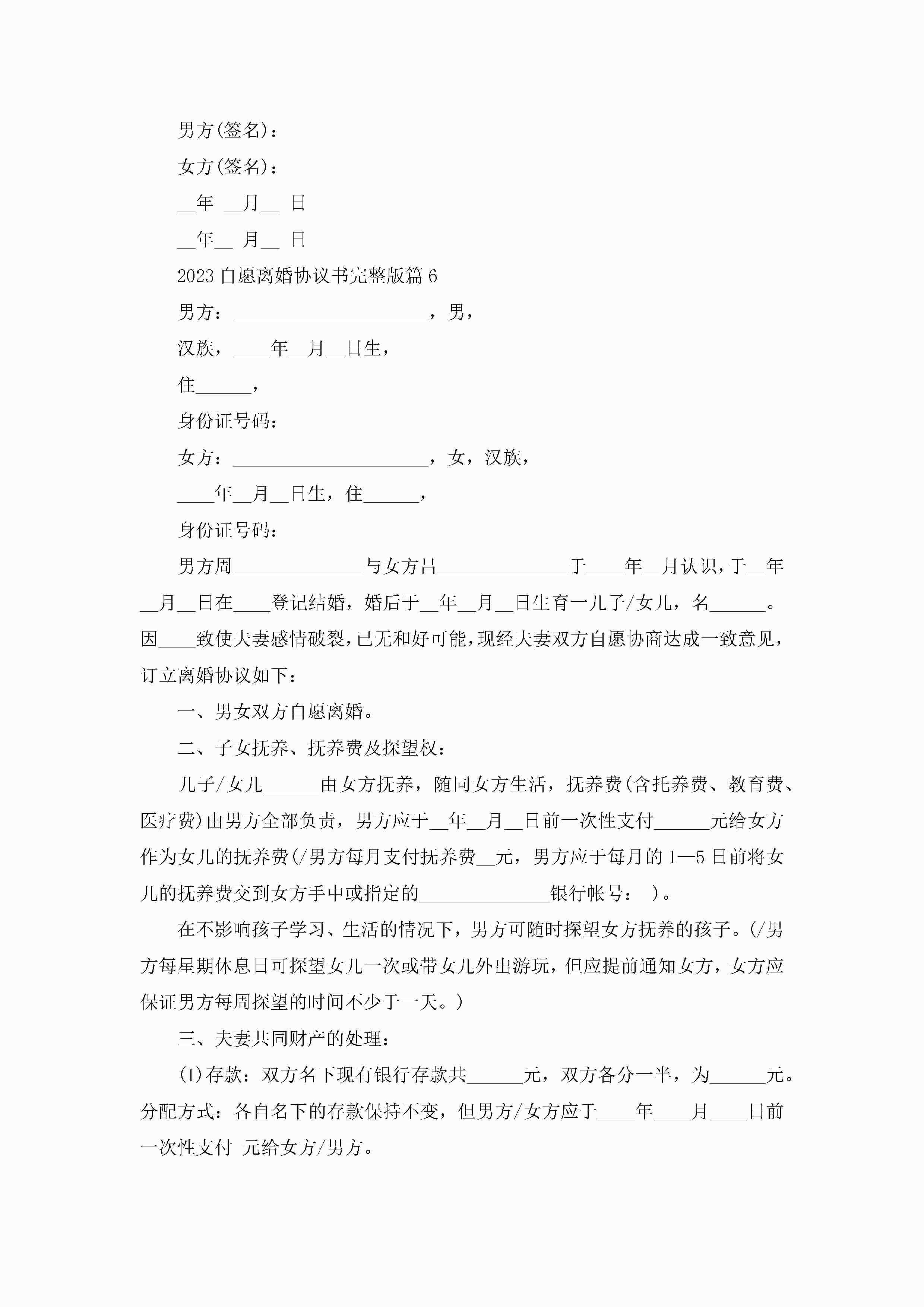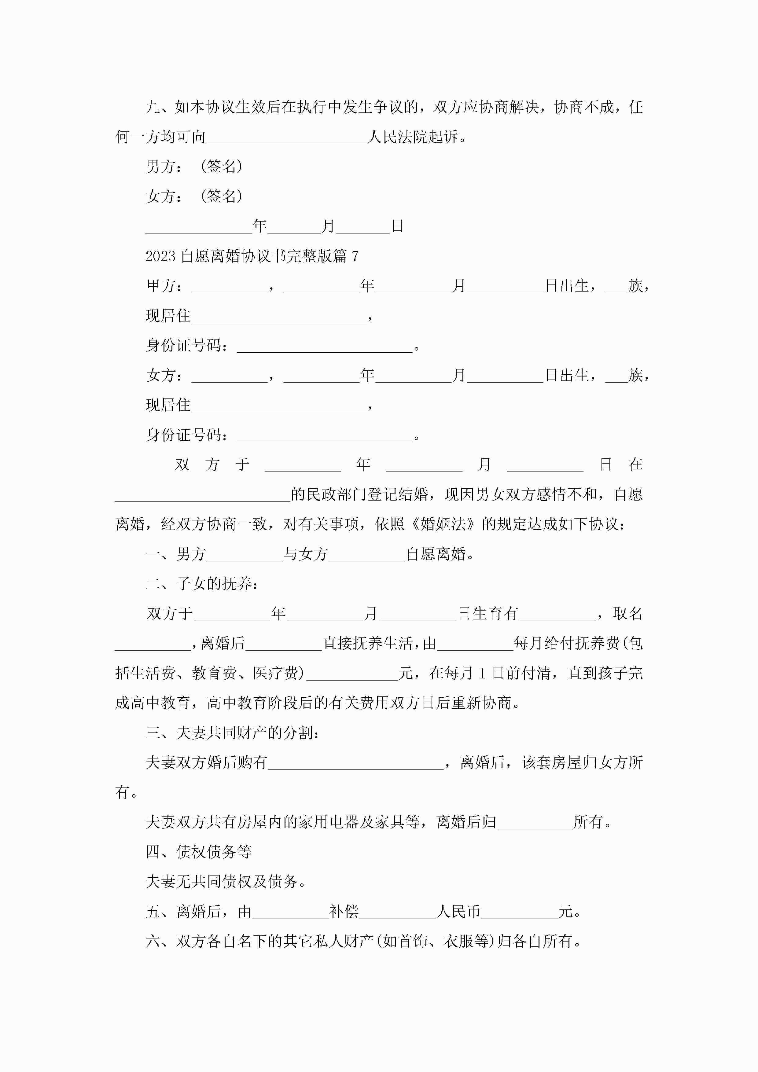 2023自愿离婚协议书完整版【7篇】jugei3月22日 01:32发布关注252 2023自愿离婚协议书完整版【7篇】此内容为付费资源,请付费后查看¥10.9 单篇文档限时特惠¥15个人会员开通企业会员开通立即下载无需登陆!可直接快捷下载单个模板付费资源© 版权声明THE ENDWord模板# 实用文档# 信函模板# 协议书# 2023自愿离婚协议书完整版 如有问题,可点击最底部“联系我们”联系客服 分享QQ空间微博QQ好友海报分享复制链接收藏
