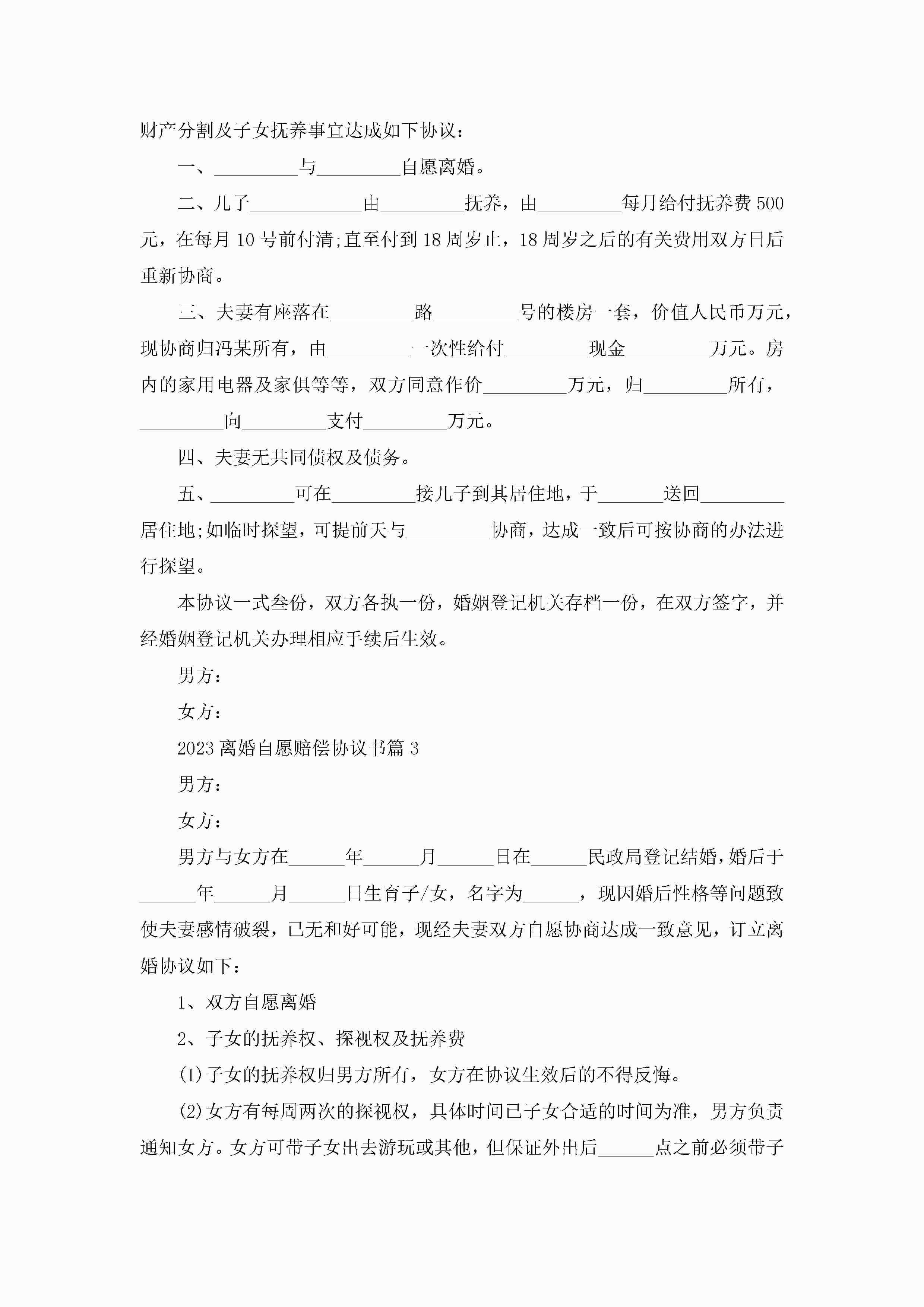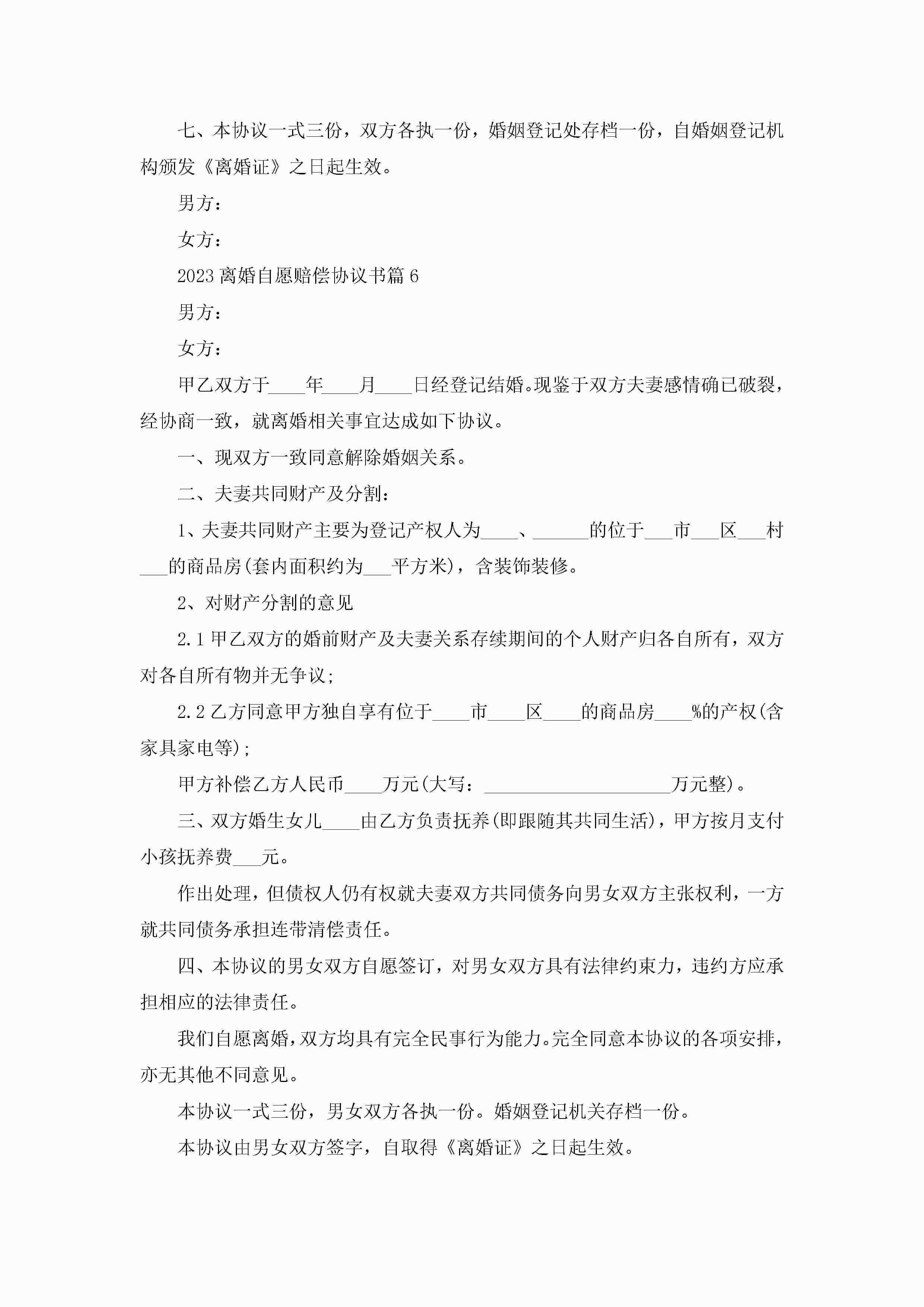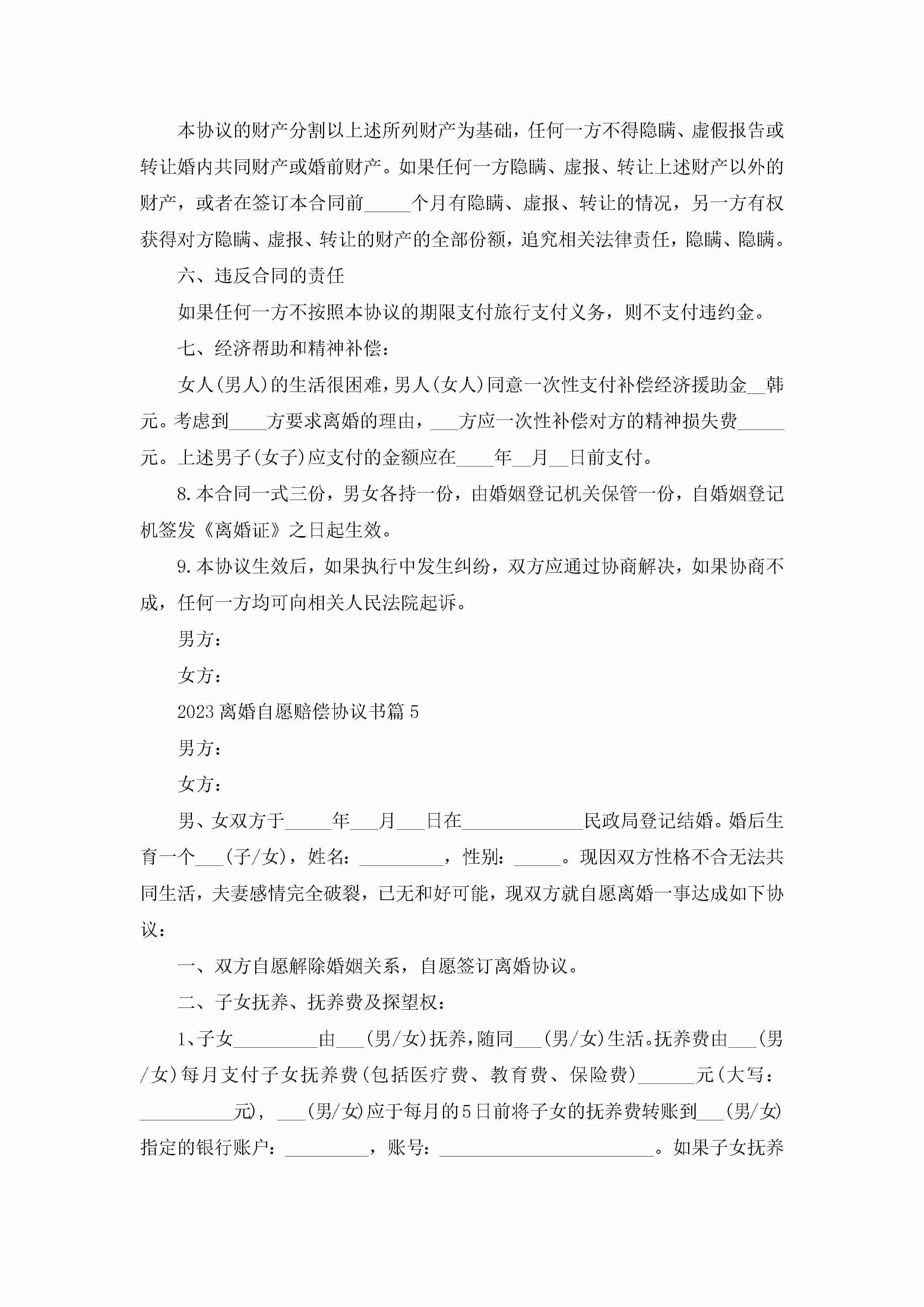 2023离婚自愿赔偿协议书【7篇】jugei3月22日 01:32发布关注231 2023离婚自愿赔偿协议书【7篇】此内容为付费资源,请付费后查看¥10.9 单篇文档限时特惠¥15个人会员开通企业会员开通立即下载无需登陆!可直接快捷下载单个模板付费资源© 版权声明THE ENDWord模板# 实用文档# 信函模板# 协议书# 2023离婚自愿赔偿协议书 如有问题,可点击最底部“联系我们”联系客服 分享QQ空间微博QQ好友海报分享复制链接收藏