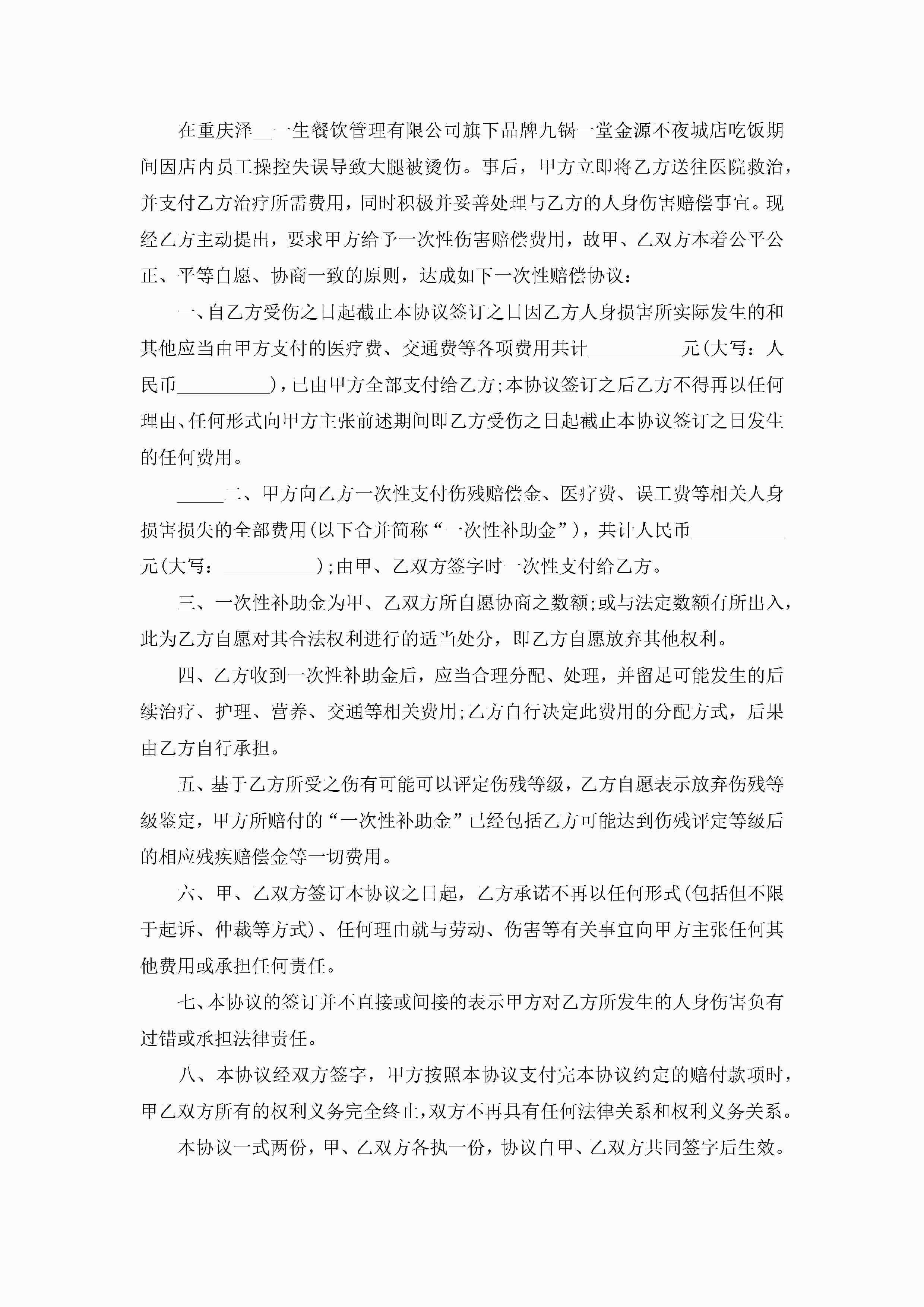 2023赔偿协议书标准版模板【7篇】jugei3月22日 01:32发布关注196 2023赔偿协议书标准版模板【7篇】此内容为付费资源,请付费后查看¥10.9 单篇文档限时特惠¥15个人会员开通企业会员开通立即下载无需登陆!可直接快捷下载单个模板付费资源© 版权声明THE ENDWord模板# 实用文档# 信函模板# 协议书# 2023赔偿协议书标准版模板 如有问题,可点击最底部“联系我们”联系客服 分享QQ空间微博QQ好友海报分享复制链接收藏