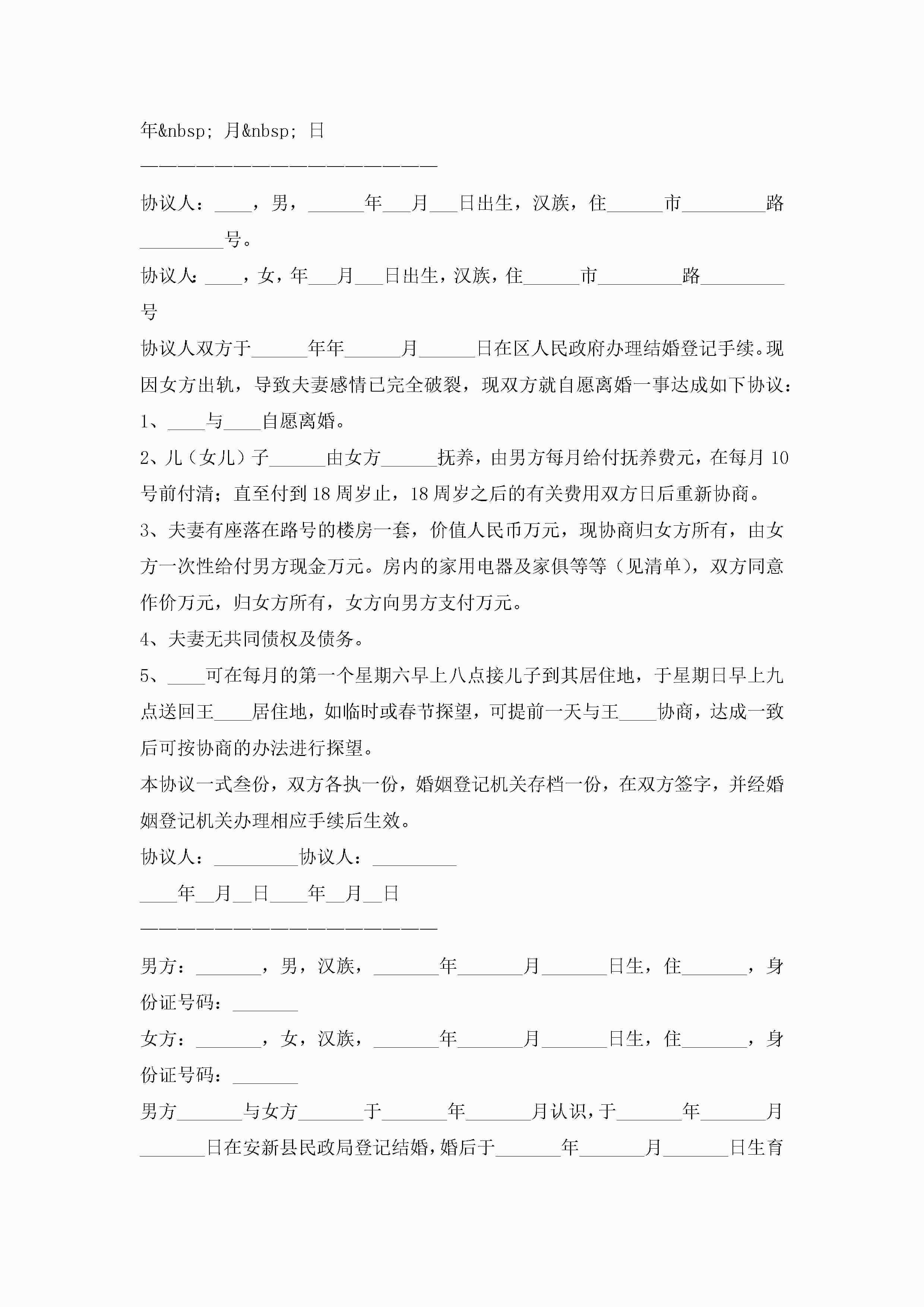 2022年净身出户离婚协议书(精选10篇)jugei3月22日 01:32发布关注351 2022年净身出户离婚协议书(精选10篇)此内容为付费资源,请付费后查看¥10.9 单篇文档限时特惠¥15个人会员开通企业会员开通立即下载无需登陆!可直接快捷下载单个模板付费资源© 版权声明THE ENDWord模板# 实用文档# 实用模板# 信函模板# 协议书 如有问题,可点击最底部“联系我们”联系客服 分享QQ空间微博QQ好友海报分享复制链接收藏