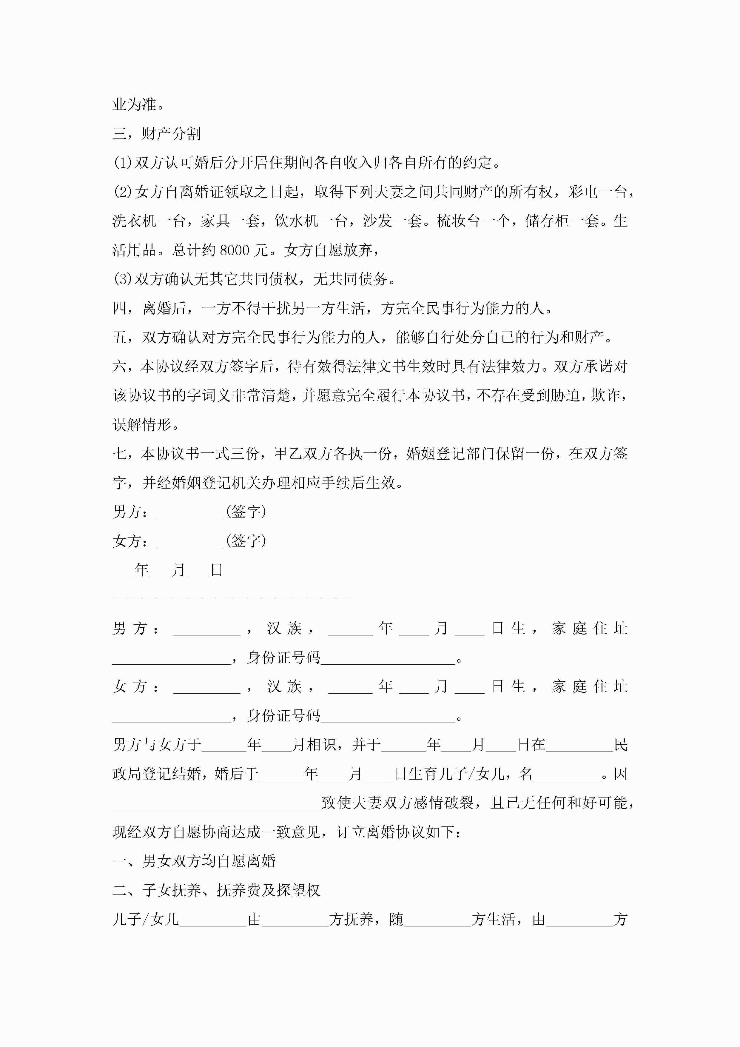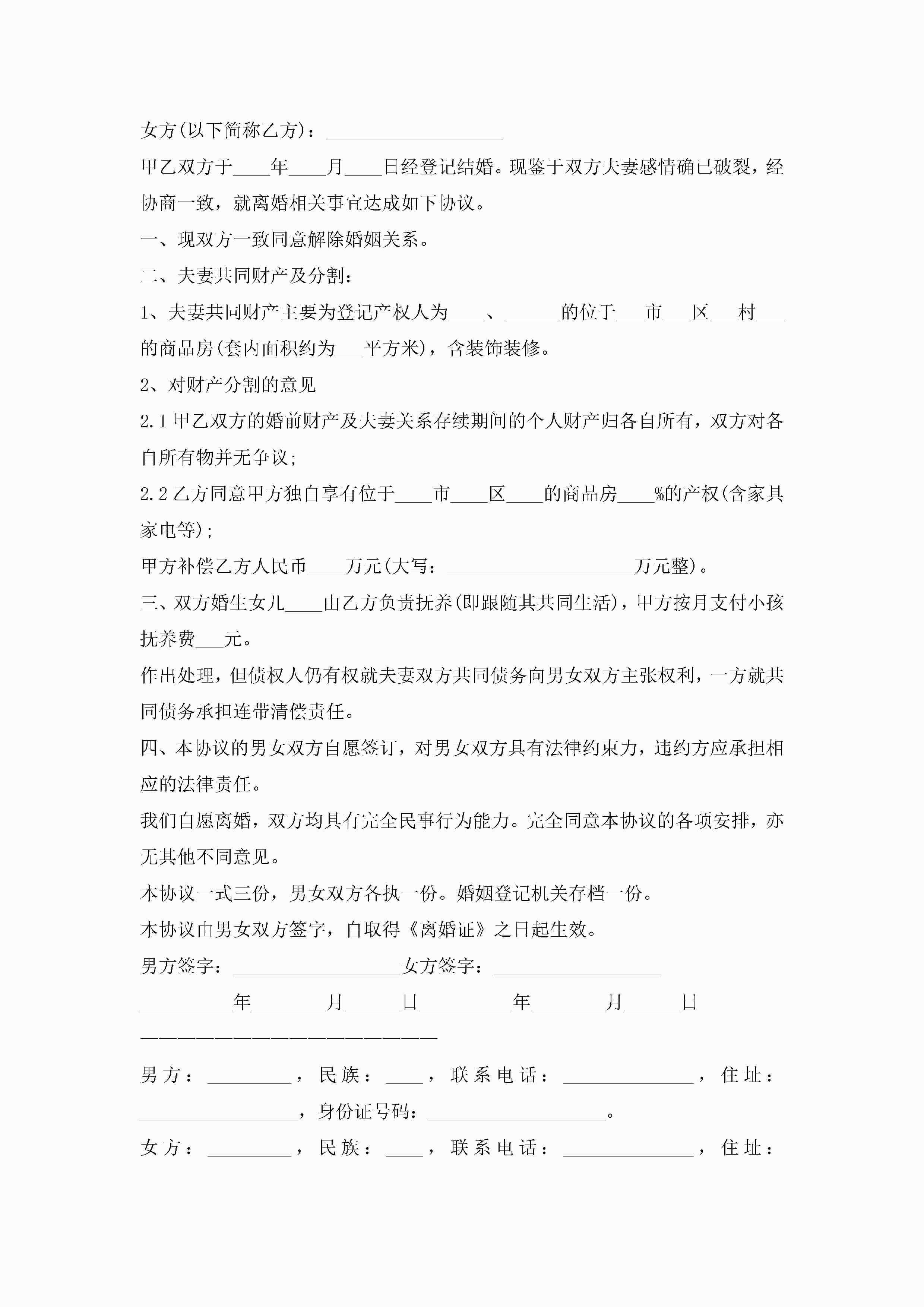 2022女方离婚协议书(精选10篇)jugei3月22日 01:32发布关注231 2022女方离婚协议书(精选10篇)此内容为付费资源,请付费后查看¥10.9 单篇文档限时特惠¥15个人会员开通企业会员开通立即下载无需登陆!可直接快捷下载单个模板付费资源© 版权声明THE ENDWord模板# 实用文档# 实用模板# 信函模板# 协议书 如有问题,可点击最底部“联系我们”联系客服 分享QQ空间微博QQ好友海报分享复制链接收藏