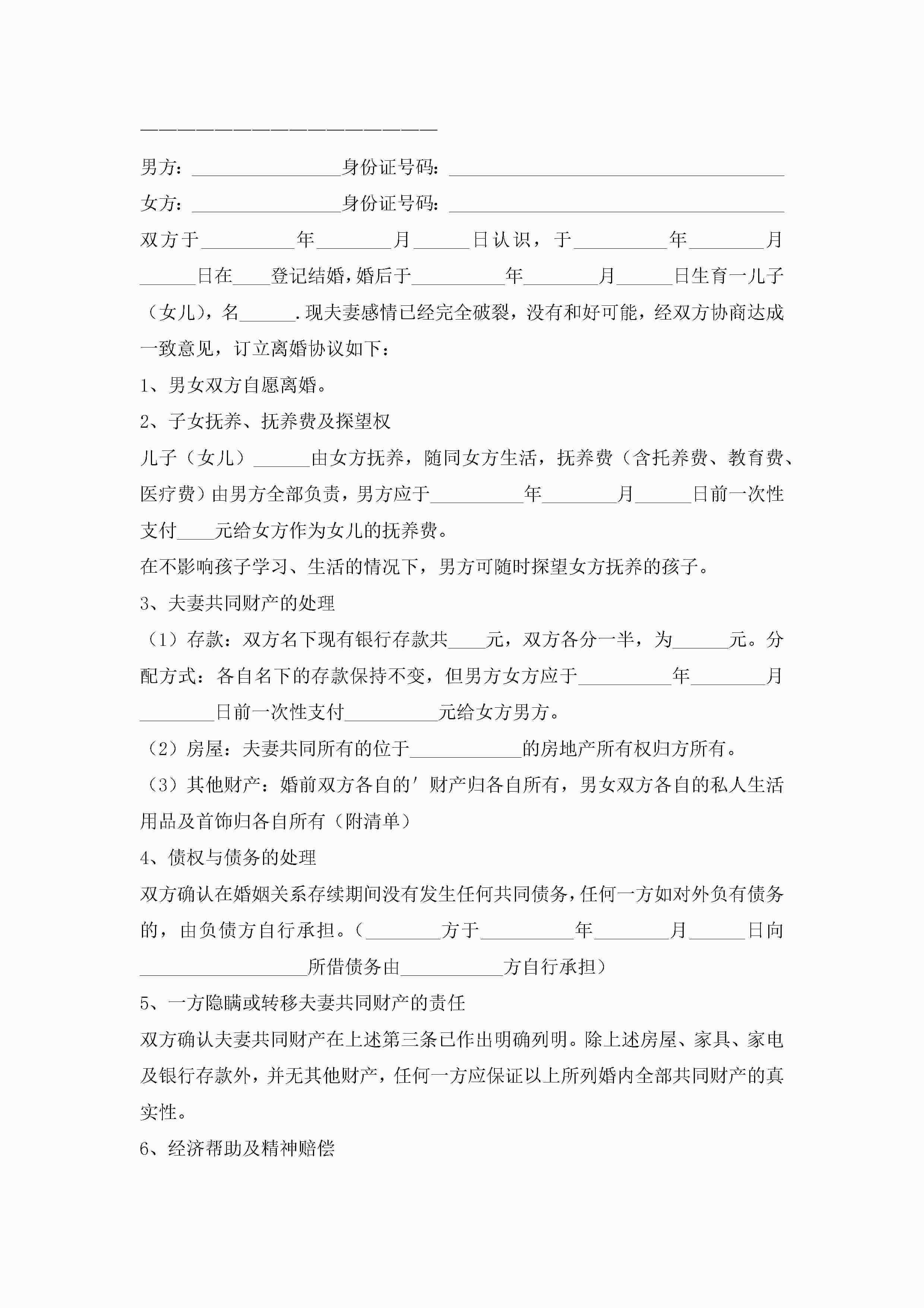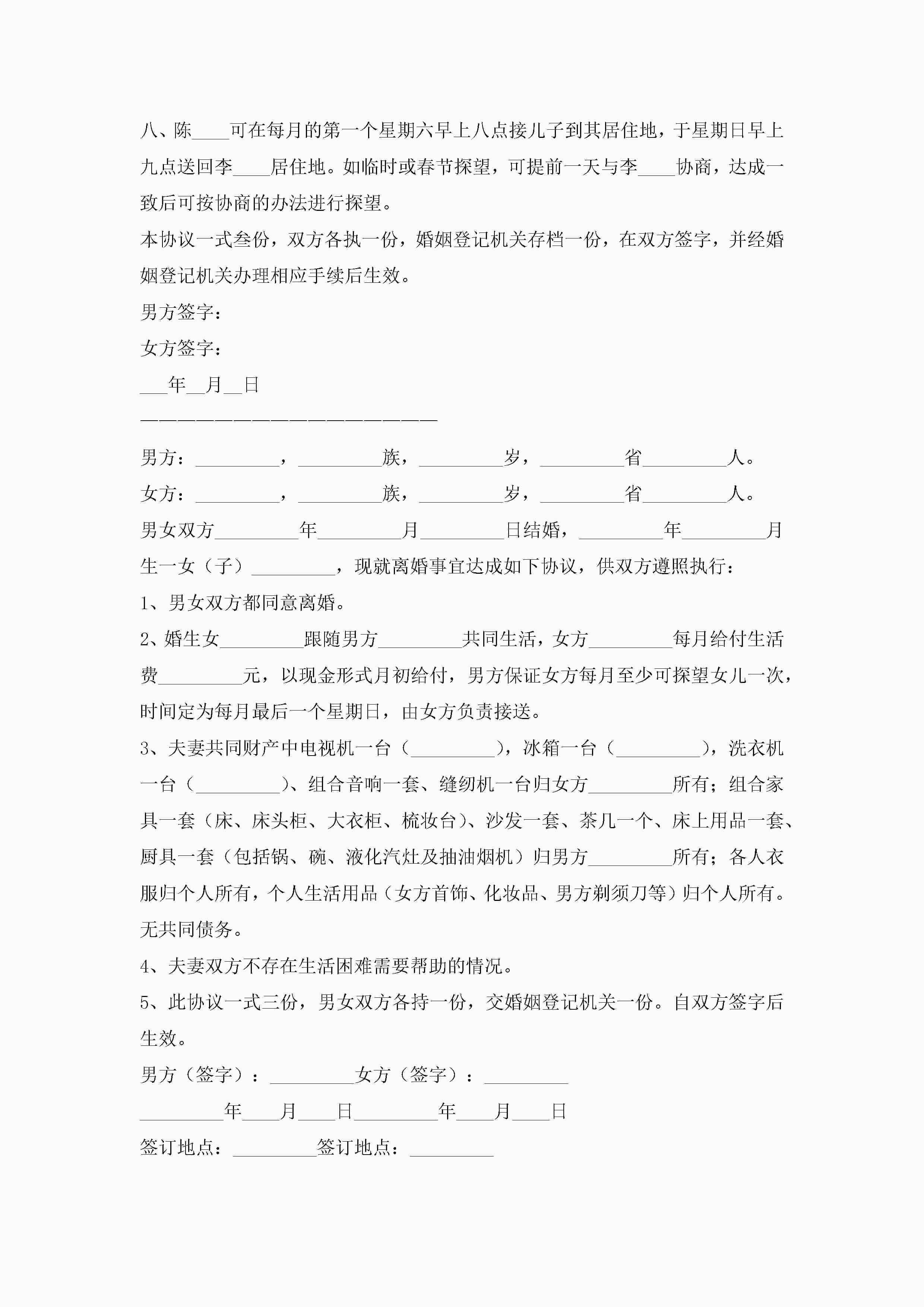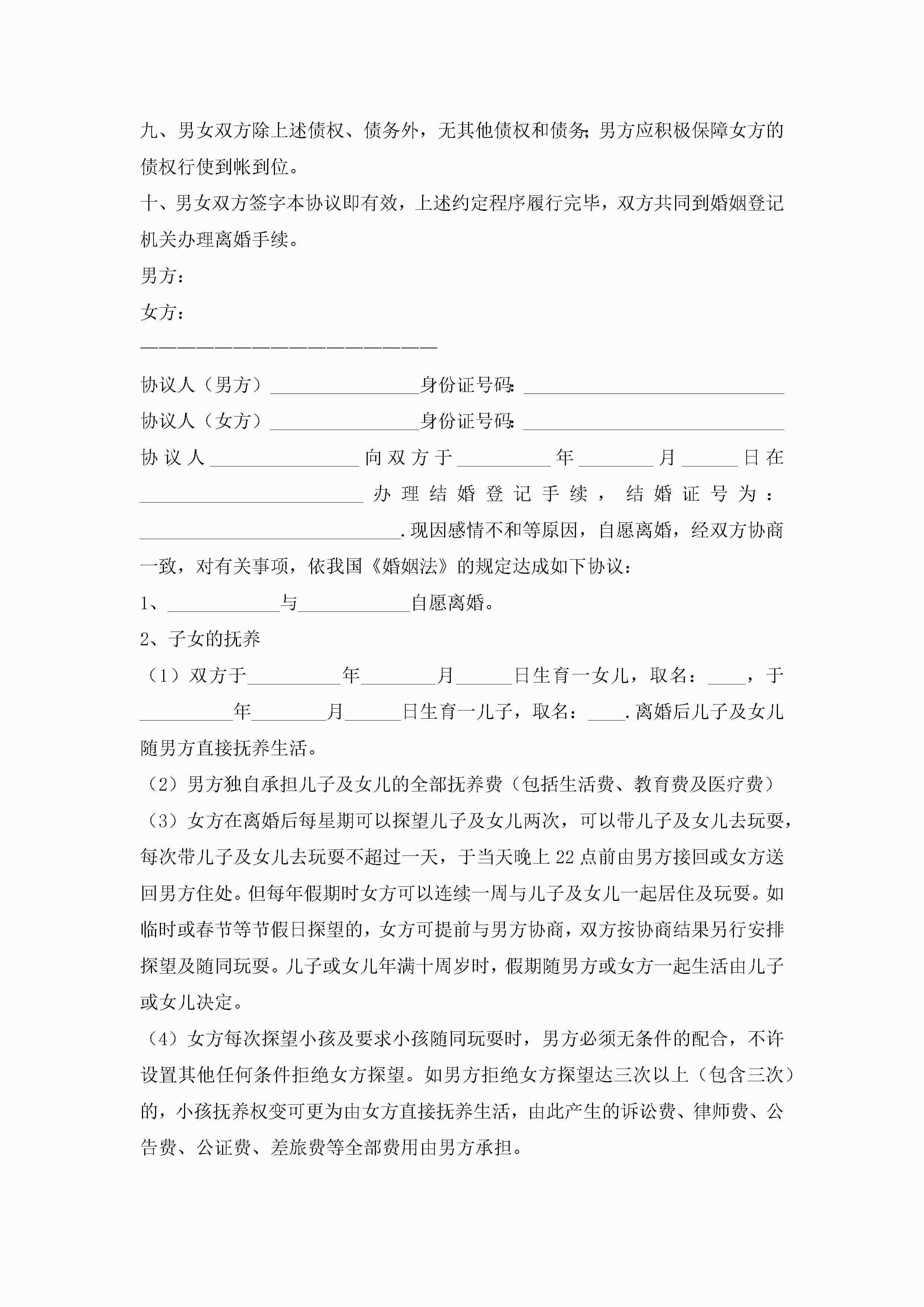 离婚子女抚养协议书2022年(精选10篇)jugei3月22日 01:32发布关注227 离婚子女抚养协议书2022年(精选10篇)此内容为付费资源,请付费后查看¥10.9 单篇文档限时特惠¥15个人会员开通企业会员开通立即下载无需登陆!可直接快捷下载单个模板付费资源© 版权声明THE ENDWord模板# 实用文档# 实用模板# 信函模板# 协议书 如有问题,可点击最底部“联系我们”联系客服 分享QQ空间微博QQ好友海报分享复制链接收藏
