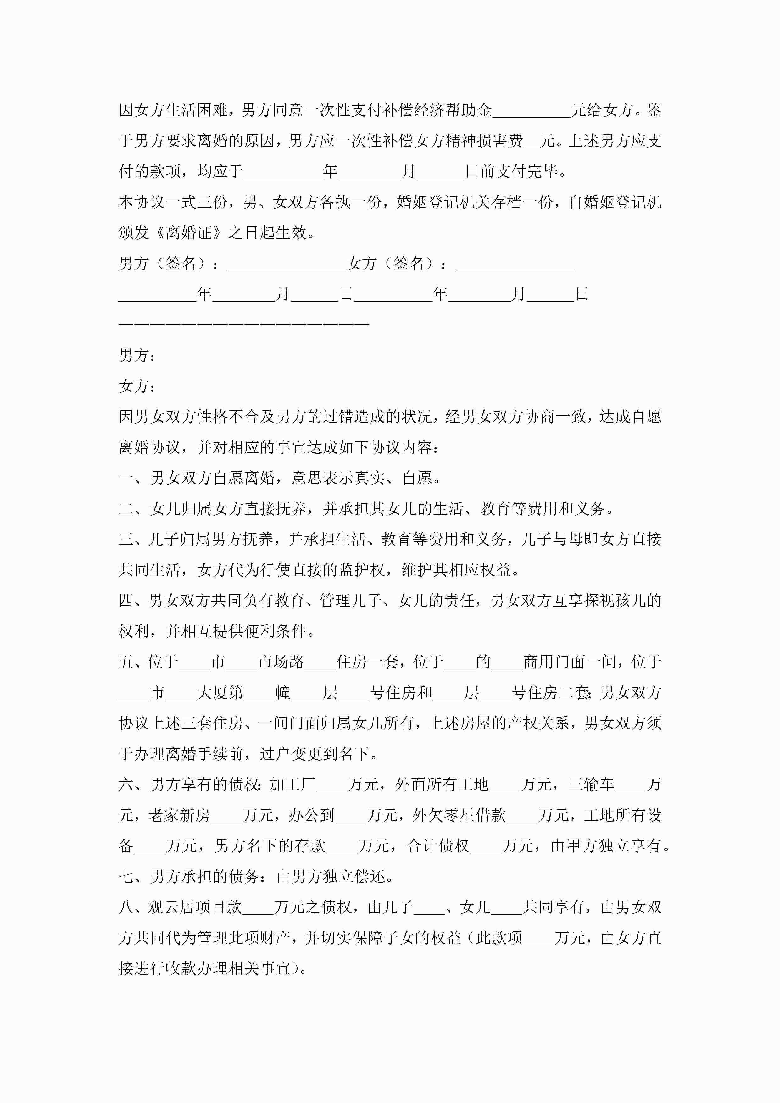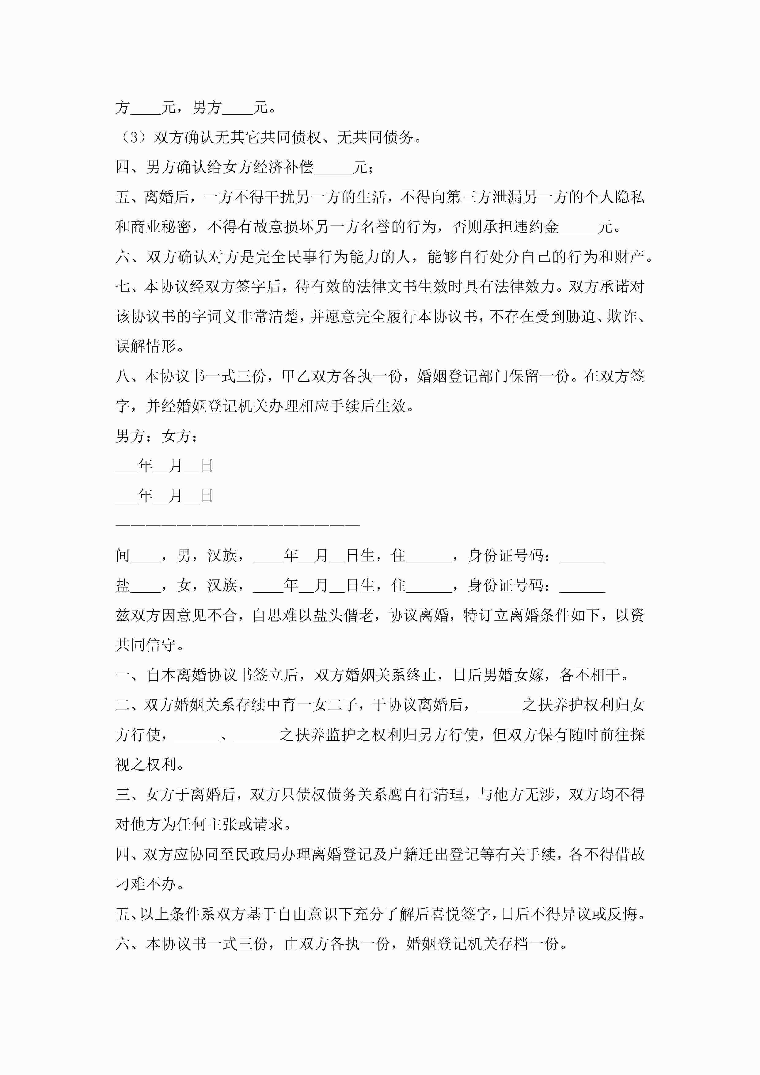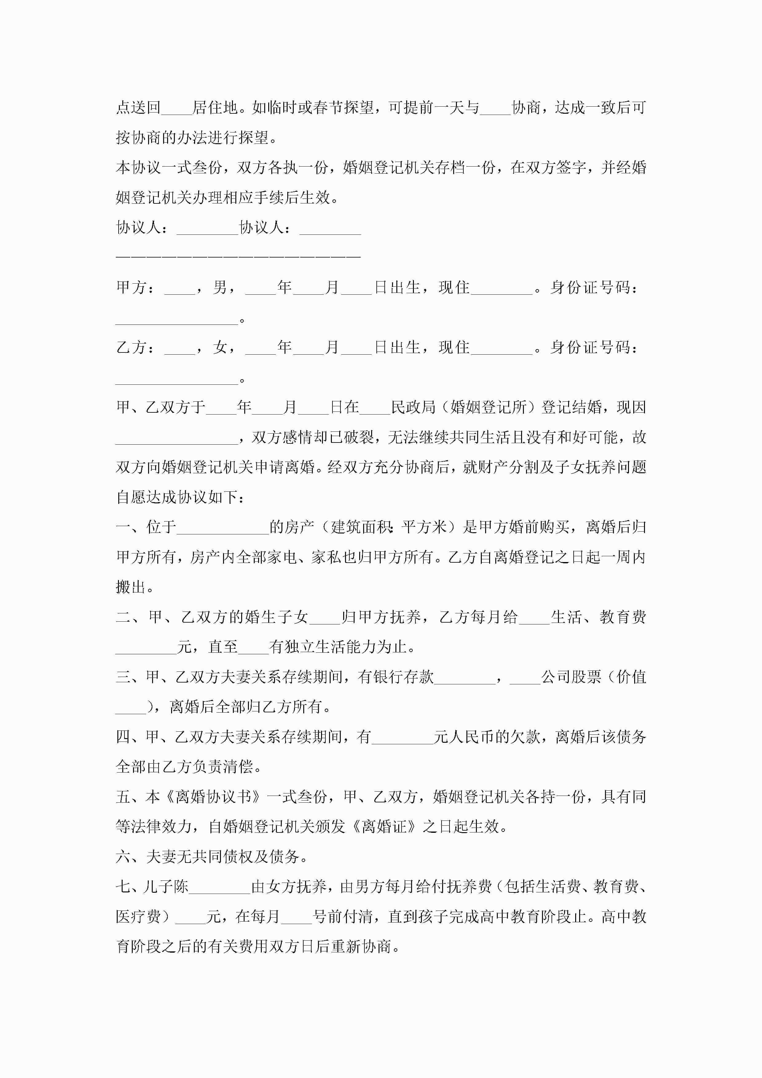 离婚子女抚养协议书2022年(精选10篇)jugei3月22日 01:32发布关注227 离婚子女抚养协议书2022年(精选10篇)此内容为付费资源,请付费后查看¥10.9 单篇文档限时特惠¥15个人会员开通企业会员开通立即下载无需登陆!可直接快捷下载单个模板付费资源© 版权声明THE ENDWord模板# 实用文档# 实用模板# 信函模板# 协议书 如有问题,可点击最底部“联系我们”联系客服 分享QQ空间微博QQ好友海报分享复制链接收藏