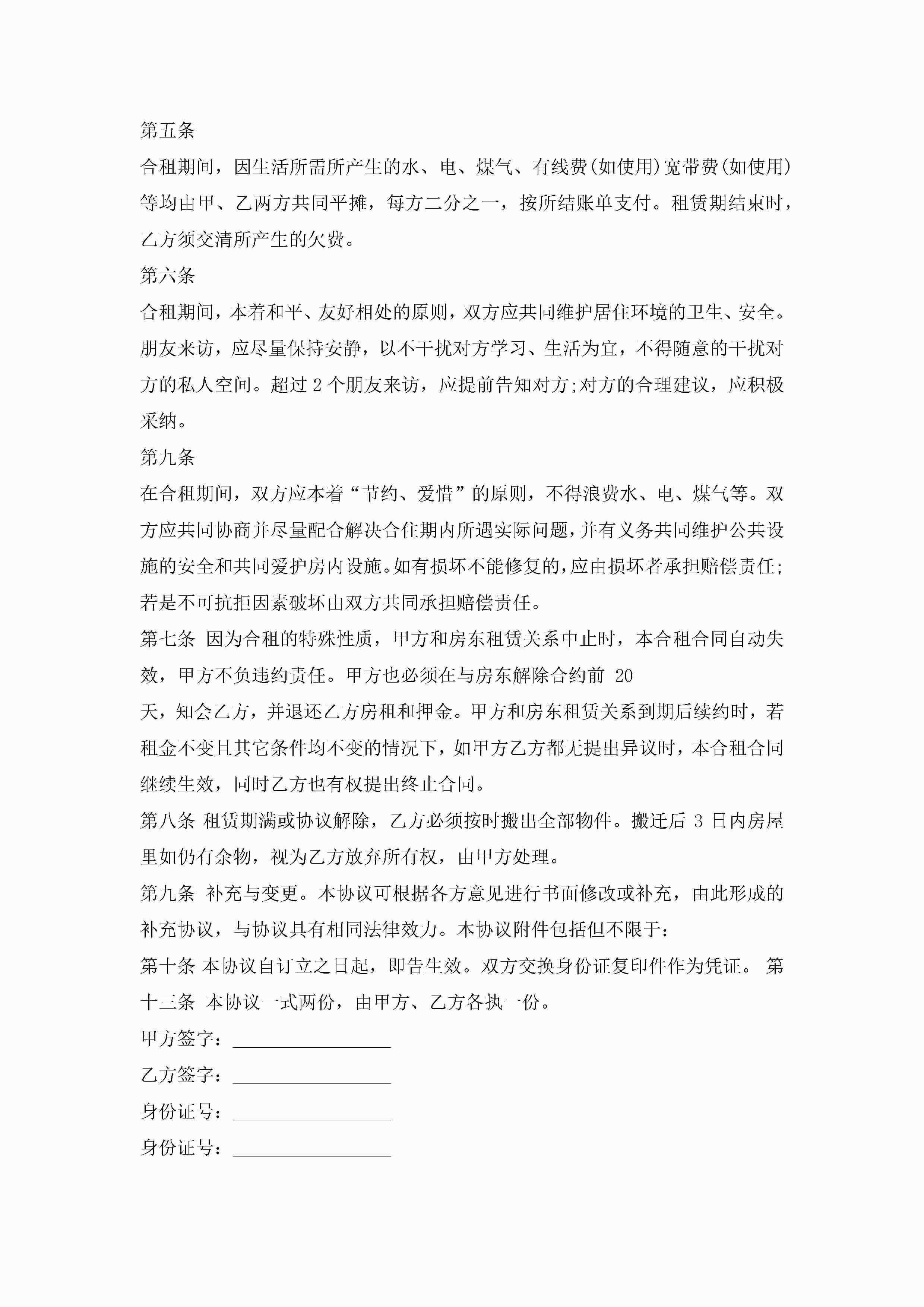 房屋合租协议(精选10篇)jugei3月22日 01:32发布关注224 房屋合租协议(精选10篇)此内容为付费资源,请付费后查看¥10.9 单篇文档限时特惠¥15个人会员开通企业会员开通立即下载无需登陆!可直接快捷下载单个模板付费资源© 版权声明THE ENDWord模板# 实用文档# 实用模板# 信函模板# 协议书 如有问题,可点击最底部“联系我们”联系客服 分享QQ空间微博QQ好友海报分享复制链接收藏