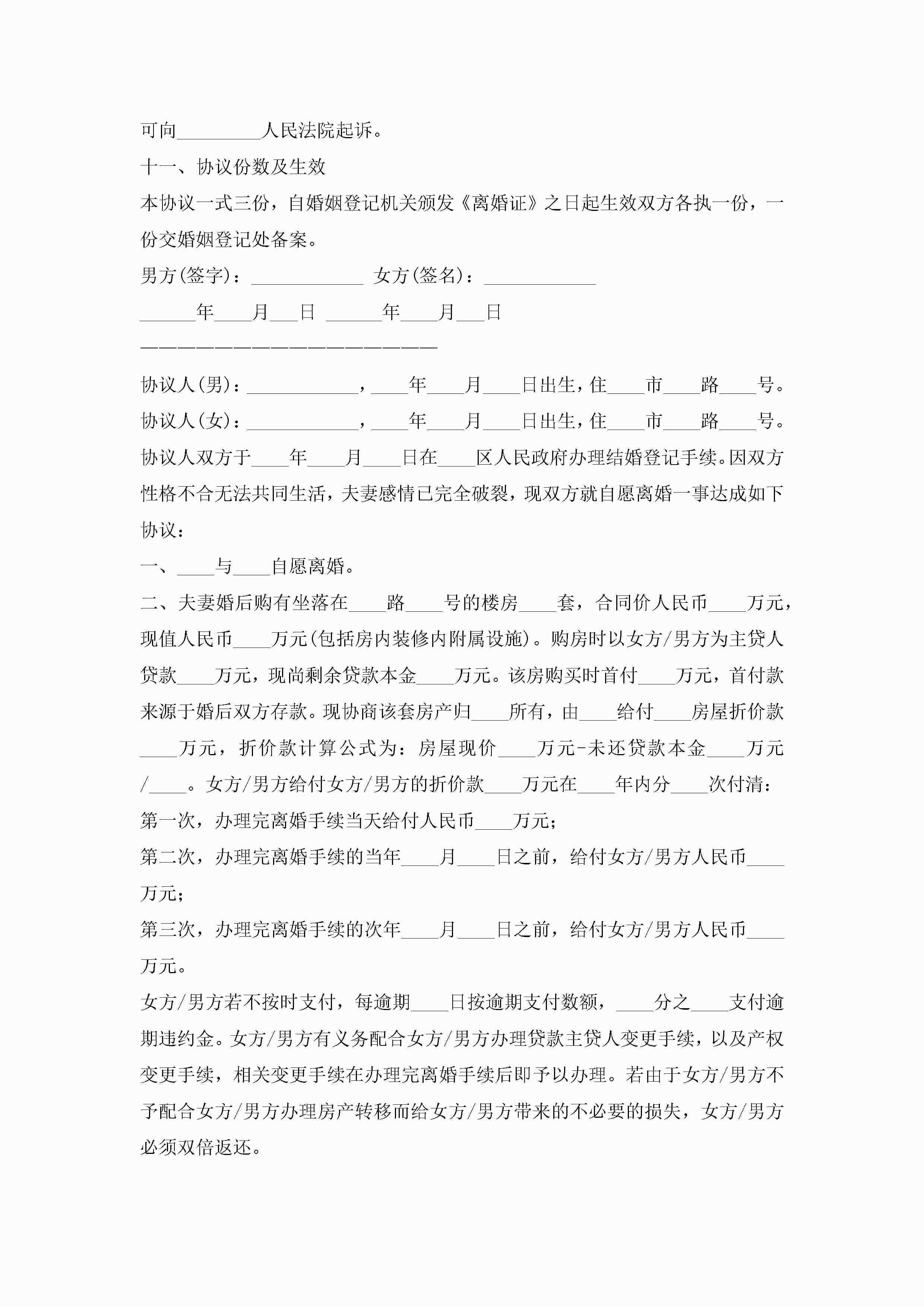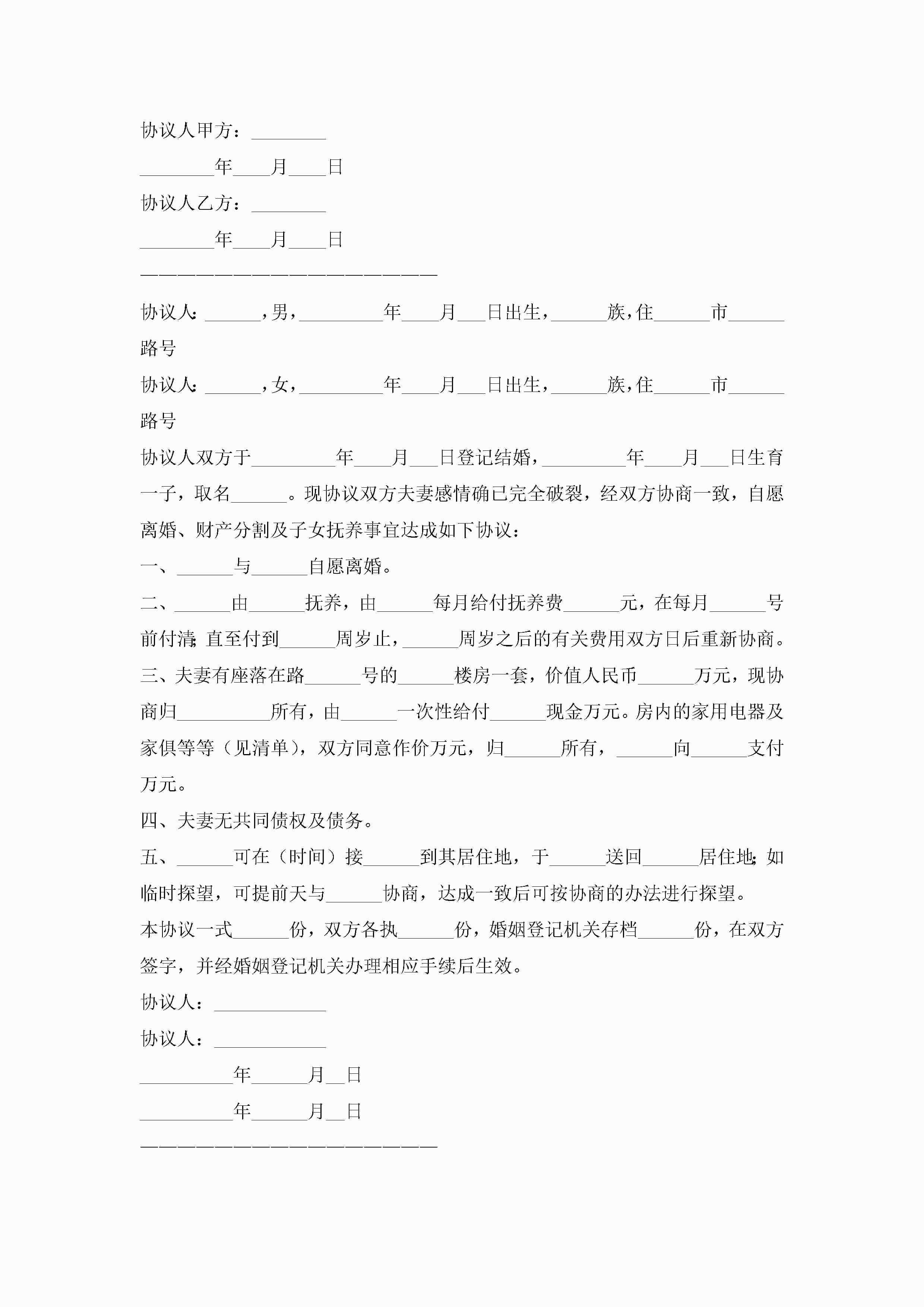 夫妻双方离婚协议书模板范文(精选10篇)jugei3月22日 01:32发布关注204 夫妻双方离婚协议书模板范文(精选10篇)此内容为付费资源,请付费后查看¥10.9 单篇文档限时特惠¥15个人会员开通企业会员开通立即下载无需登陆!可直接快捷下载单个模板付费资源© 版权声明THE ENDWord模板# 实用文档# 实用模板# 信函模板# 协议书 如有问题,可点击最底部“联系我们”联系客服 分享QQ空间微博QQ好友海报分享复制链接收藏