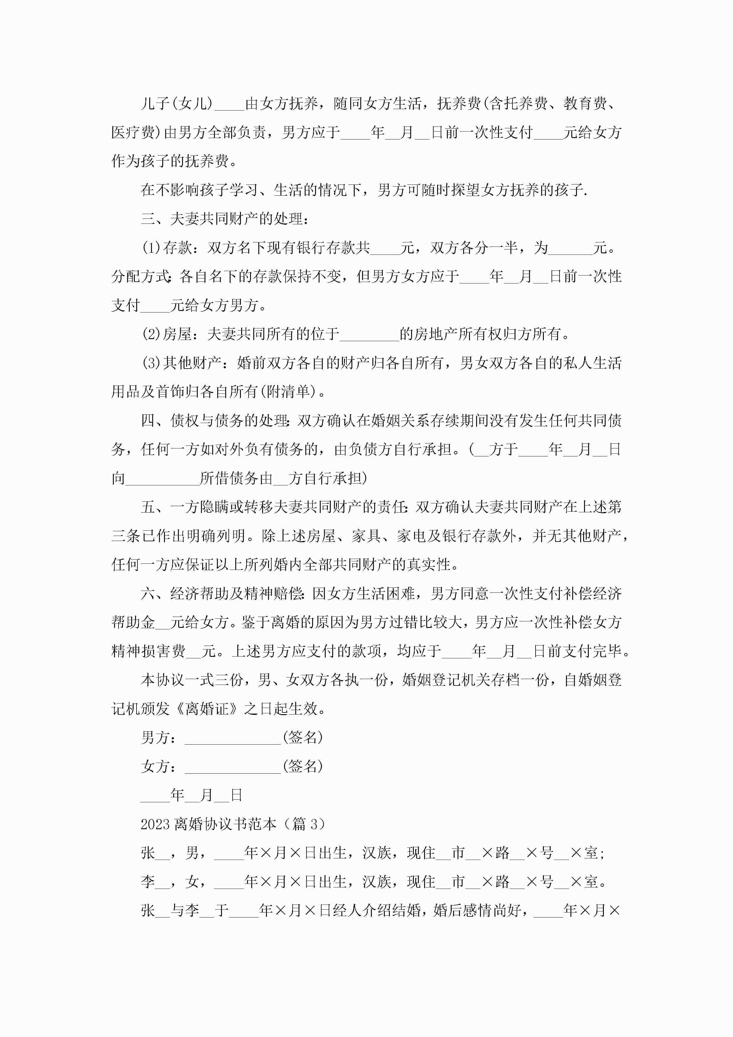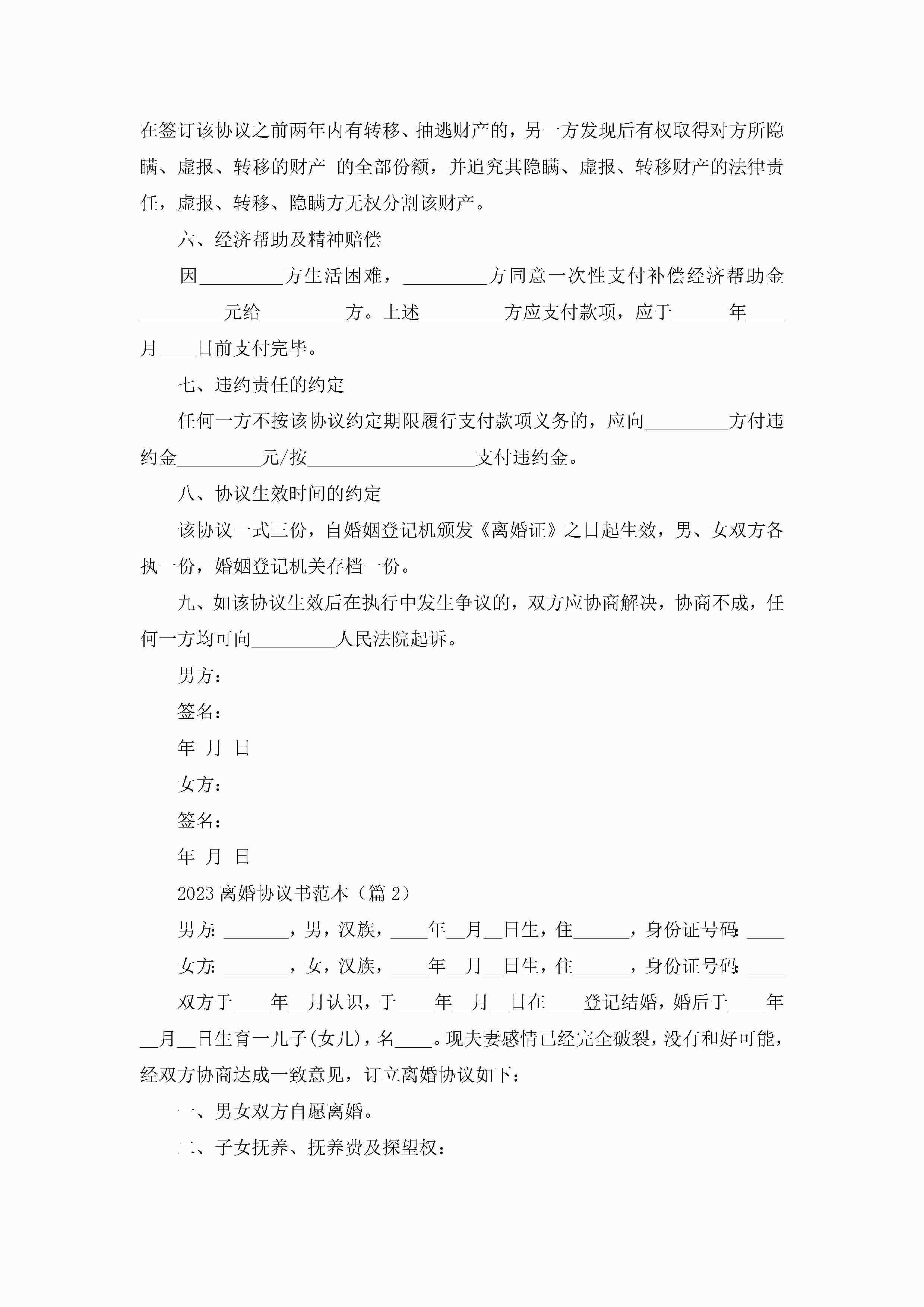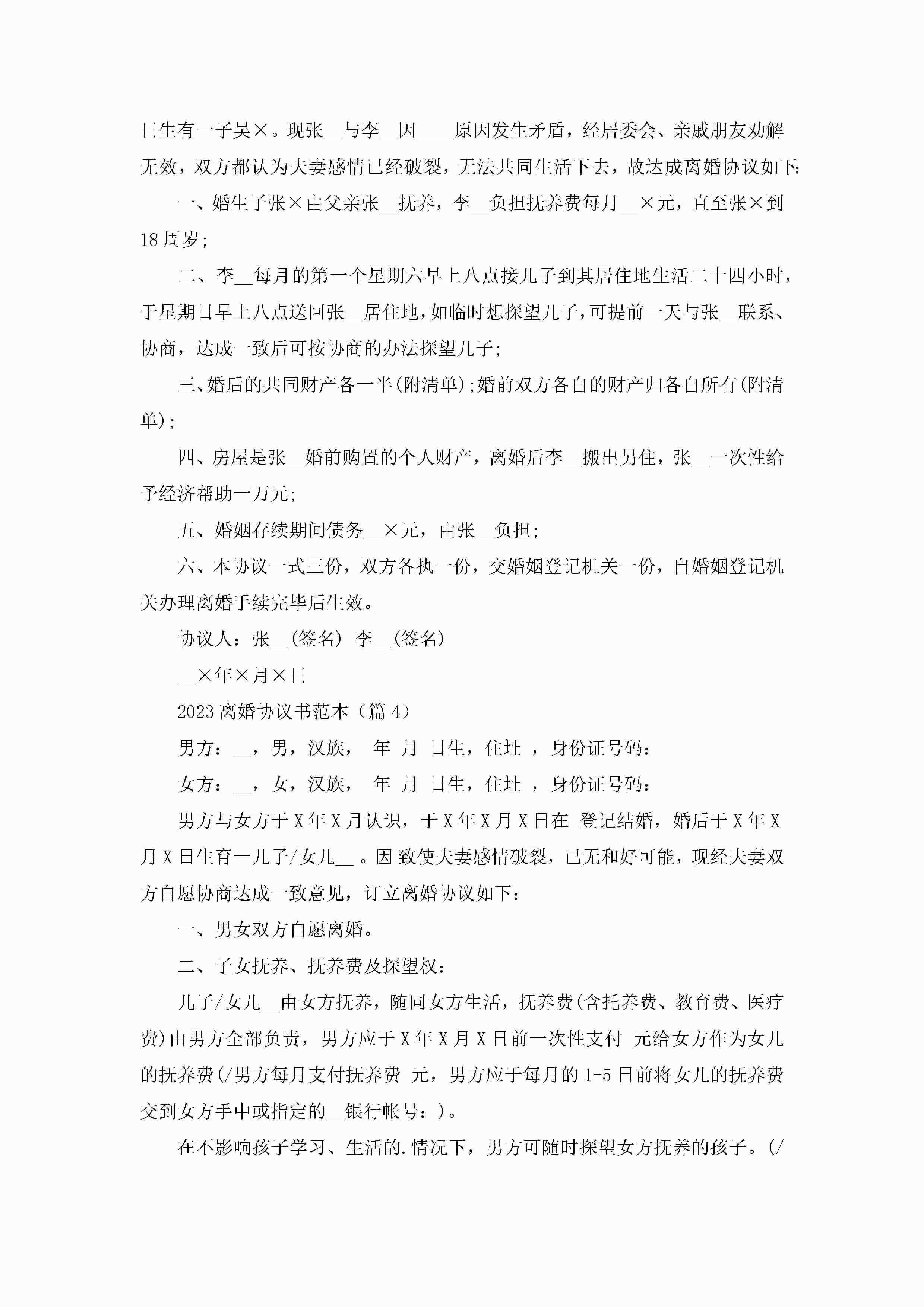 2023离婚协议书范本(10篇)jugei3月22日 01:32发布关注294 2023离婚协议书范本(10篇)此内容为付费资源,请付费后查看¥10.9 单篇文档限时特惠¥15个人会员开通企业会员开通立即下载无需登陆!可直接快捷下载单个模板付费资源© 版权声明THE ENDWord模板# 实用文档# 实用模板# 信函模板# 协议书 如有问题,可点击最底部“联系我们”联系客服 分享QQ空间微博QQ好友海报分享复制链接收藏