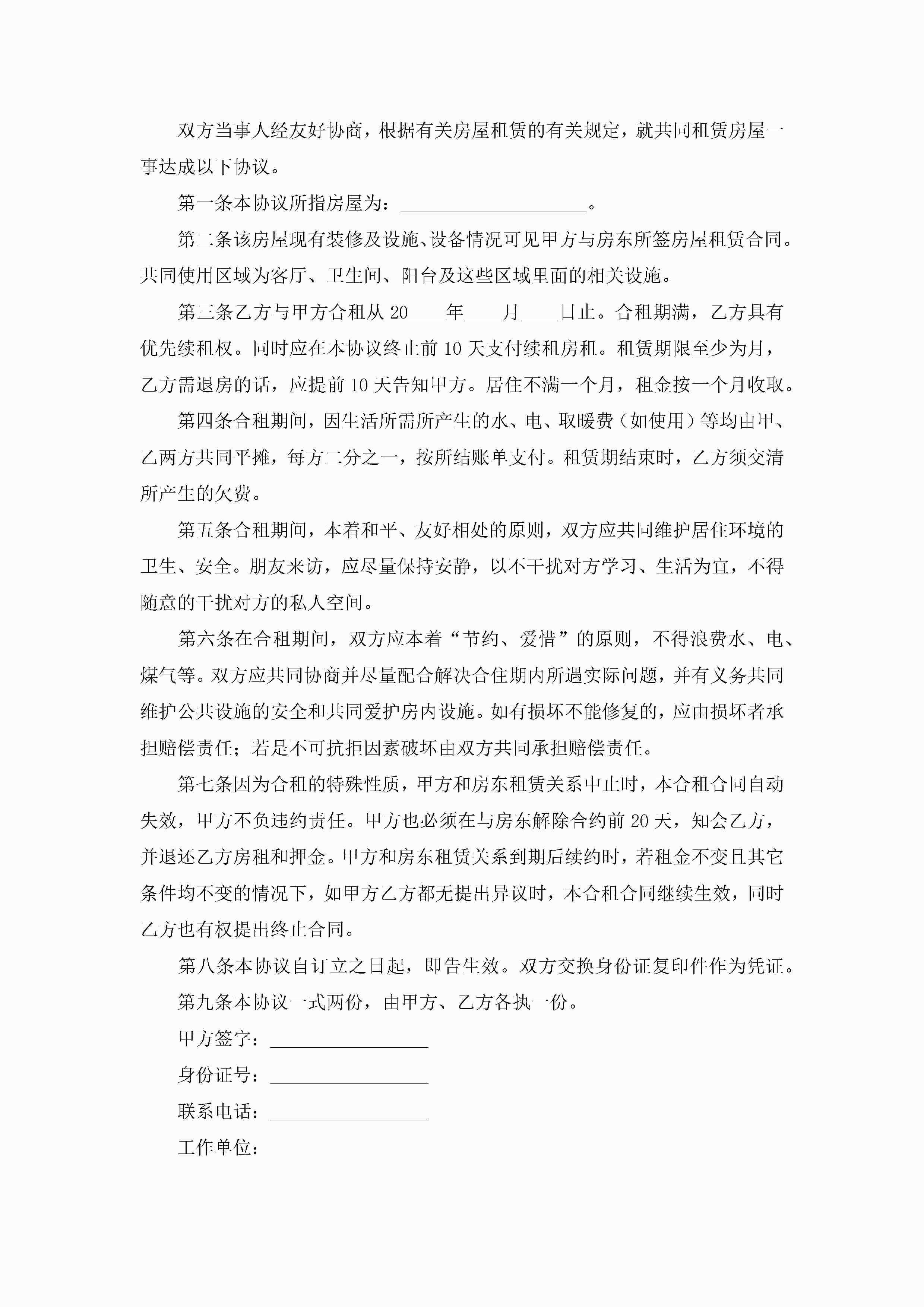 天津租房合同协议书标准版(精选7篇)jugei3月22日 01:32发布关注201 天津租房合同协议书标准版(精选7篇)此内容为付费资源,请付费后查看¥10.9 单篇文档限时特惠¥15个人会员开通企业会员开通立即下载无需登陆!可直接快捷下载单个模板付费资源© 版权声明THE ENDWord模板# 实用文档# 实用模板# 信函模板# 协议书 如有问题,可点击最底部“联系我们”联系客服 分享QQ空间微博QQ好友海报分享复制链接收藏
