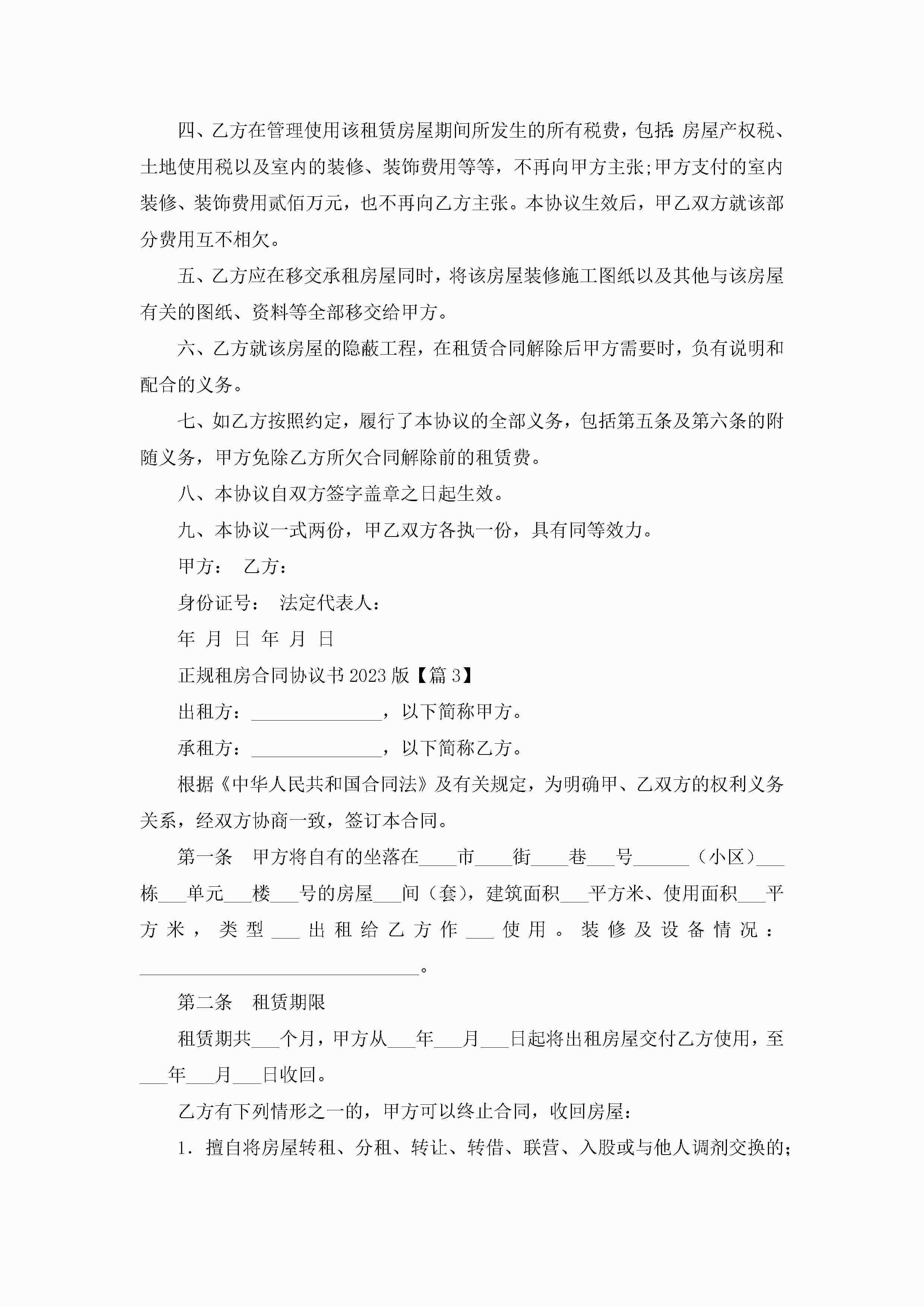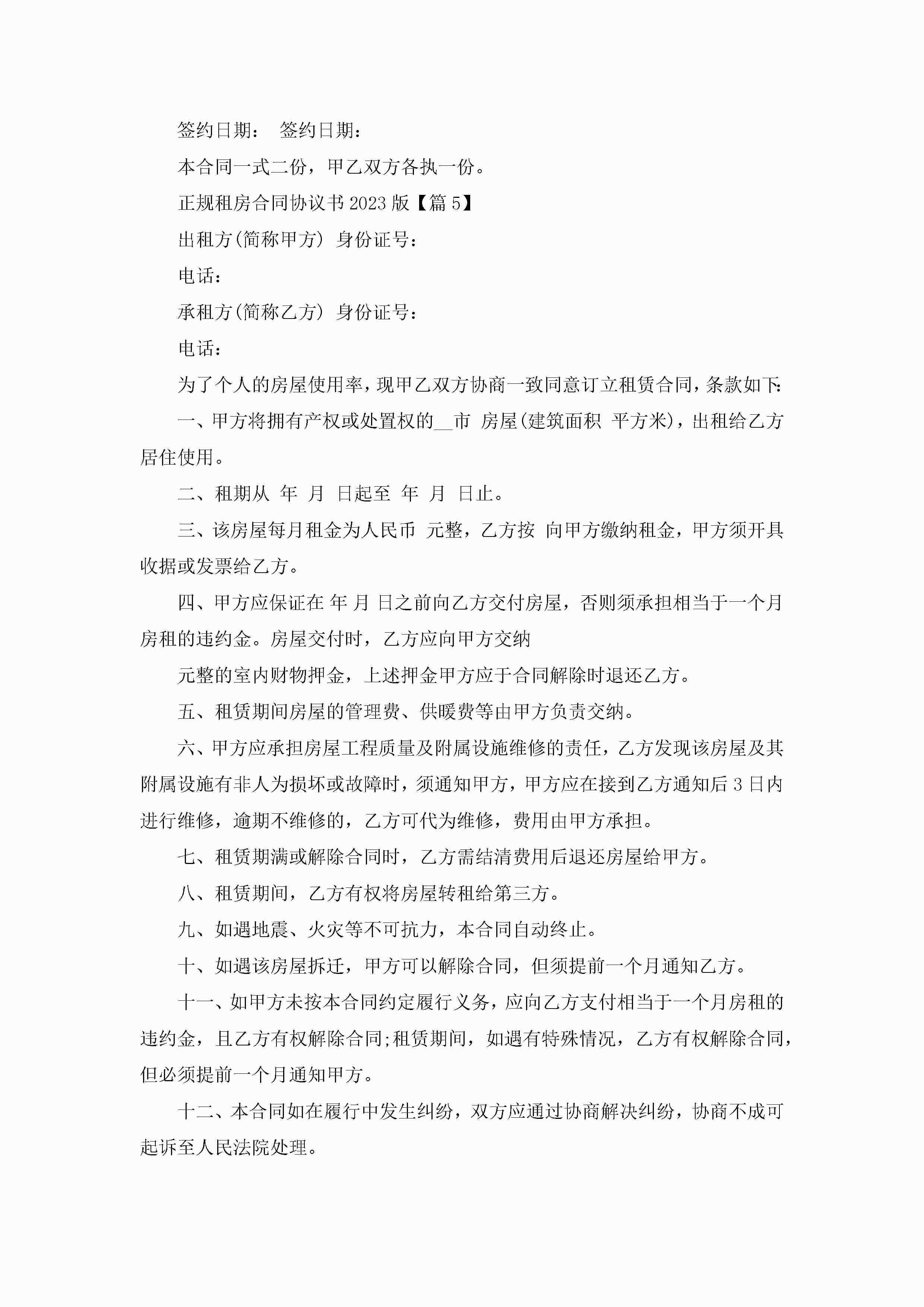 正规租房合同协议书2023版7篇jugei3月22日 01:32发布关注216 正规租房合同协议书2023版7篇此内容为付费资源,请付费后查看¥10.9 单篇文档限时特惠¥15个人会员开通企业会员开通立即下载无需登陆!可直接快捷下载单个模板付费资源© 版权声明THE ENDWord模板# 实用文档# 实用模板# 信函模板# 协议书 如有问题,可点击最底部“联系我们”联系客服 分享QQ空间微博QQ好友海报分享复制链接收藏