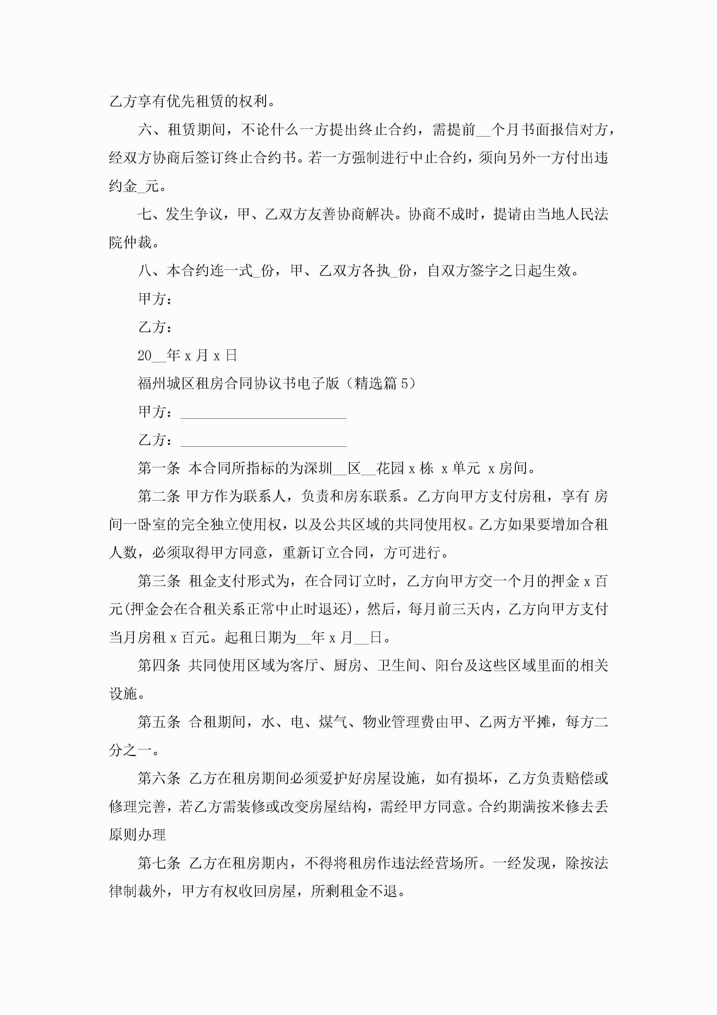 福州城区租房合同协议书电子版7篇jugei3月22日 01:32发布关注231 福州城区租房合同协议书电子版7篇此内容为付费资源,请付费后查看¥10.9 单篇文档限时特惠¥15个人会员开通企业会员开通立即下载无需登陆!可直接快捷下载单个模板付费资源© 版权声明THE ENDWord模板# 实用文档# 实用模板# 信函模板# 协议书 如有问题,可点击最底部“联系我们”联系客服 分享QQ空间微博QQ好友海报分享复制链接收藏
