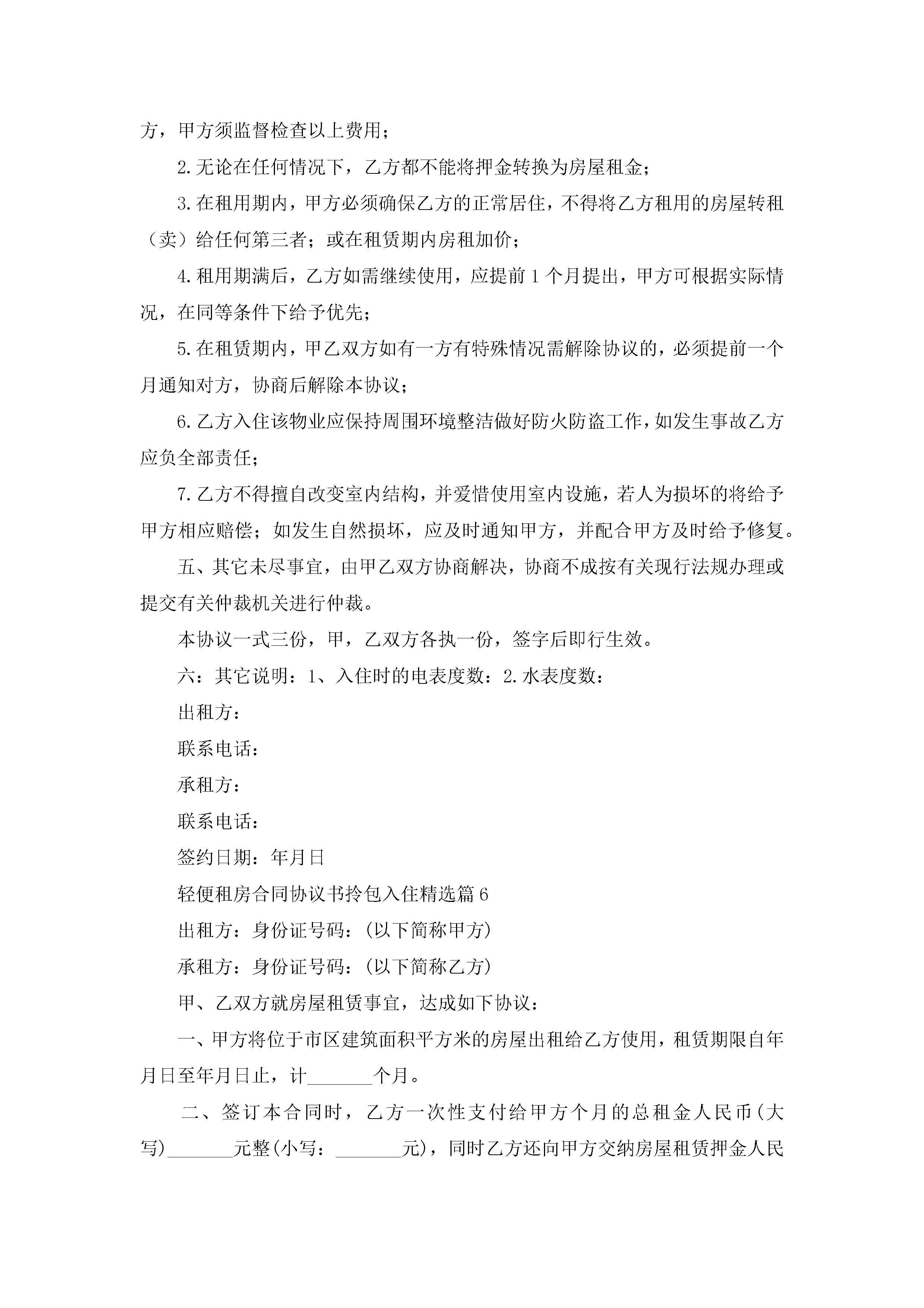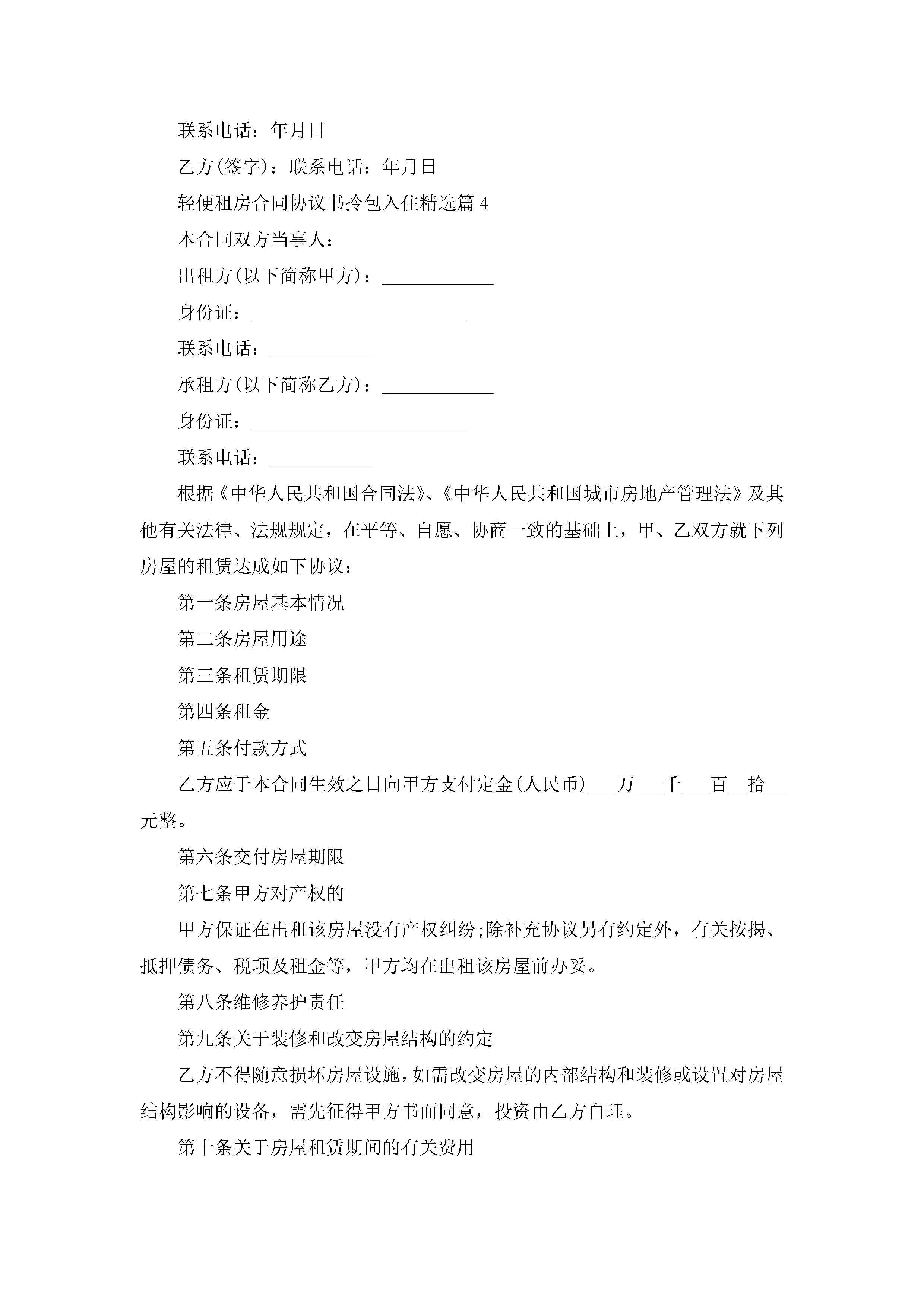 轻便租房合同协议书拎包入住7篇jugei3月22日 01:32发布关注215 轻便租房合同协议书拎包入住7篇此内容为付费资源,请付费后查看¥10.9 单篇文档限时特惠¥15个人会员开通企业会员开通立即下载无需登陆!可直接快捷下载单个模板付费资源© 版权声明THE ENDWord模板# 实用文档# 实用模板# 信函模板# 协议书 如有问题,可点击最底部“联系我们”联系客服 分享QQ空间微博QQ好友海报分享复制链接收藏