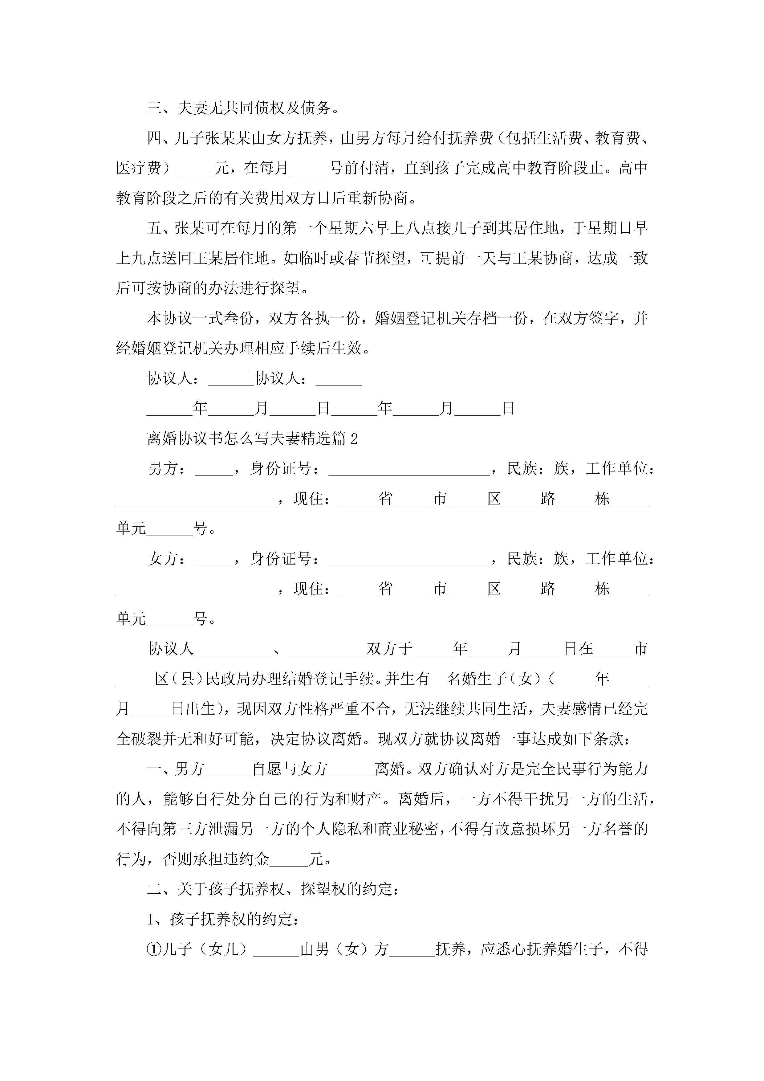 离婚协议书怎么写夫妻(10篇)jugei3月22日 01:32发布关注214 离婚协议书怎么写夫妻(10篇)此内容为付费资源,请付费后查看¥10.9 单篇文档限时特惠¥15个人会员开通企业会员开通立即下载无需登陆!可直接快捷下载单个模板付费资源© 版权声明THE ENDWord模板# 实用文档# 实用模板# 信函模板# 协议书 如有问题,可点击最底部“联系我们”联系客服 分享QQ空间微博QQ好友海报分享复制链接收藏