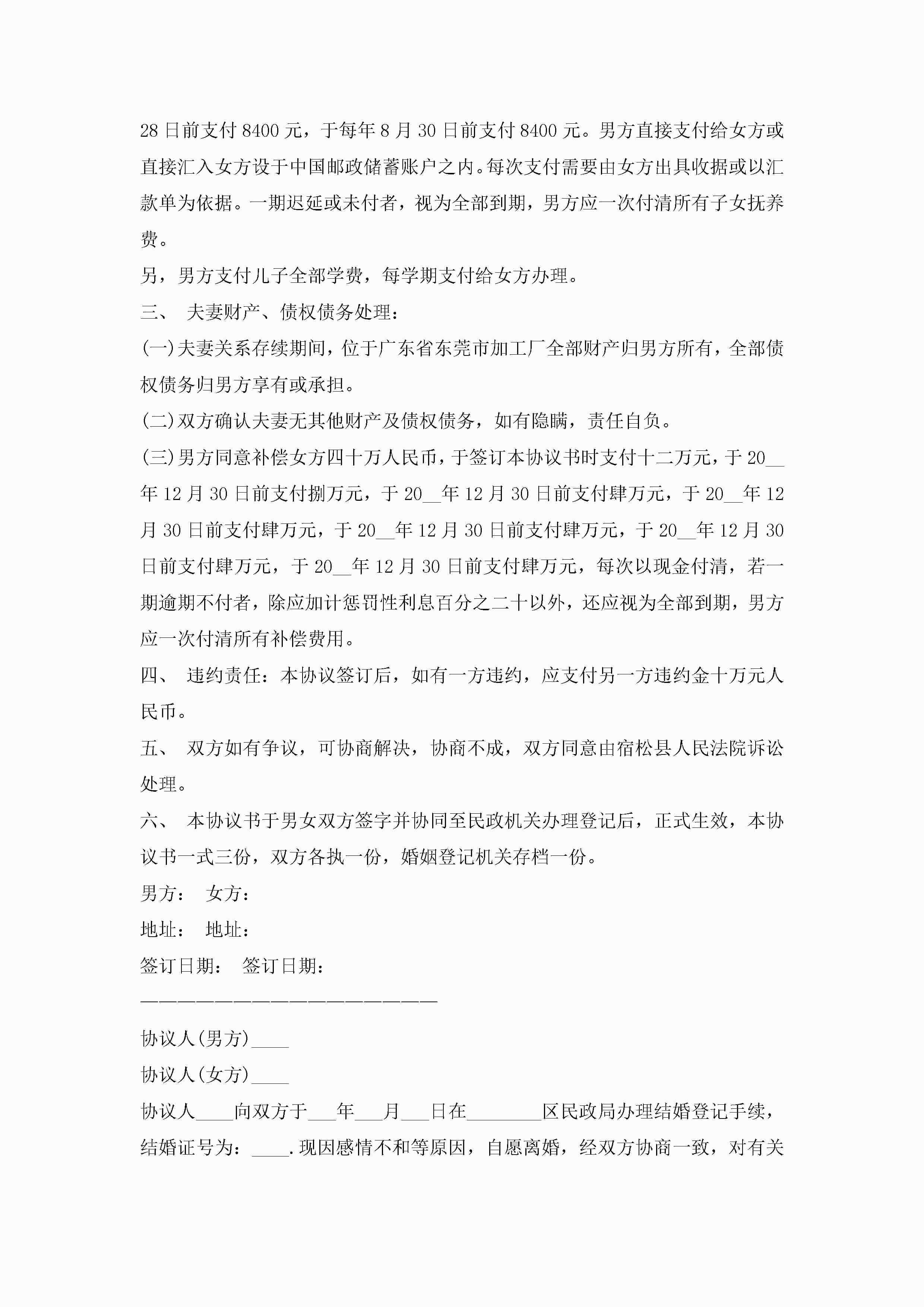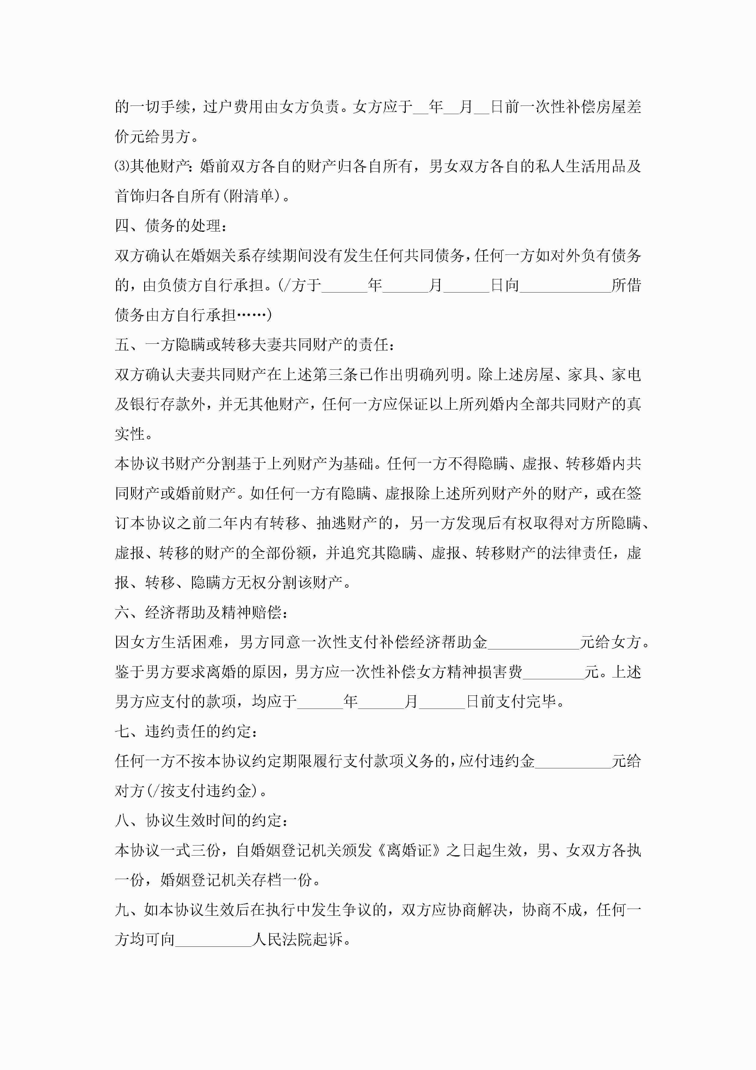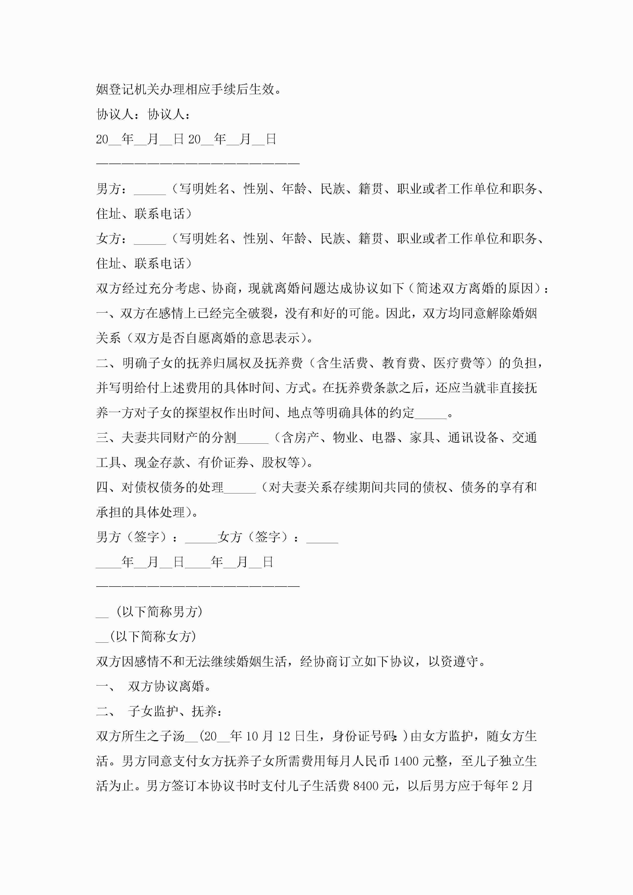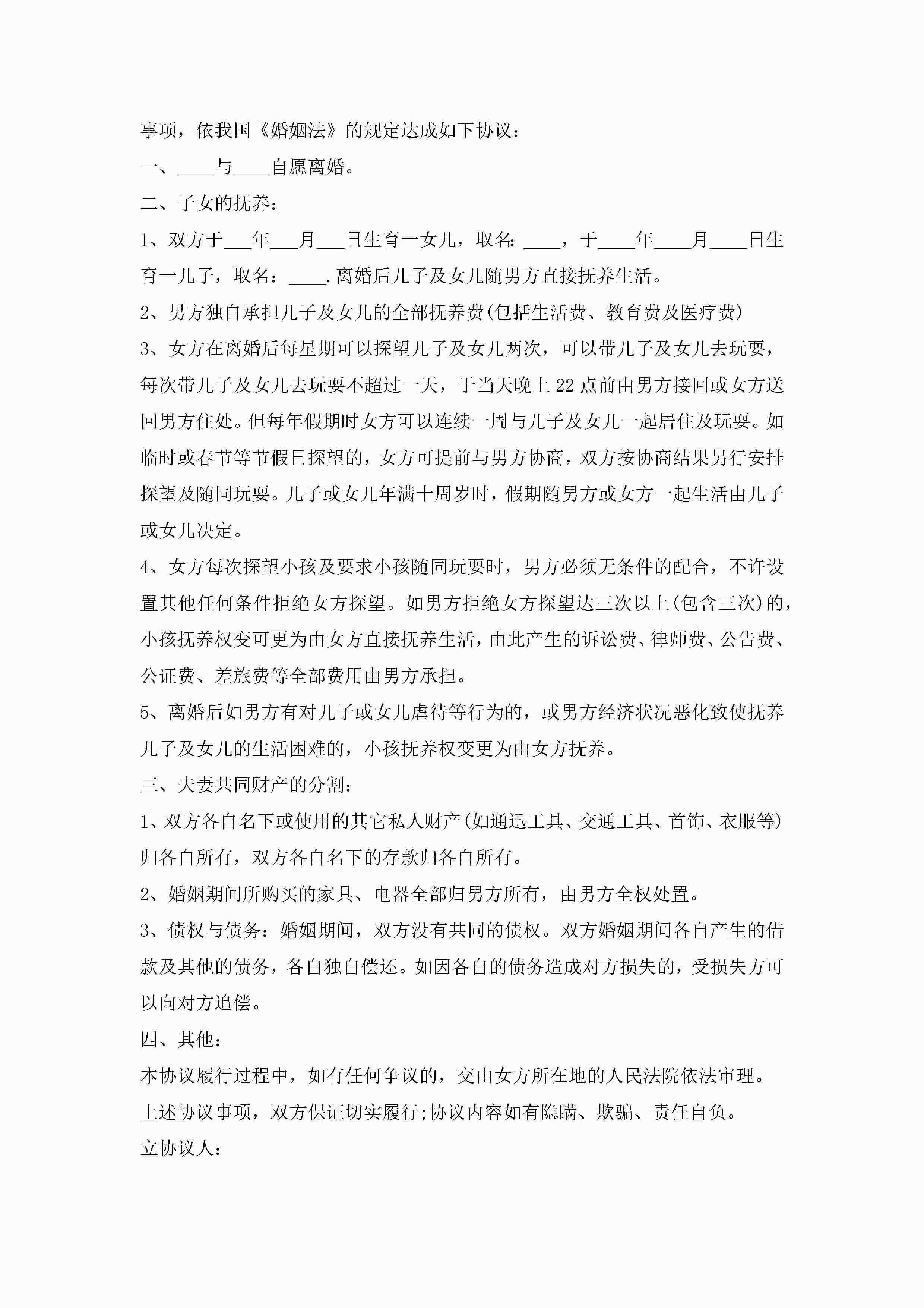 离婚协议书2022标准版【8篇】jugei3月22日 01:32发布关注211 离婚协议书2022标准版【8篇】此内容为付费资源,请付费后查看¥10.9 单篇文档限时特惠¥15个人会员开通企业会员开通立即下载无需登陆!可直接快捷下载单个模板付费资源© 版权声明THE ENDWord模板# 实用文档# 实用模板# 信函模板# 协议书 如有问题,可点击最底部“联系我们”联系客服 分享QQ空间微博QQ好友海报分享复制链接收藏