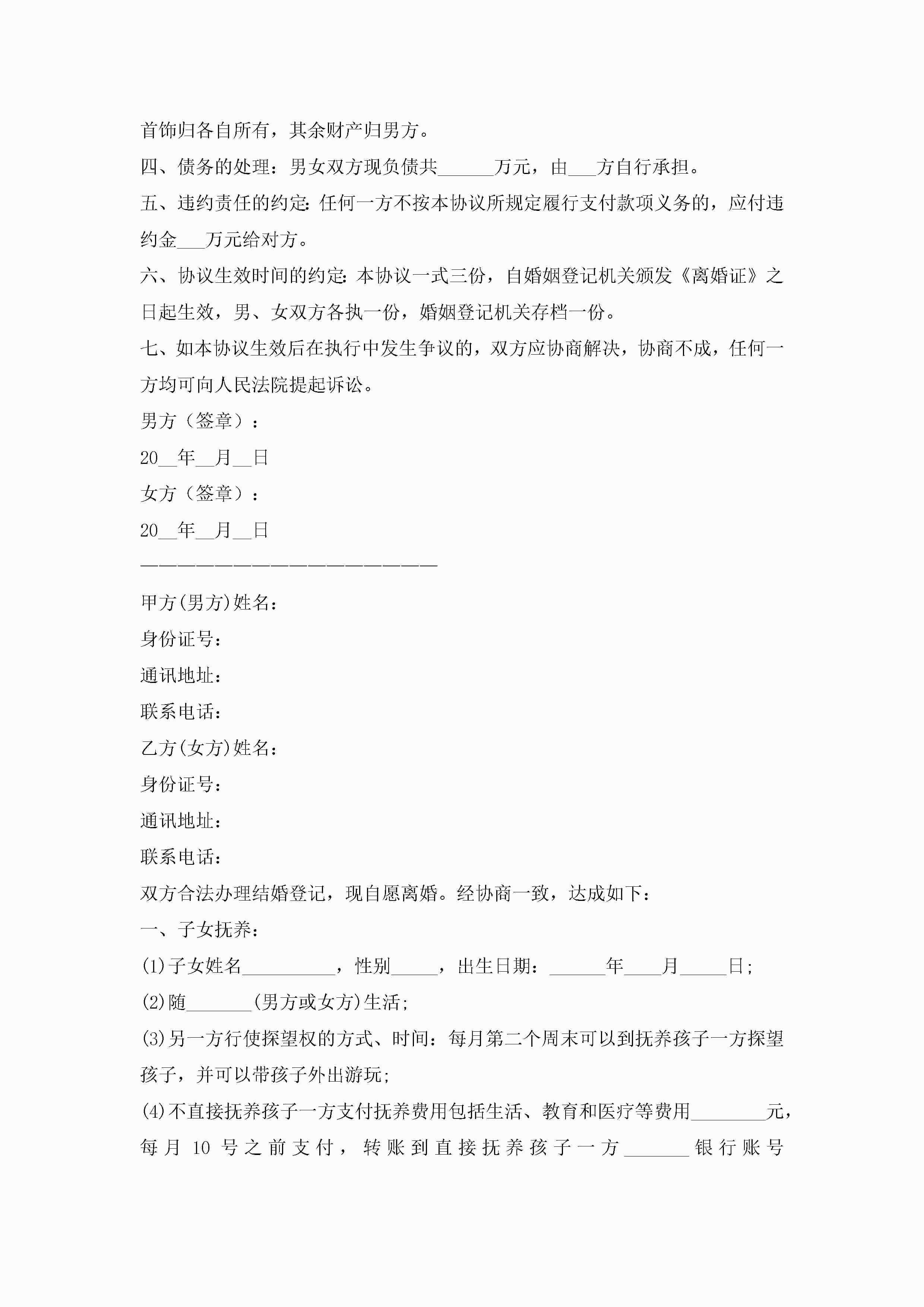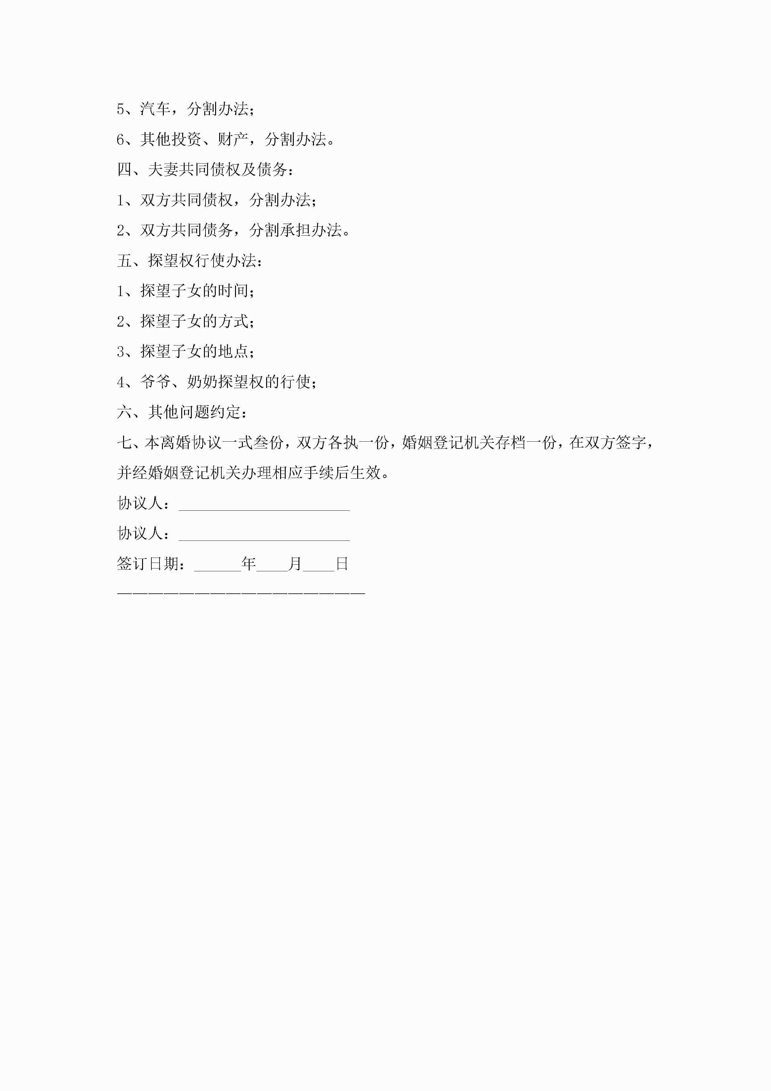 2023最新版的离婚协议书5篇jugei3月22日 01:32发布关注261 2023最新版的离婚协议书5篇此内容为付费资源,请付费后查看¥10.9 单篇文档限时特惠¥15个人会员开通企业会员开通立即下载无需登陆!可直接快捷下载单个模板付费资源© 版权声明THE ENDWord模板# 实用文档# 实用模板# 信函模板# 协议书 如有问题,可点击最底部“联系我们”联系客服 分享QQ空间微博QQ好友海报分享复制链接收藏