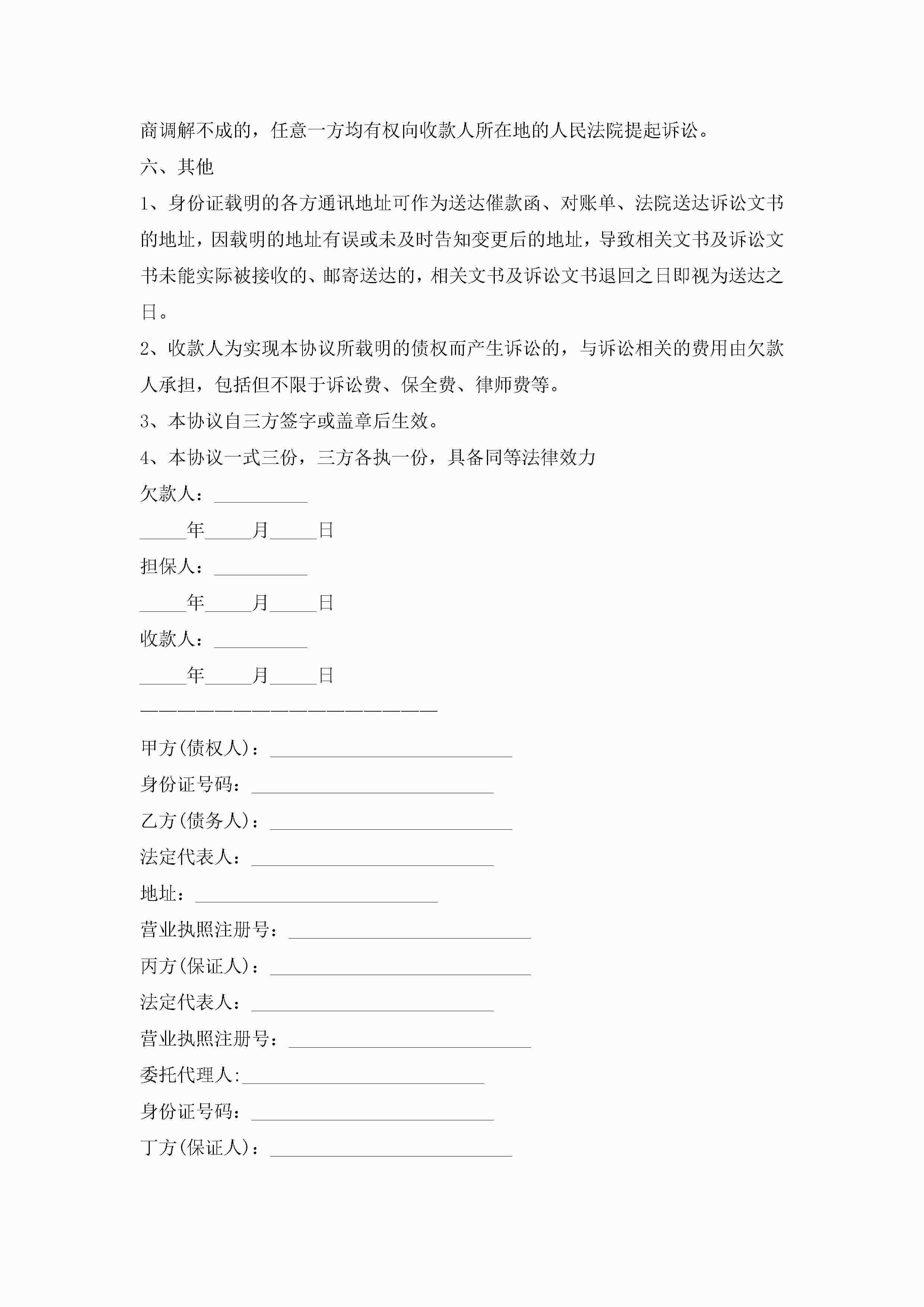 欠债还款协议书【精选7篇】jugei3月22日 01:32发布关注282 欠债还款协议书【精选7篇】此内容为付费资源,请付费后查看¥10.9 单篇文档限时特惠¥15个人会员开通企业会员开通立即下载无需登陆!可直接快捷下载单个模板付费资源© 版权声明THE ENDWord模板# 实用文档# 实用模板# 信函模板# 协议书 如有问题,可点击最底部“联系我们”联系客服 分享QQ空间微博QQ好友海报分享复制链接收藏