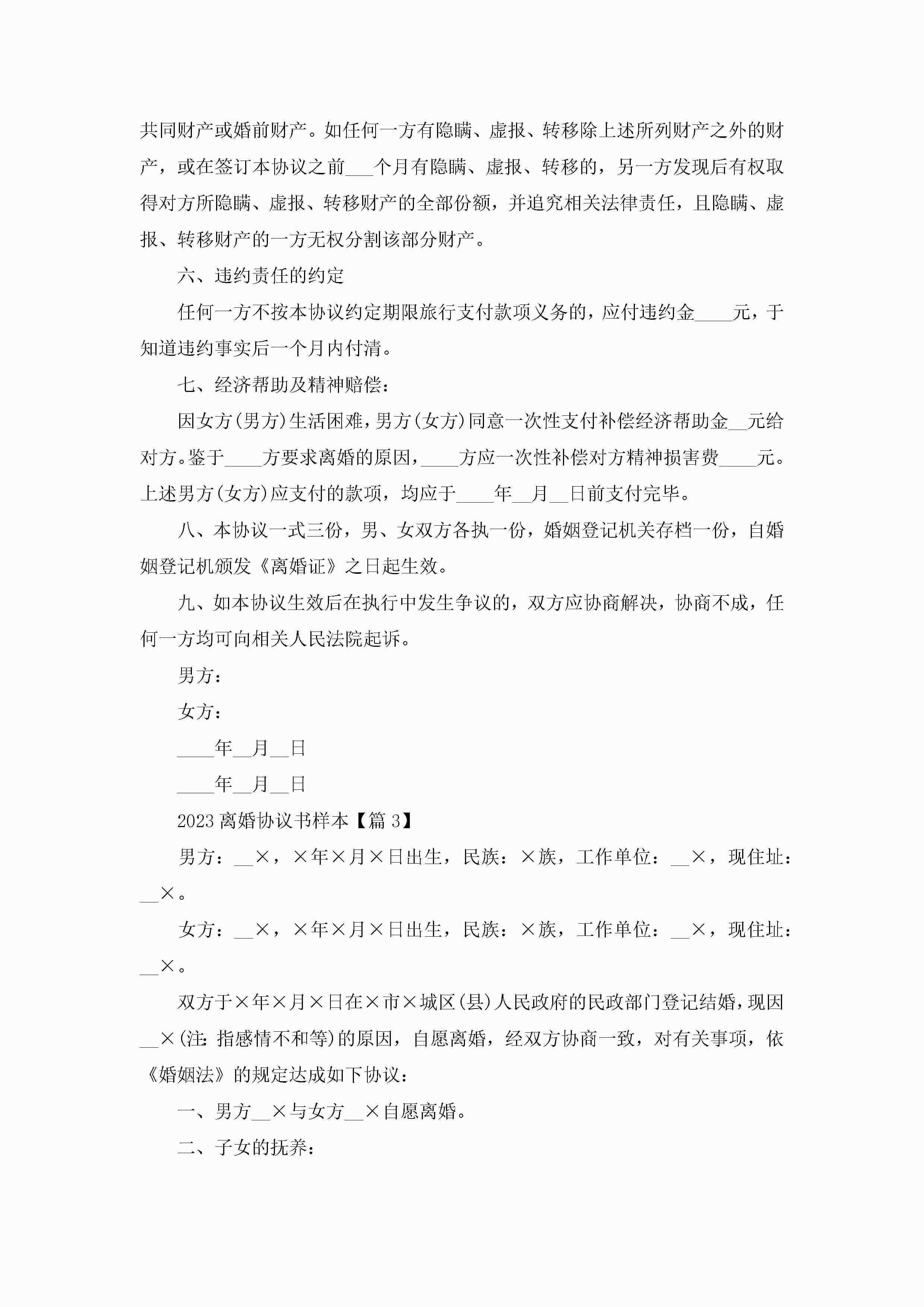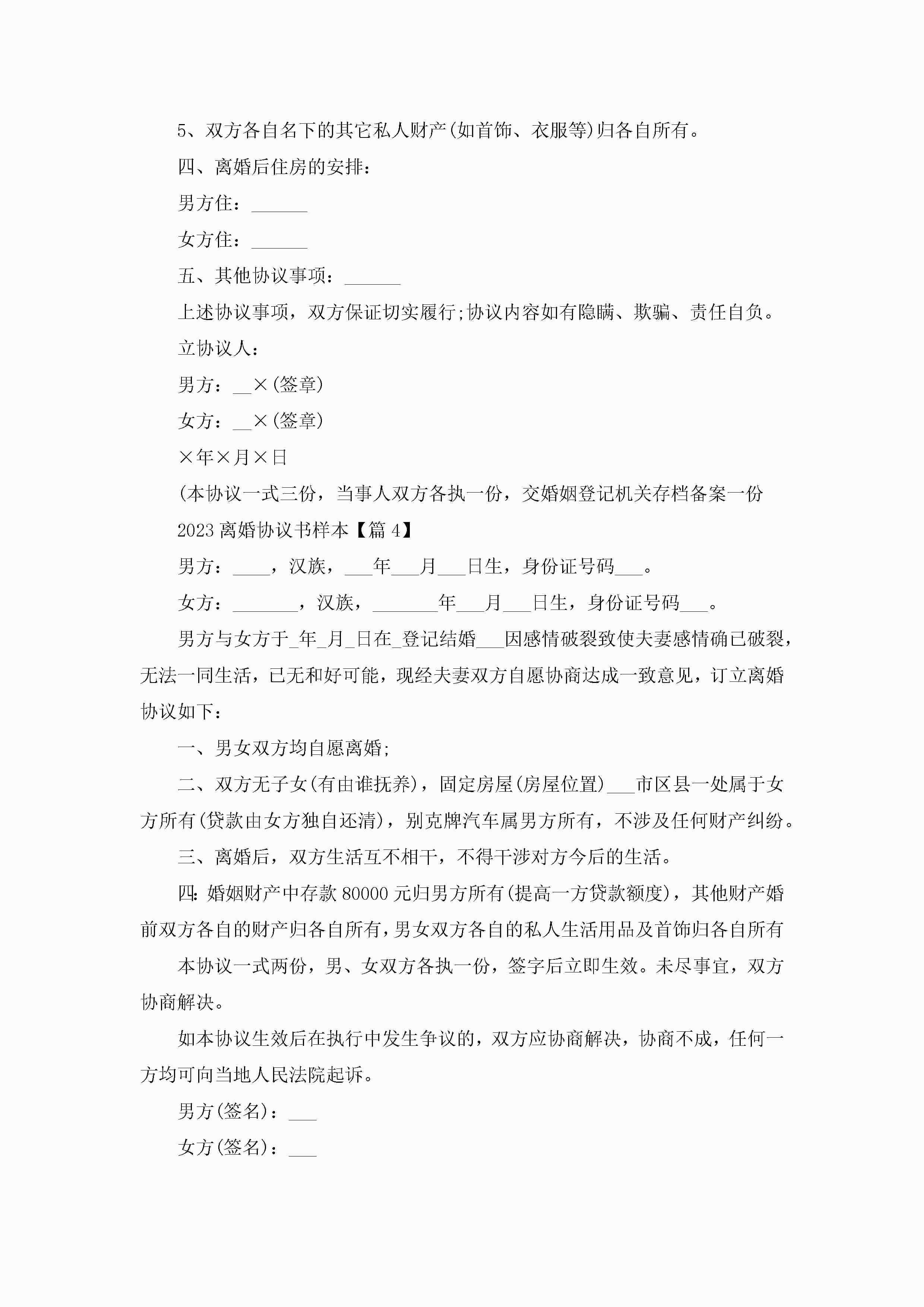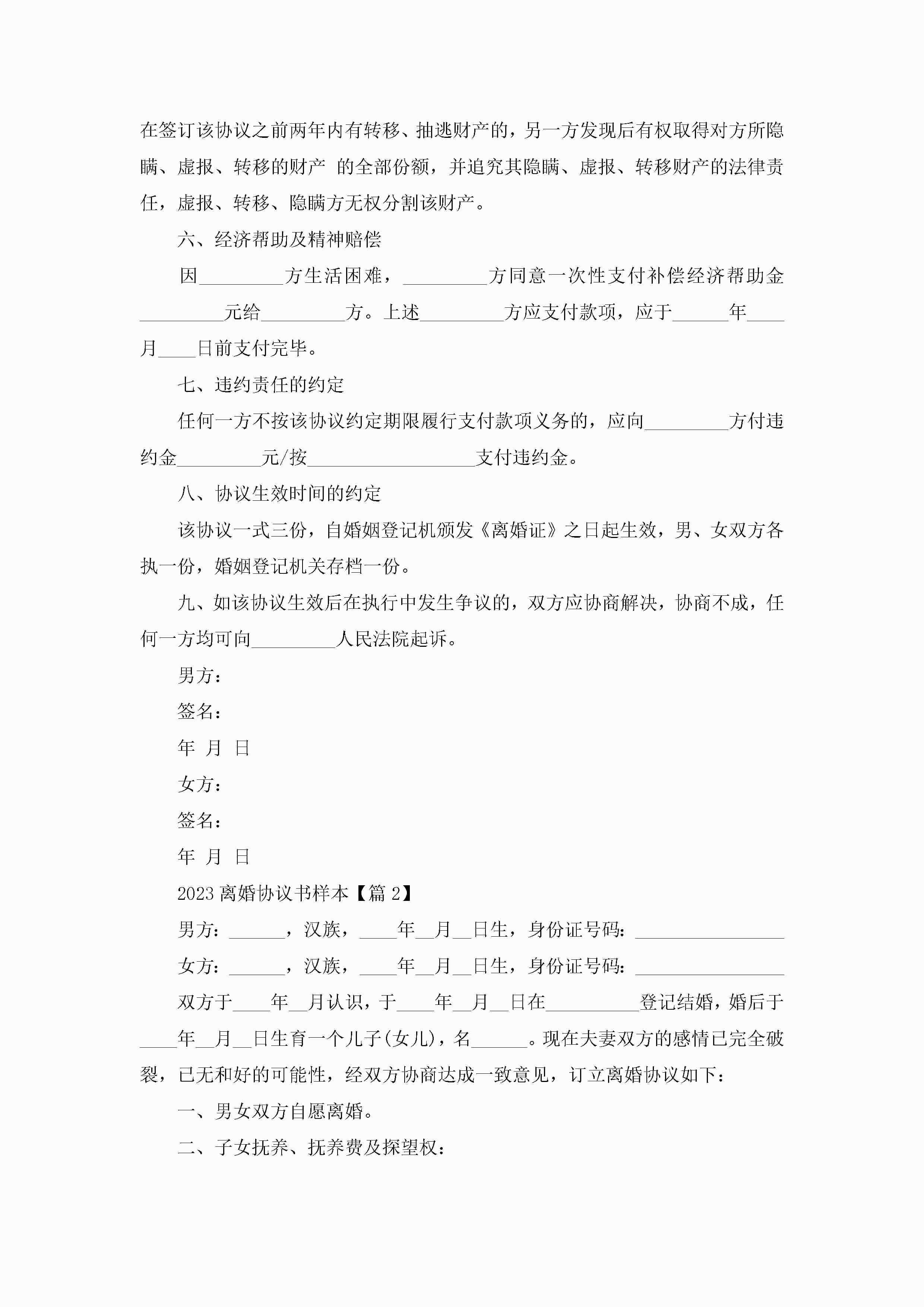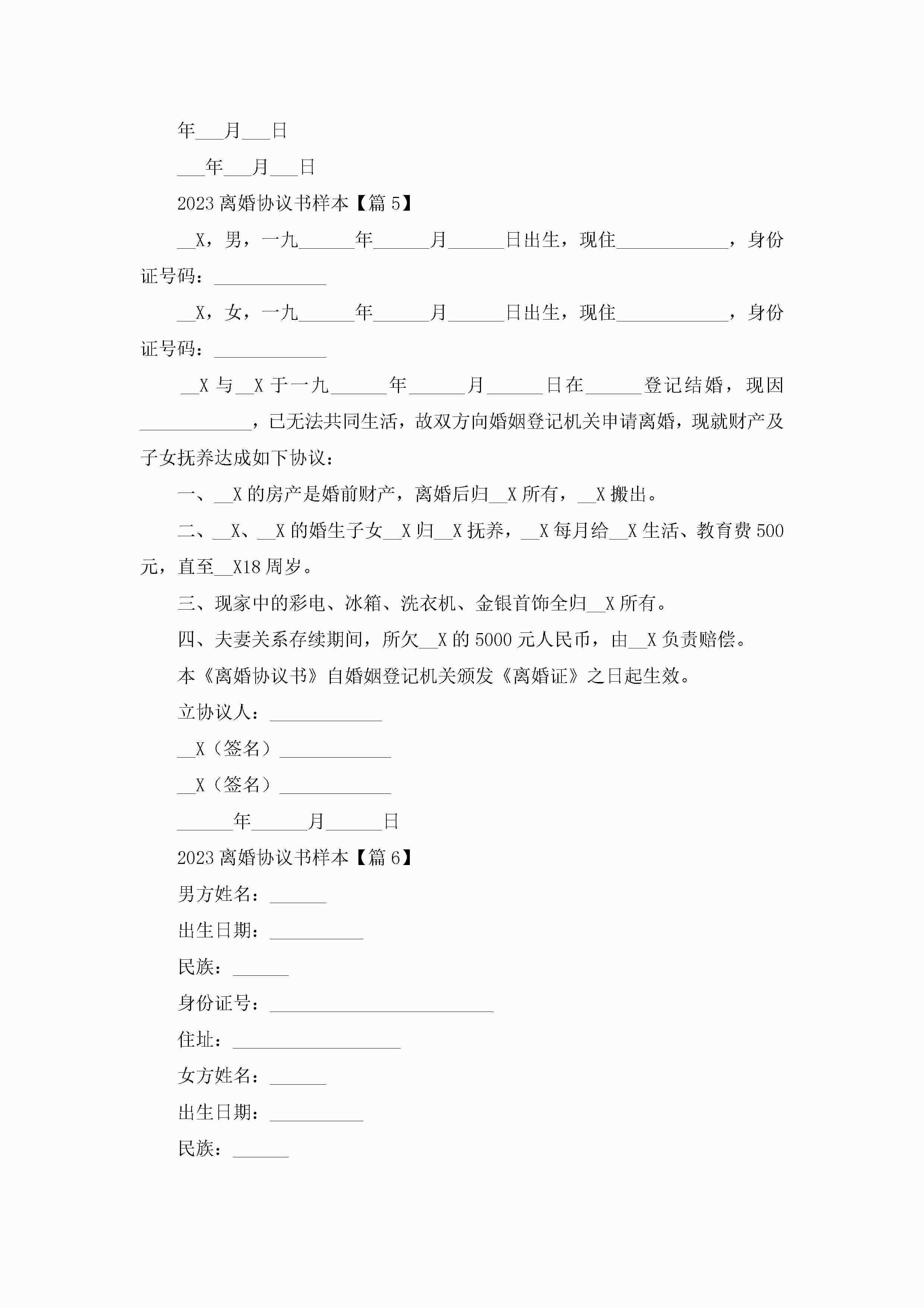 2023离婚协议书样本(6篇)jugei3月22日 01:32发布关注237 2023离婚协议书样本(6篇)此内容为付费资源,请付费后查看¥10.9 单篇文档限时特惠¥15个人会员开通企业会员开通立即下载无需登陆!可直接快捷下载单个模板付费资源© 版权声明THE ENDWord模板# 实用文档# 实用模板# 信函模板# 协议书 如有问题,可点击最底部“联系我们”联系客服 分享QQ空间微博QQ好友海报分享复制链接收藏