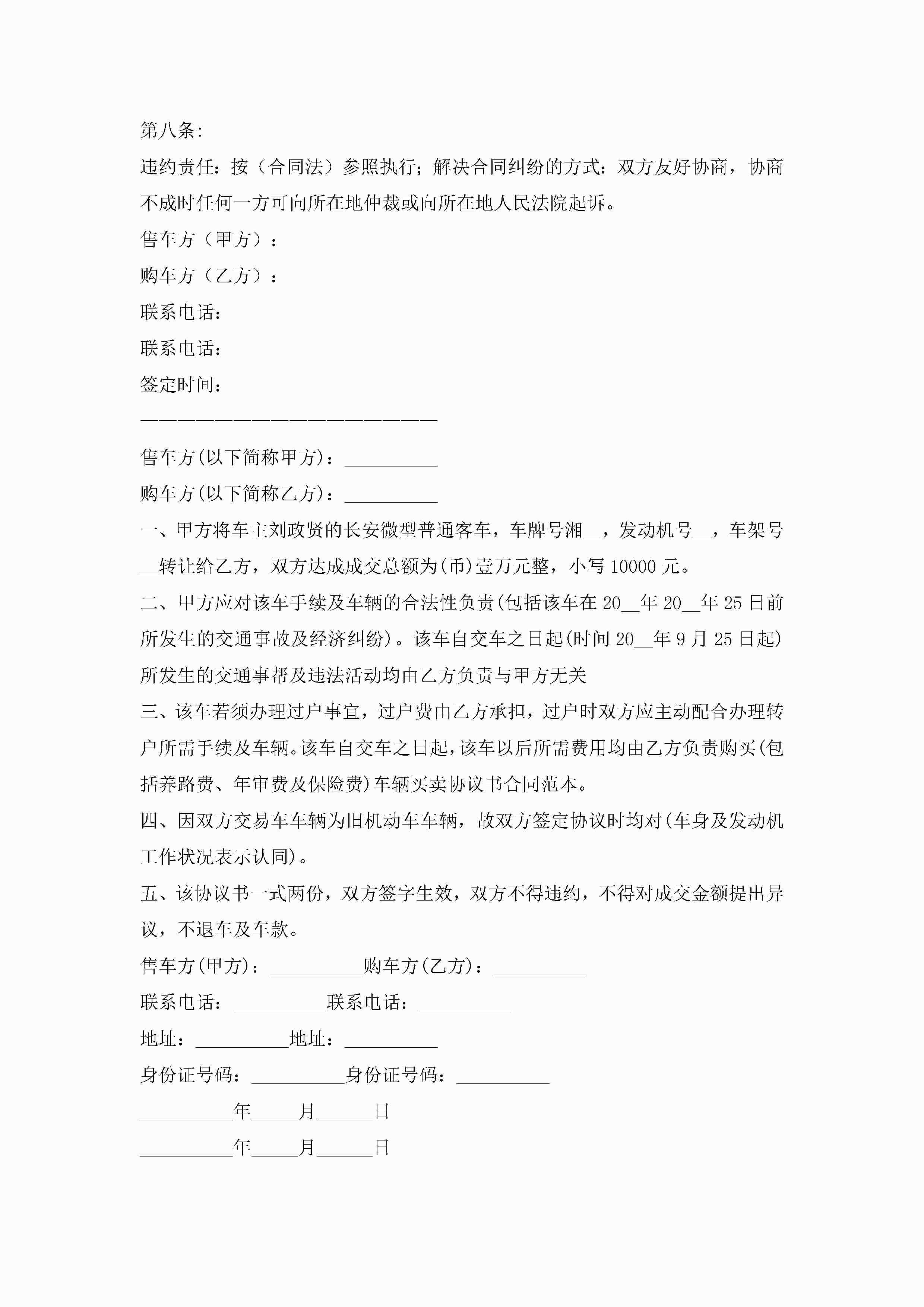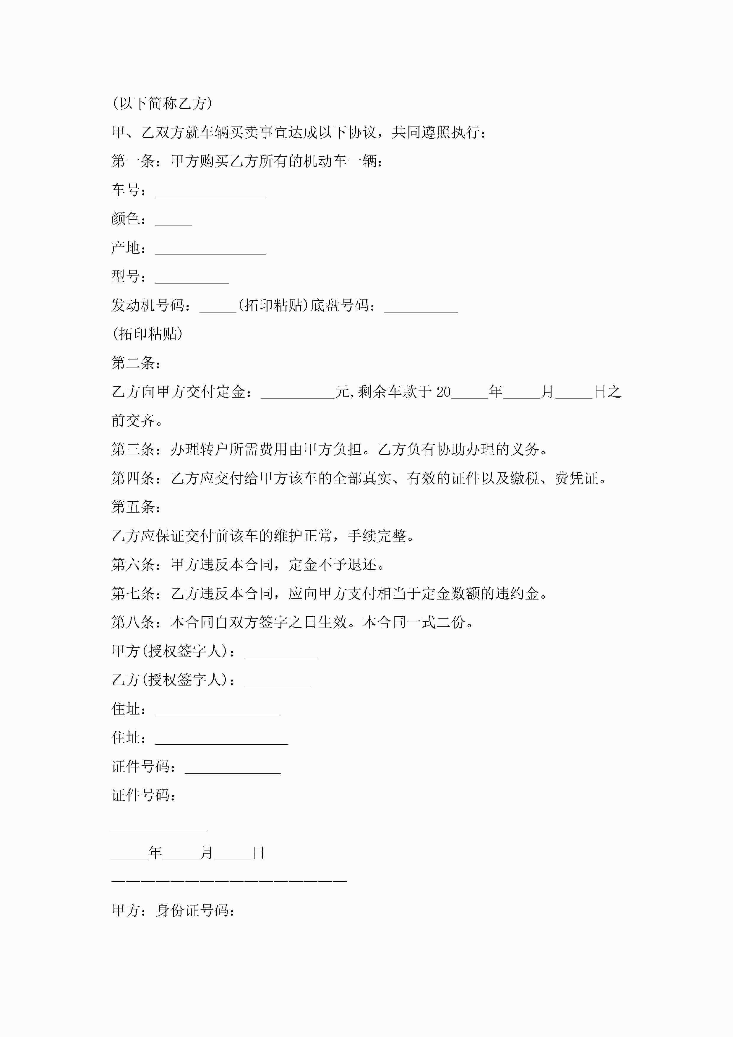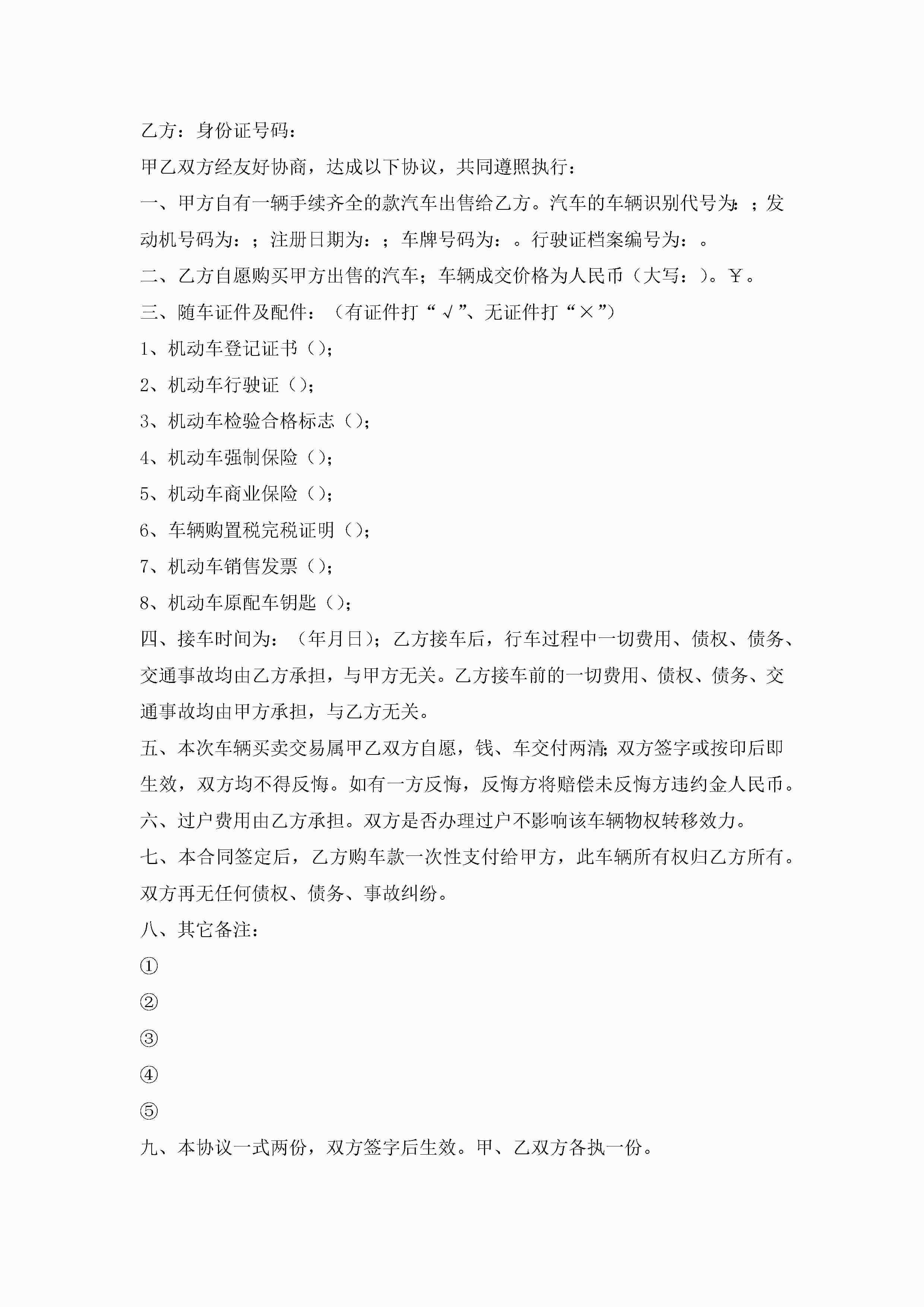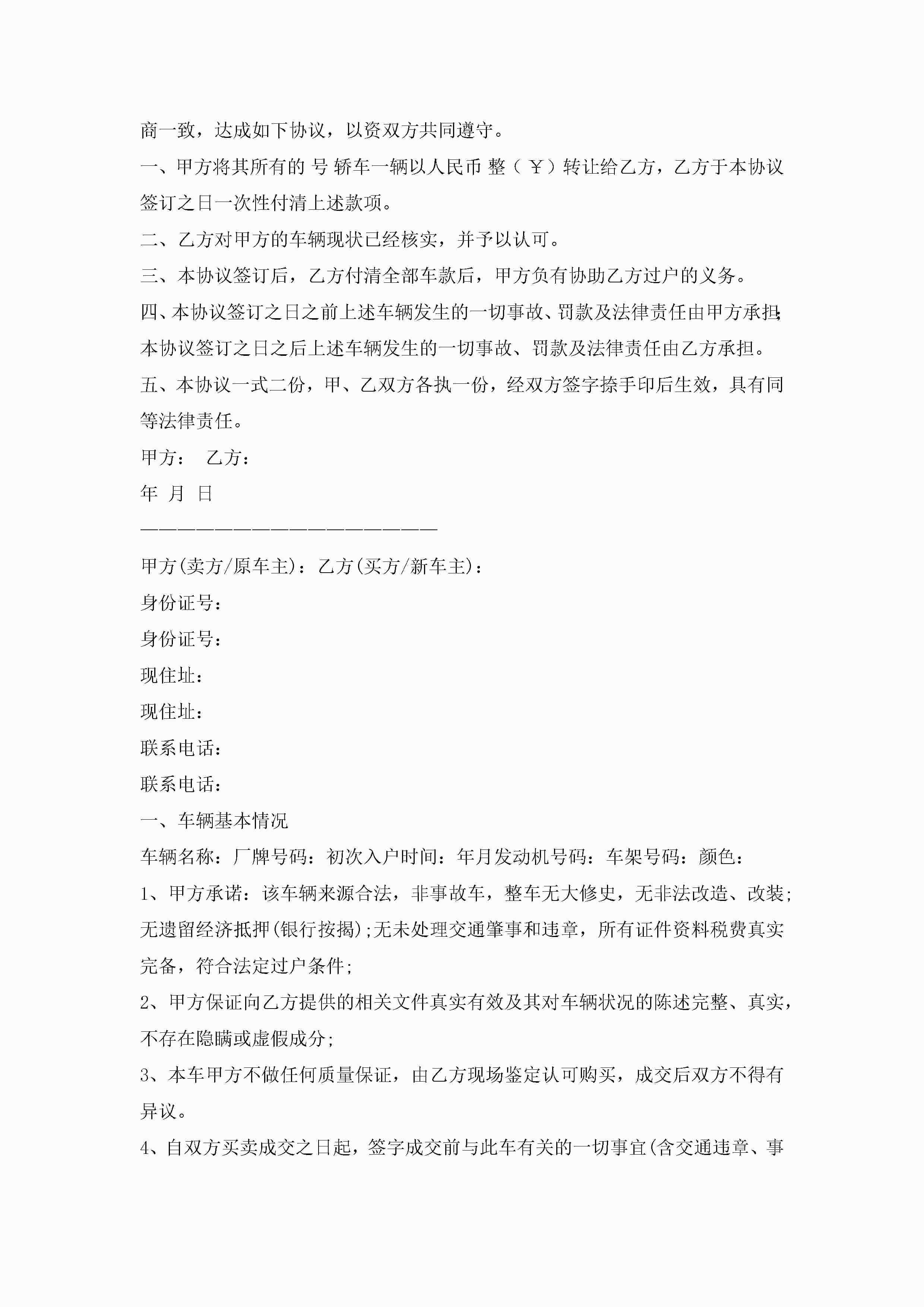 买卖车辆协议书范本(精选10篇)jugei3月22日 01:32发布关注286 买卖车辆协议书范本(精选10篇)此内容为付费资源,请付费后查看¥10.9 单篇文档限时特惠¥15个人会员开通企业会员开通立即下载无需登陆!可直接快捷下载单个模板付费资源© 版权声明THE ENDWord模板# 实用文档# 实用模板# 信函模板# 协议书 如有问题,可点击最底部“联系我们”联系客服 分享QQ空间微博QQ好友海报分享复制链接收藏