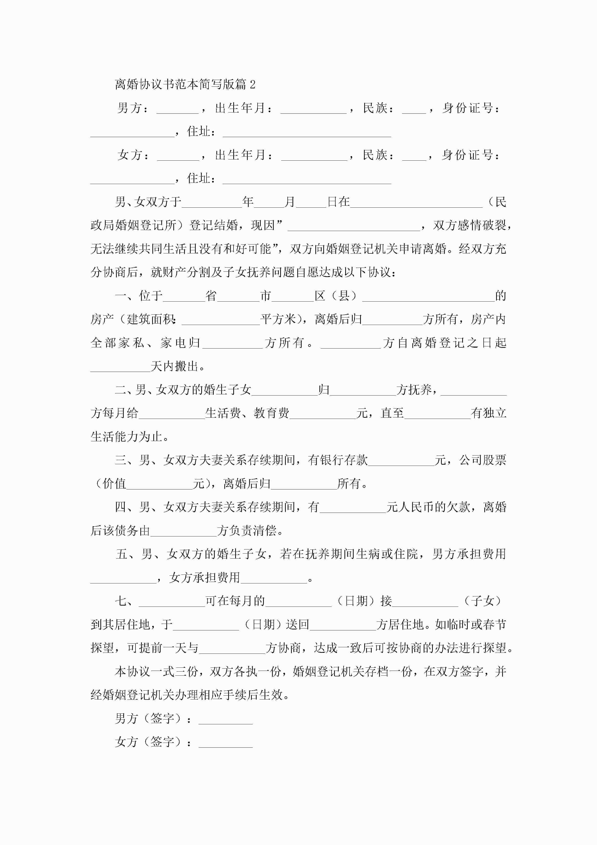 离婚协议书范本简写版【5篇】jugei3月22日 01:32发布关注205 离婚协议书范本简写版【5篇】此内容为付费资源,请付费后查看¥10.9 单篇文档限时特惠¥15个人会员开通企业会员开通立即下载无需登陆!可直接快捷下载单个模板付费资源© 版权声明THE ENDWord模板# 实用文档# 实用模板# 信函模板# 协议书 如有问题,可点击最底部“联系我们”联系客服 分享QQ空间微博QQ好友海报分享复制链接收藏