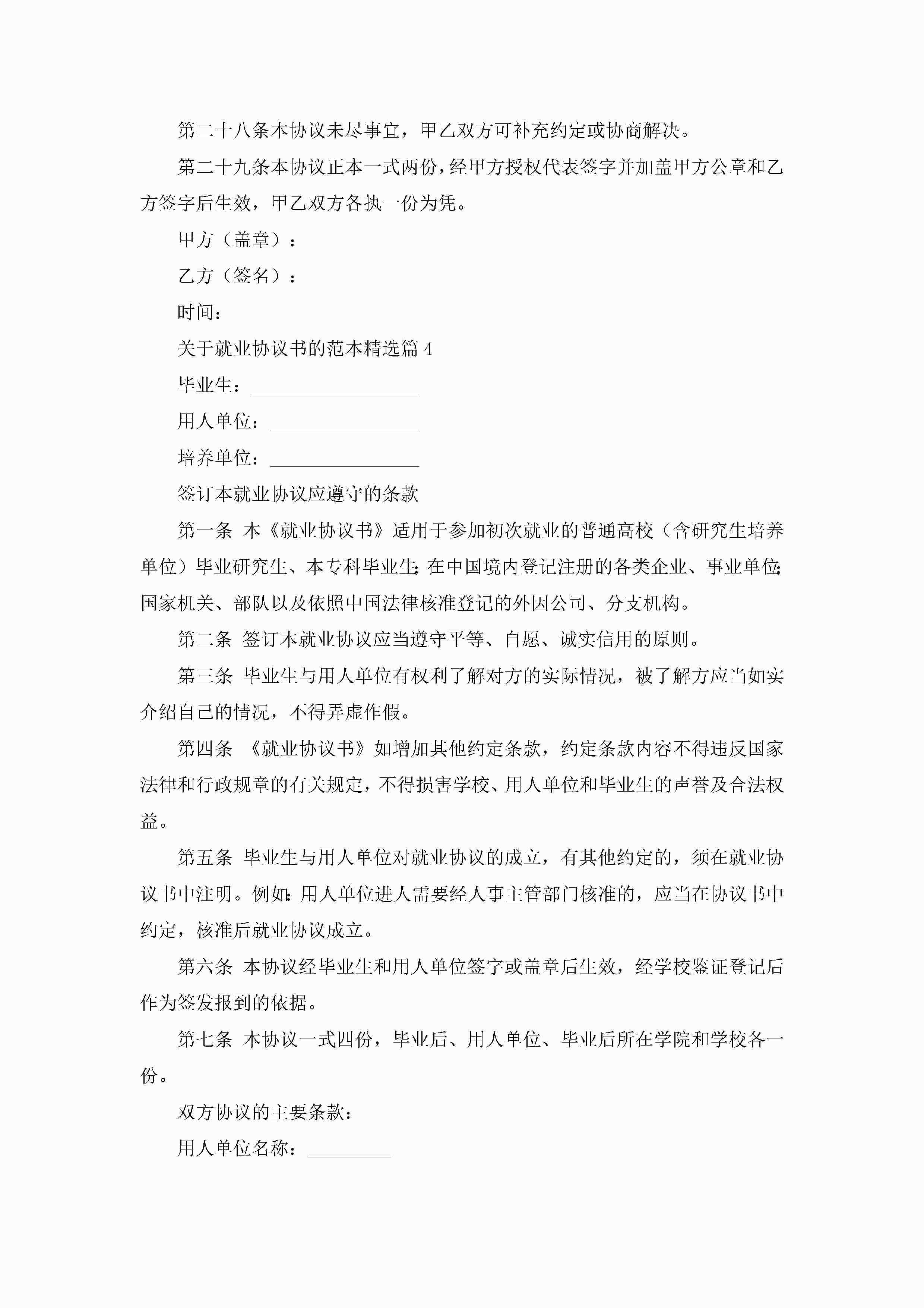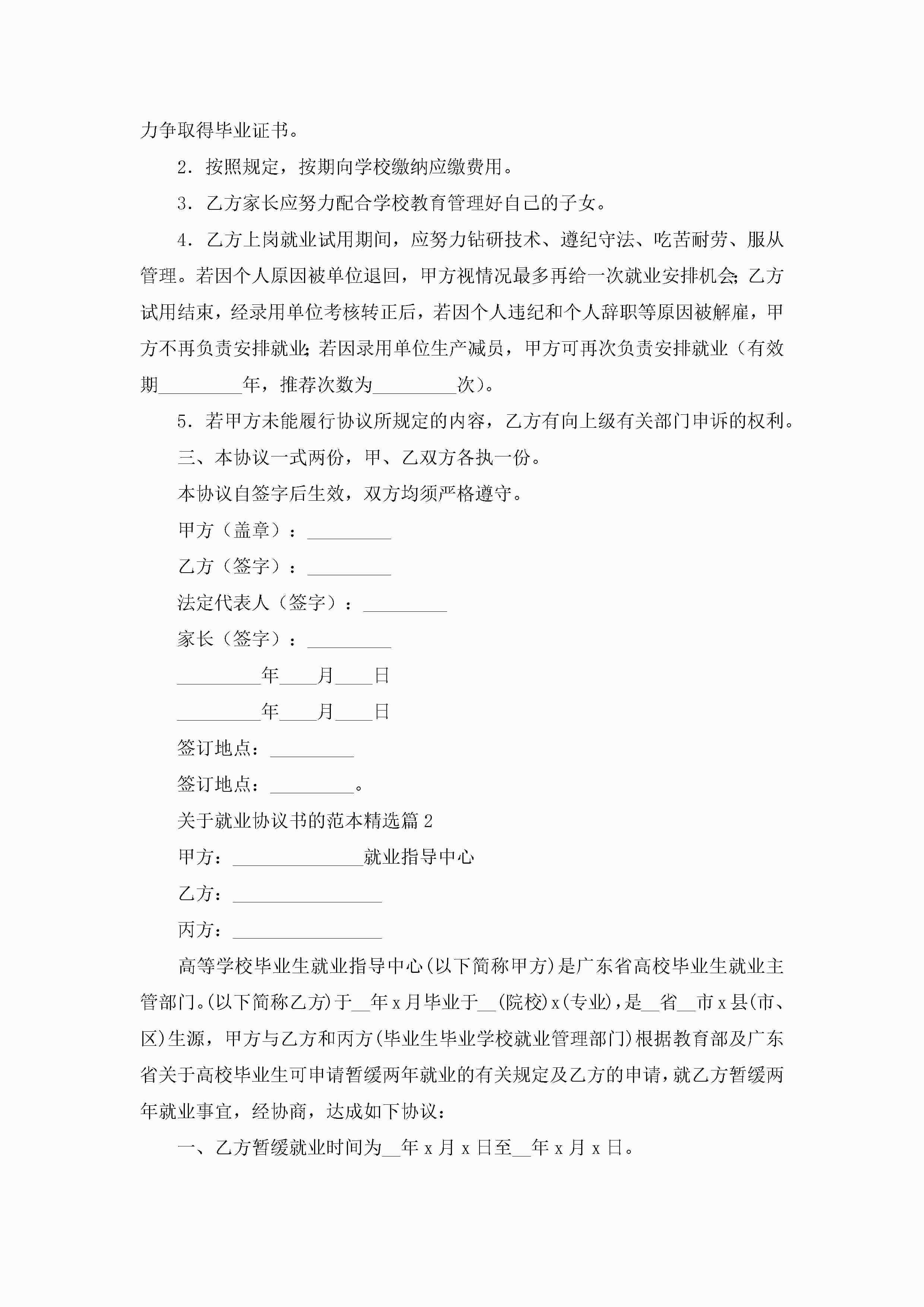 关于就业协议书的范本(精选8篇)jugei3月22日 01:32发布关注284 关于就业协议书的范本(精选8篇)此内容为付费资源,请付费后查看¥10.9 单篇文档限时特惠¥15个人会员开通企业会员开通立即下载无需登陆!可直接快捷下载单个模板付费资源© 版权声明THE ENDWord模板# 实用文档# 实用模板# 信函模板# 协议书 如有问题,可点击最底部“联系我们”联系客服 分享QQ空间微博QQ好友海报分享复制链接收藏