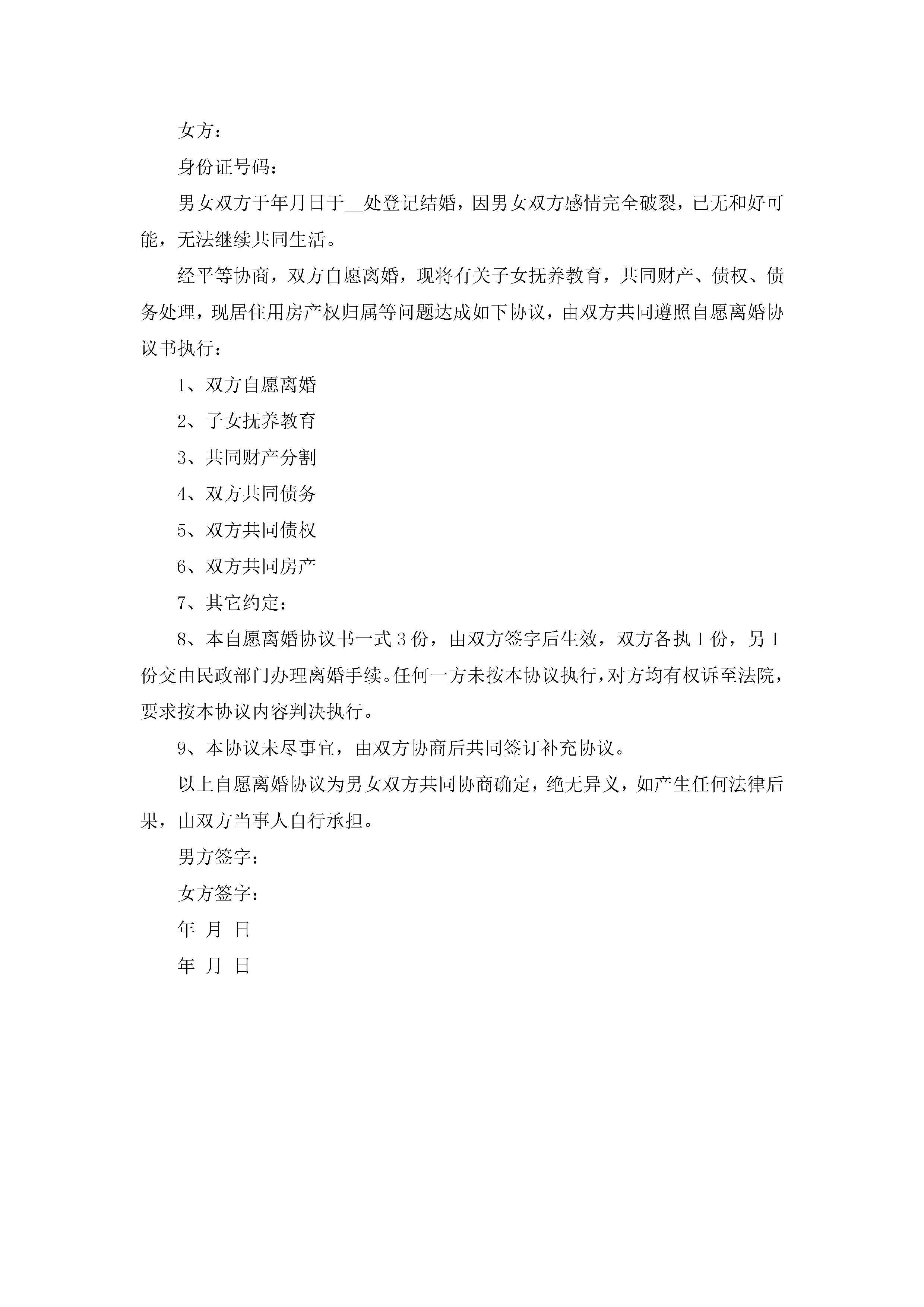 离婚协议书样本(6篇)jugei3月22日 01:32发布关注304 离婚协议书样本(6篇)此内容为付费资源,请付费后查看¥10.9 单篇文档限时特惠¥15个人会员开通企业会员开通立即下载无需登陆!可直接快捷下载单个模板付费资源© 版权声明THE ENDWord模板# 实用文档# 实用模板# 信函模板# 协议书 如有问题,可点击最底部“联系我们”联系客服 分享QQ空间微博QQ好友海报分享复制链接收藏