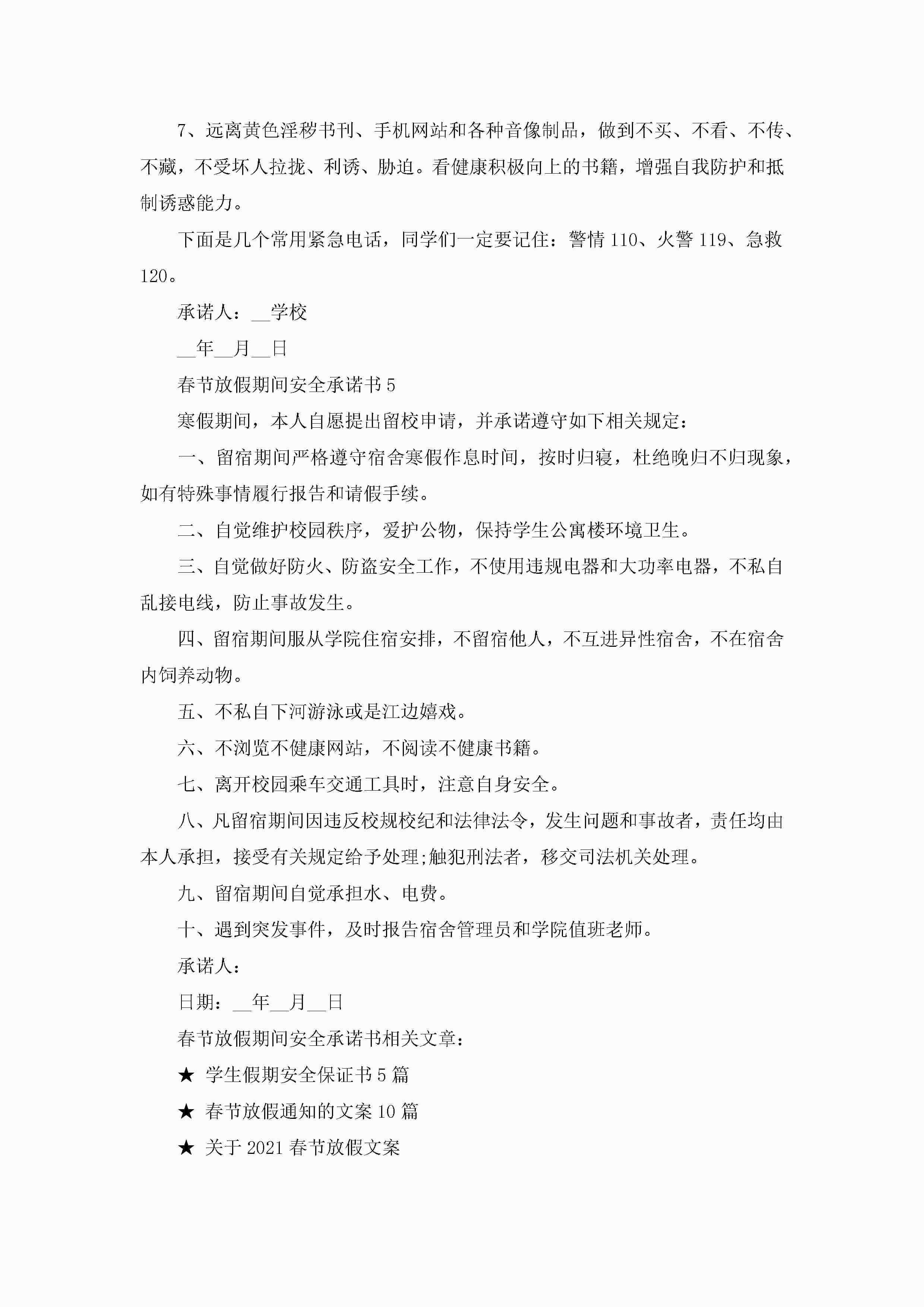 春节放假期间安全承诺书5篇jugei3月22日 16:21发布关注201 春节放假期间安全承诺书5篇此内容为付费资源,请付费后查看¥10.9 单篇文档限时特惠¥15个人会员开通企业会员开通立即下载无需登陆!可直接快捷下载单个模板付费资源© 版权声明THE ENDWord模板# 实用文档# 实用模板# 信函模板# 承诺书 如有问题,可点击最底部“联系我们”联系客服 分享QQ空间微博QQ好友海报分享复制链接收藏