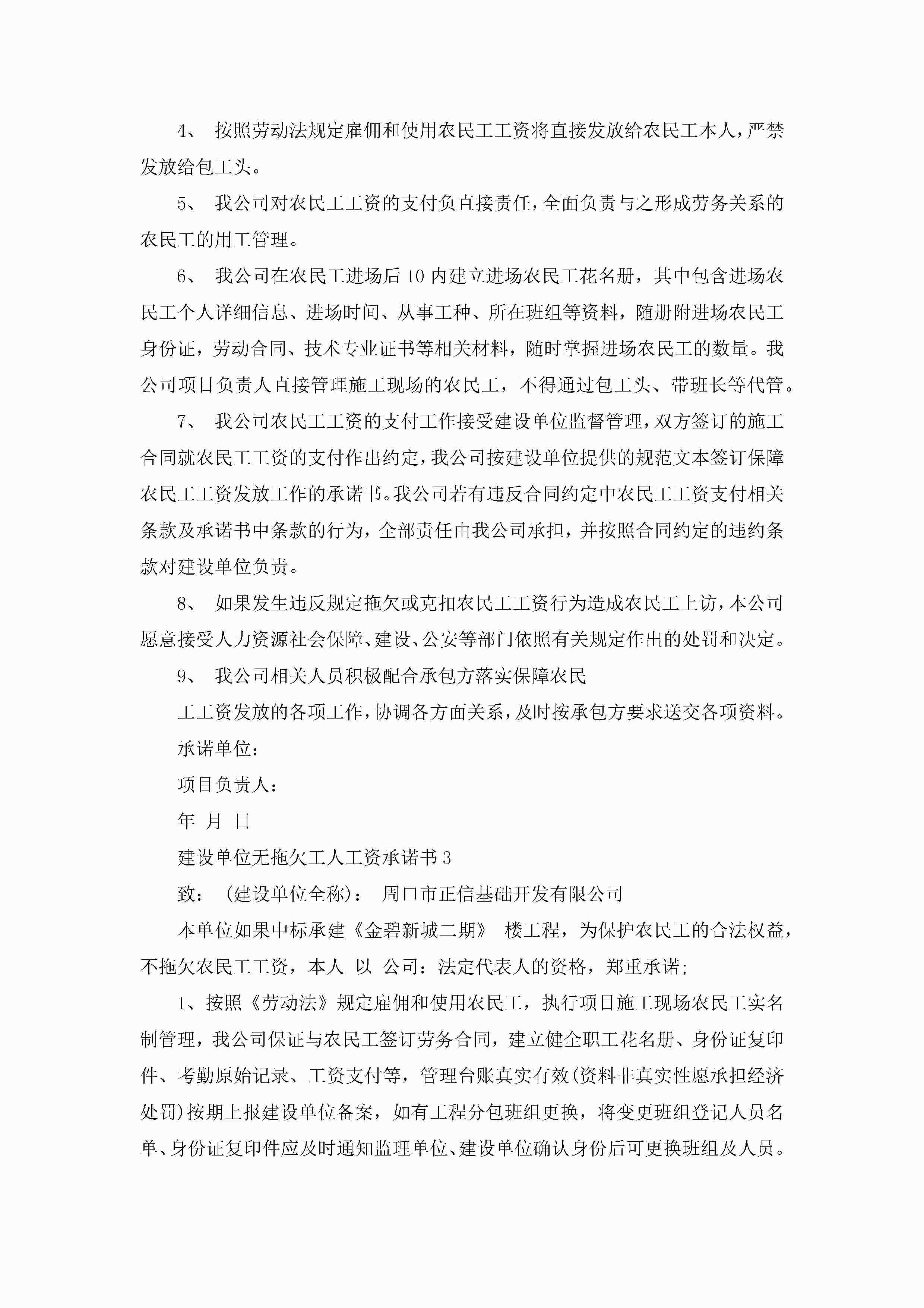 建设单位无拖欠工人工资承诺书5篇jugei3月22日 16:21发布关注203 建设单位无拖欠工人工资承诺书5篇此内容为付费资源,请付费后查看¥10.9 单篇文档限时特惠¥15个人会员开通企业会员开通立即下载无需登陆!可直接快捷下载单个模板付费资源© 版权声明THE ENDWord模板# 实用文档# 实用模板# 信函模板# 承诺书 如有问题,可点击最底部“联系我们”联系客服 分享QQ空间微博QQ好友海报分享复制链接收藏