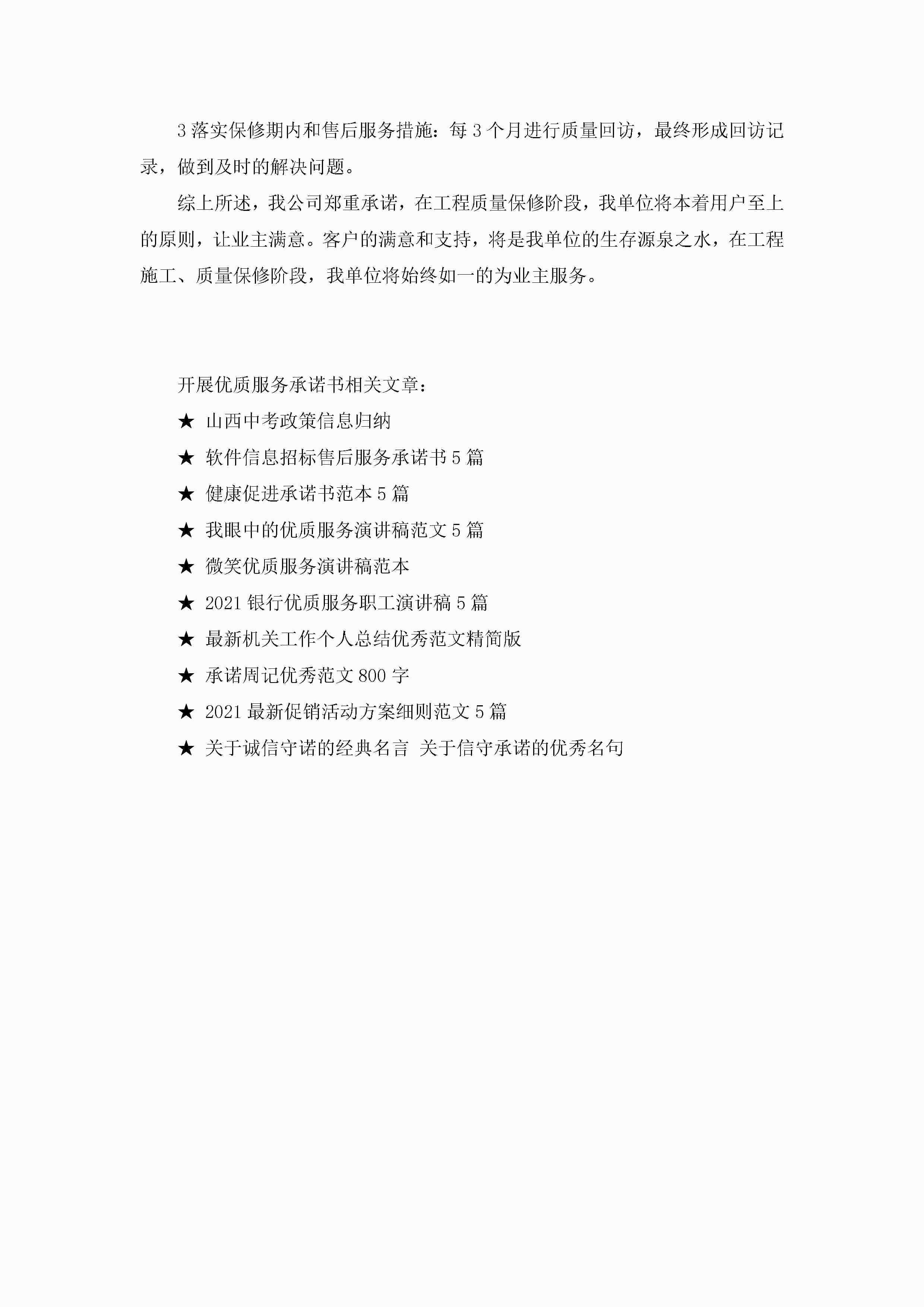 开展优质服务承诺书jugei3月22日 16:21发布关注207 开展优质服务承诺书此内容为付费资源,请付费后查看¥10.9 单篇文档限时特惠¥15个人会员开通企业会员开通立即下载无需登陆!可直接快捷下载单个模板付费资源© 版权声明THE ENDWord模板# 实用文档# 实用模板# 信函模板# 承诺书 如有问题,可点击最底部“联系我们”联系客服 分享QQ空间微博QQ好友海报分享复制链接收藏