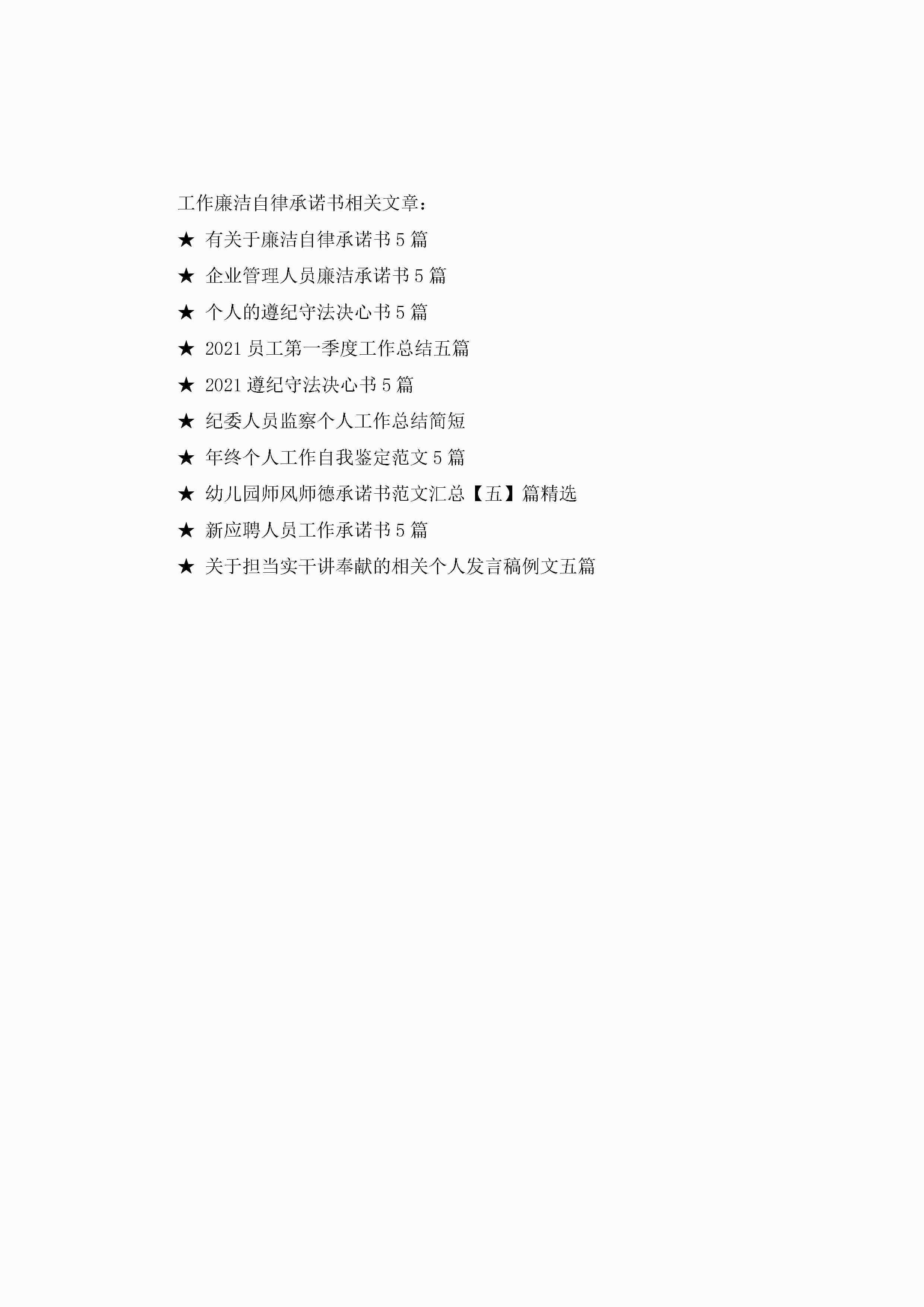 工作廉洁自律承诺书jugei3月22日 16:21发布关注237 工作廉洁自律承诺书此内容为付费资源,请付费后查看¥10.9 单篇文档限时特惠¥15个人会员开通企业会员开通立即下载无需登陆!可直接快捷下载单个模板付费资源© 版权声明THE ENDWord模板# 实用文档# 实用模板# 信函模板# 承诺书 如有问题,可点击最底部“联系我们”联系客服 分享QQ空间微博QQ好友海报分享复制链接收藏