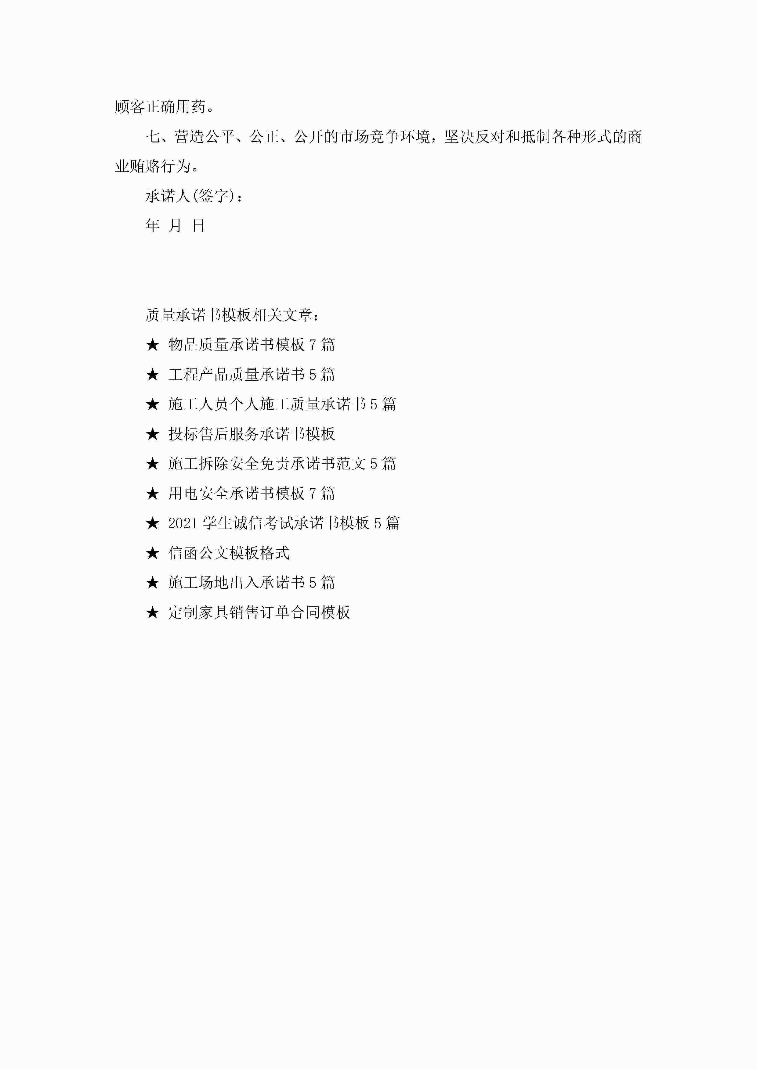 药店药品质量承诺书模板6篇jugei3月22日 16:21发布关注189 药店药品质量承诺书模板6篇此内容为付费资源,请付费后查看¥10.9 单篇文档限时特惠¥15个人会员开通企业会员开通立即下载无需登陆!可直接快捷下载单个模板付费资源© 版权声明THE ENDWord模板# 实用文档# 实用模板# 信函模板# 承诺书 如有问题,可点击最底部“联系我们”联系客服 分享QQ空间微博QQ好友海报分享复制链接收藏