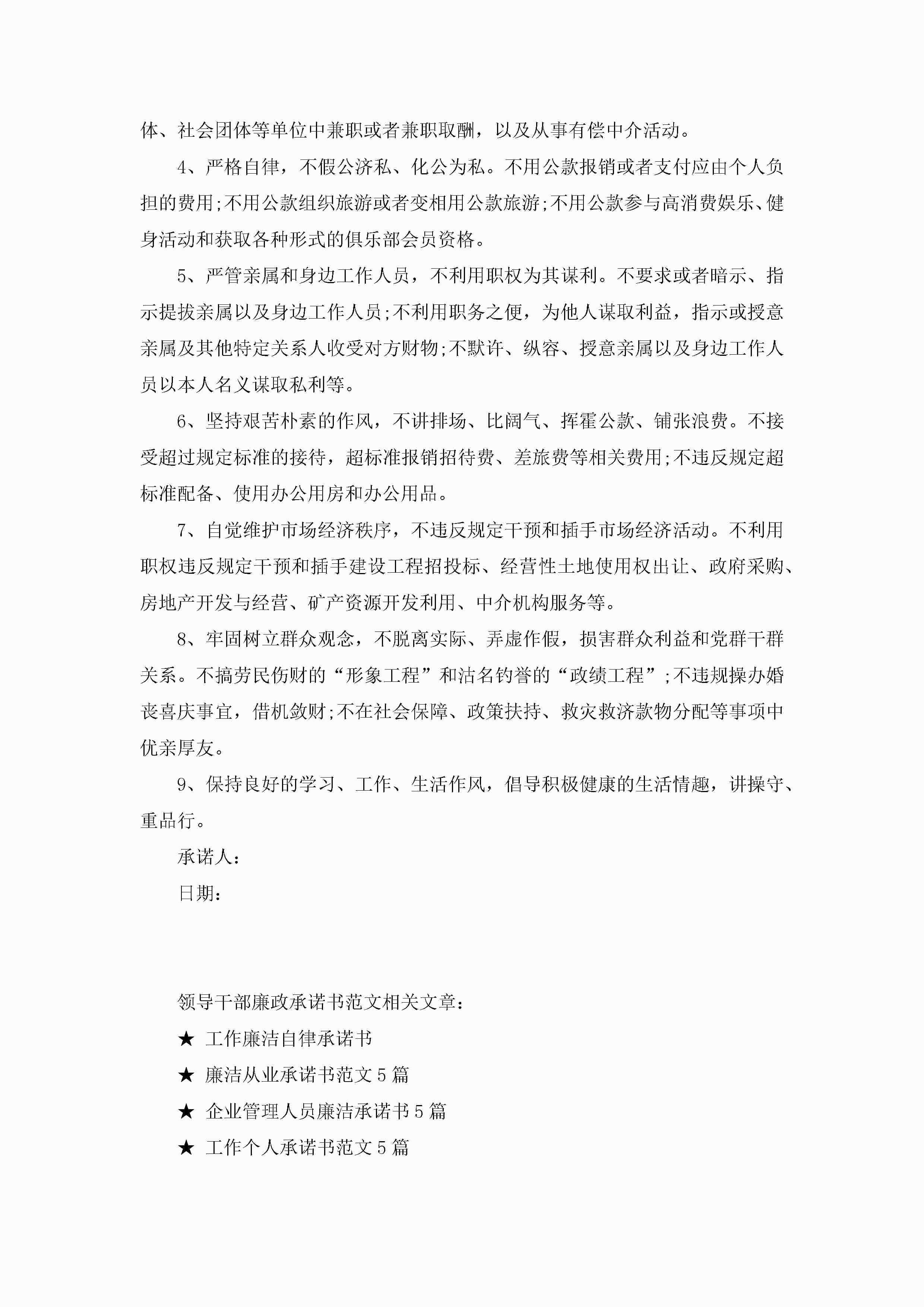 领导干部廉政承诺书范文5篇jugei3月22日 16:21发布关注191 领导干部廉政承诺书范文5篇此内容为付费资源,请付费后查看¥10.9 单篇文档限时特惠¥15个人会员开通企业会员开通立即下载无需登陆!可直接快捷下载单个模板付费资源© 版权声明THE ENDWord模板# 实用文档# 实用模板# 信函模板# 承诺书 如有问题,可点击最底部“联系我们”联系客服 分享QQ空间微博QQ好友海报分享复制链接收藏