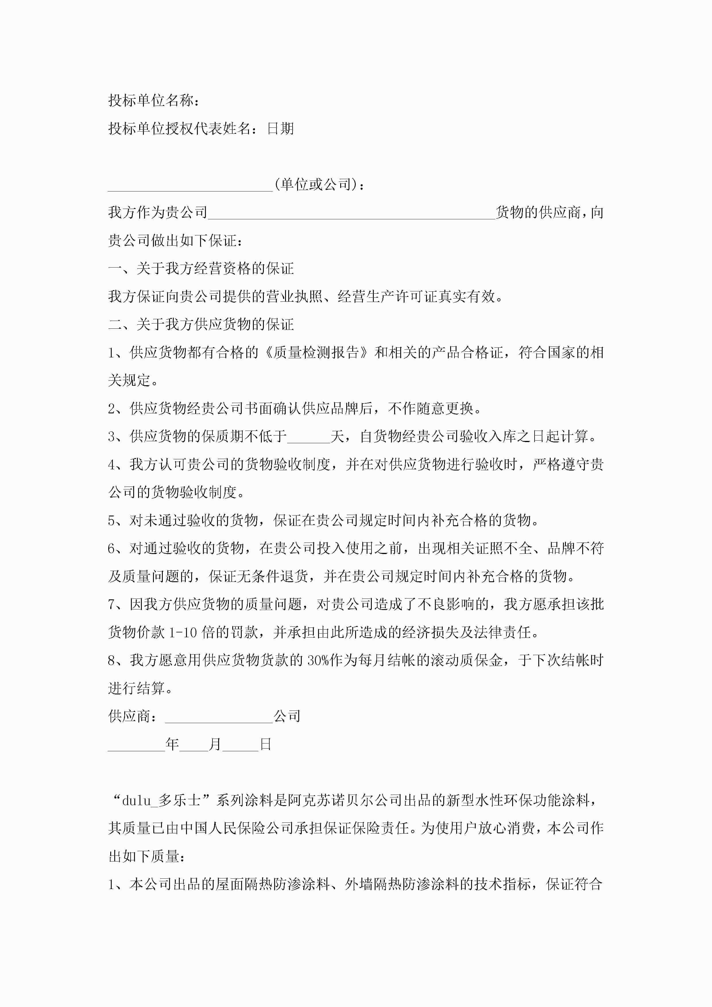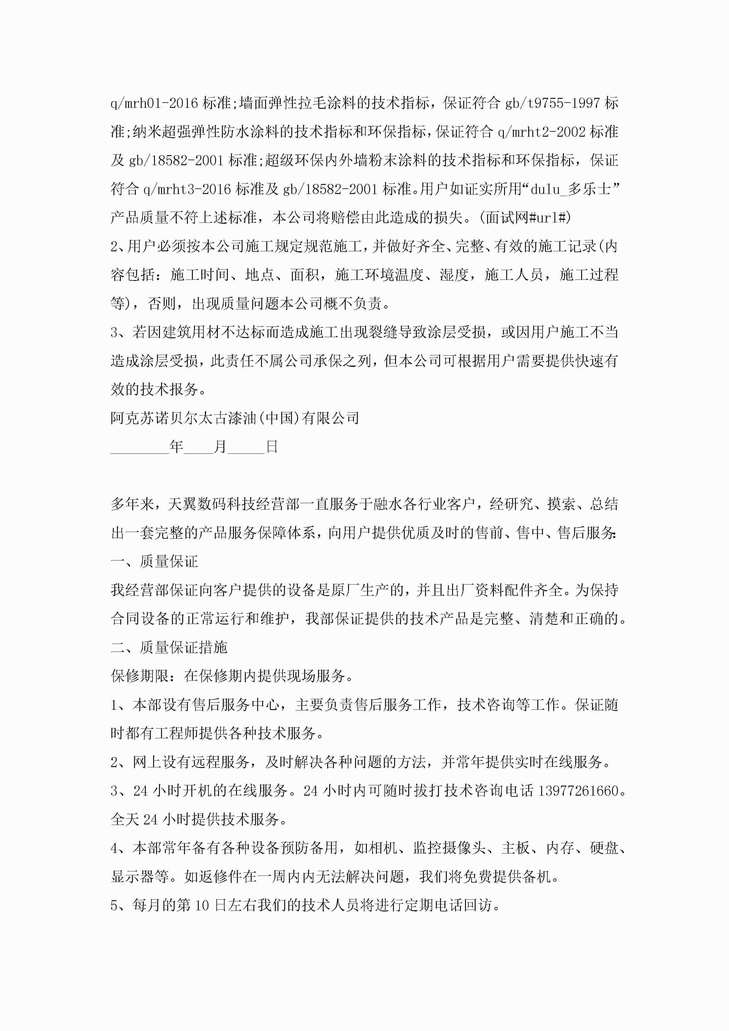 产品质量承诺书例文5篇jugei3月22日 16:21发布关注195 产品质量承诺书例文5篇此内容为付费资源,请付费后查看¥10.9 单篇文档限时特惠¥15个人会员开通企业会员开通立即下载无需登陆!可直接快捷下载单个模板付费资源© 版权声明THE ENDWord模板# 实用文档# 实用模板# 信函模板# 承诺书 如有问题,可点击最底部“联系我们”联系客服 分享QQ空间微博QQ好友海报分享复制链接收藏