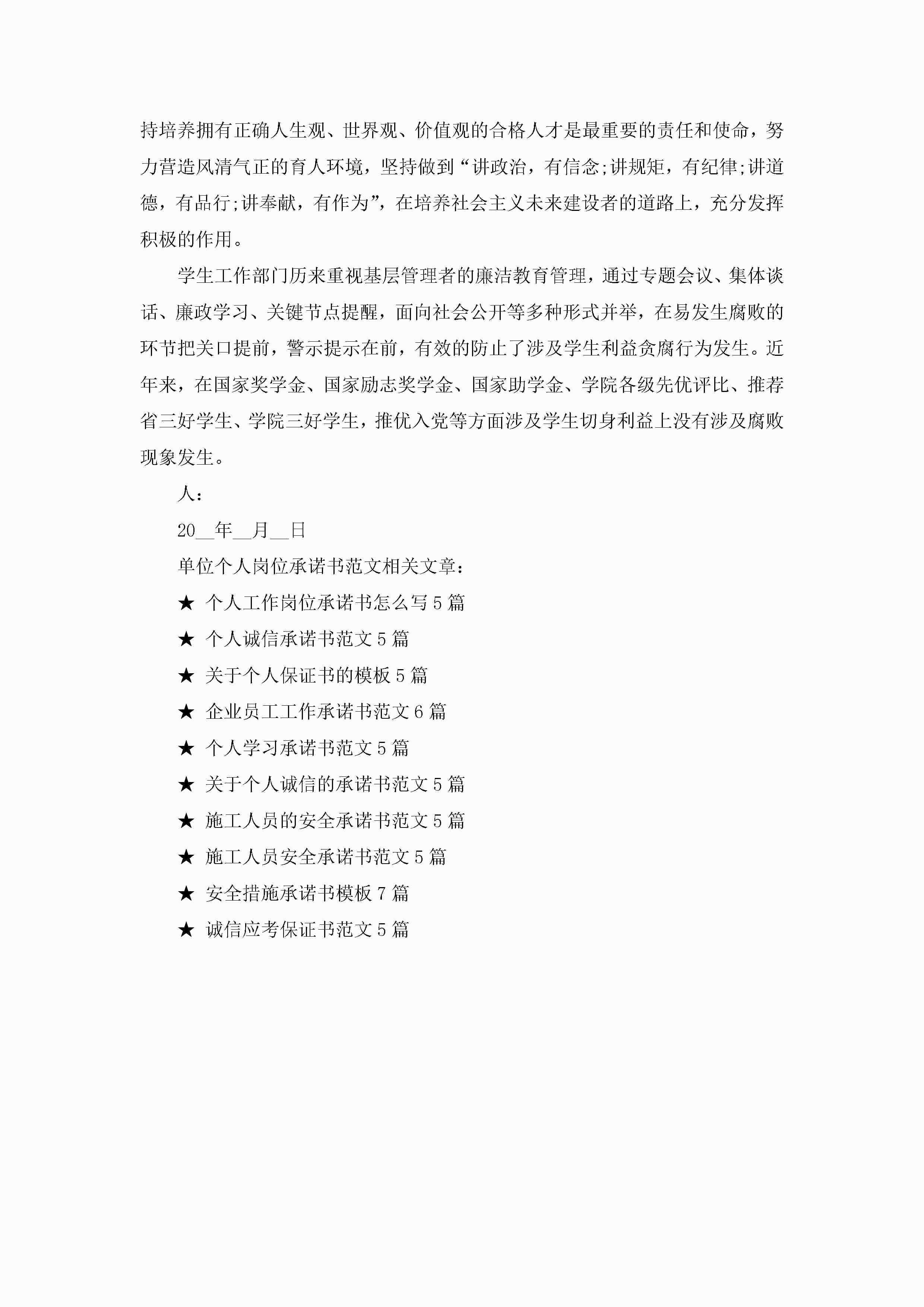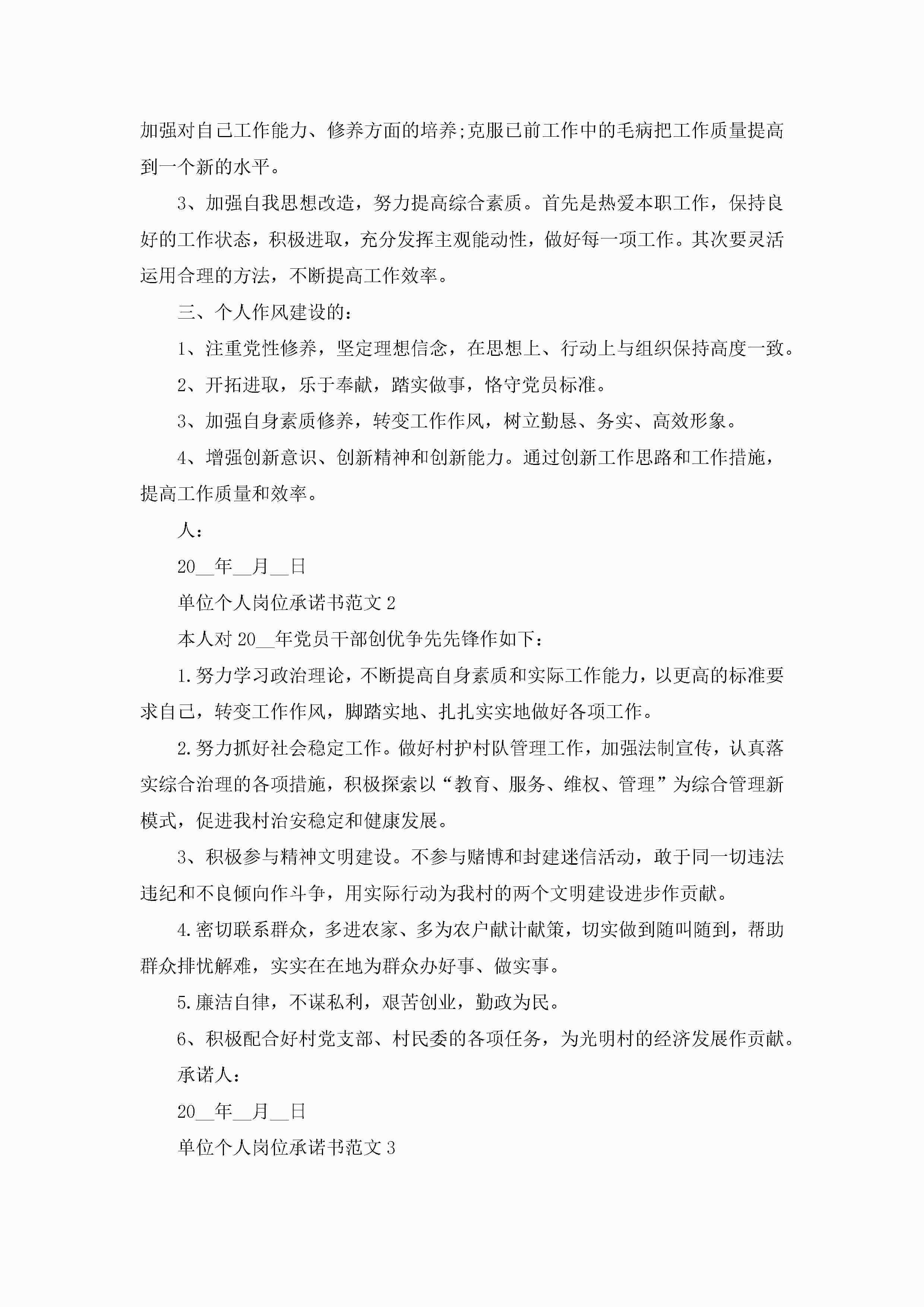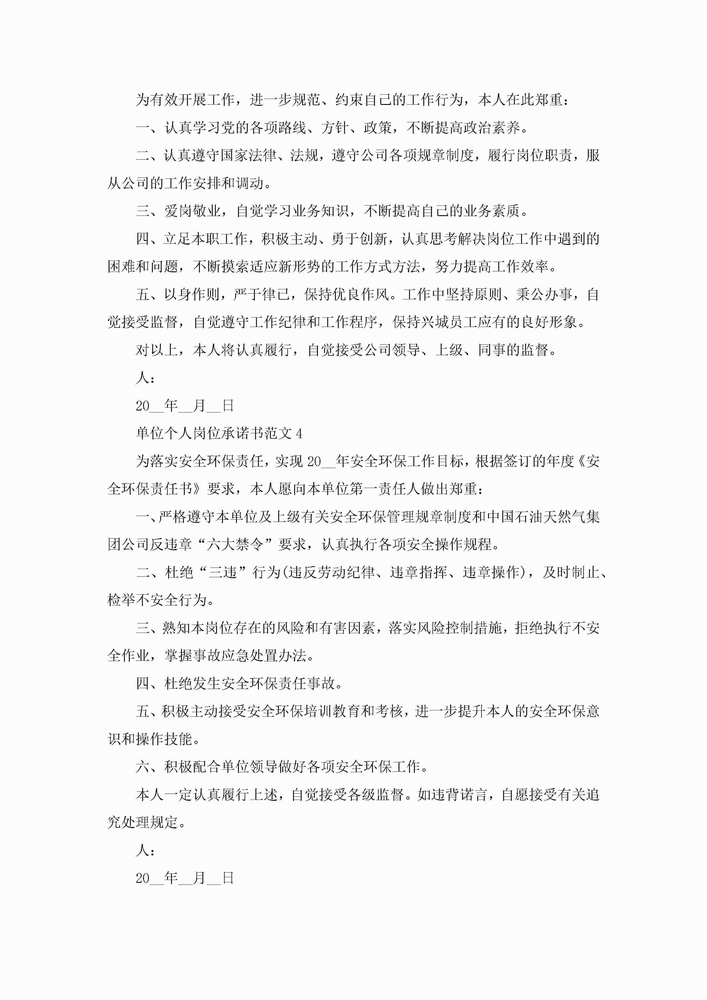 单位个人岗位承诺书范文5篇jugei3月22日 16:21发布关注195 单位个人岗位承诺书范文5篇此内容为付费资源,请付费后查看¥10.9 单篇文档限时特惠¥15个人会员开通企业会员开通立即下载无需登陆!可直接快捷下载单个模板付费资源© 版权声明THE ENDWord模板# 实用文档# 实用模板# 信函模板# 承诺书 如有问题,可点击最底部“联系我们”联系客服 分享QQ空间微博QQ好友海报分享复制链接收藏