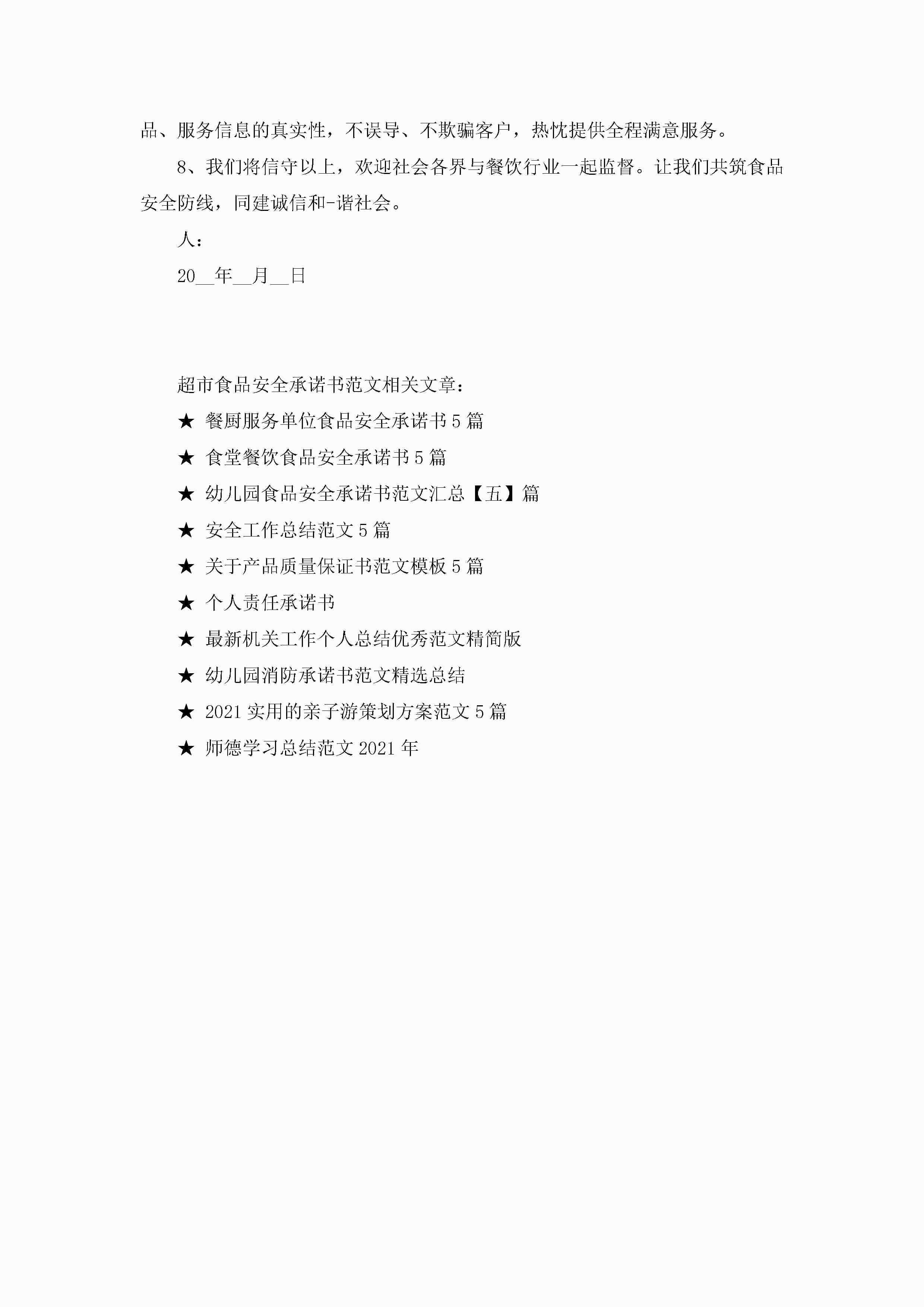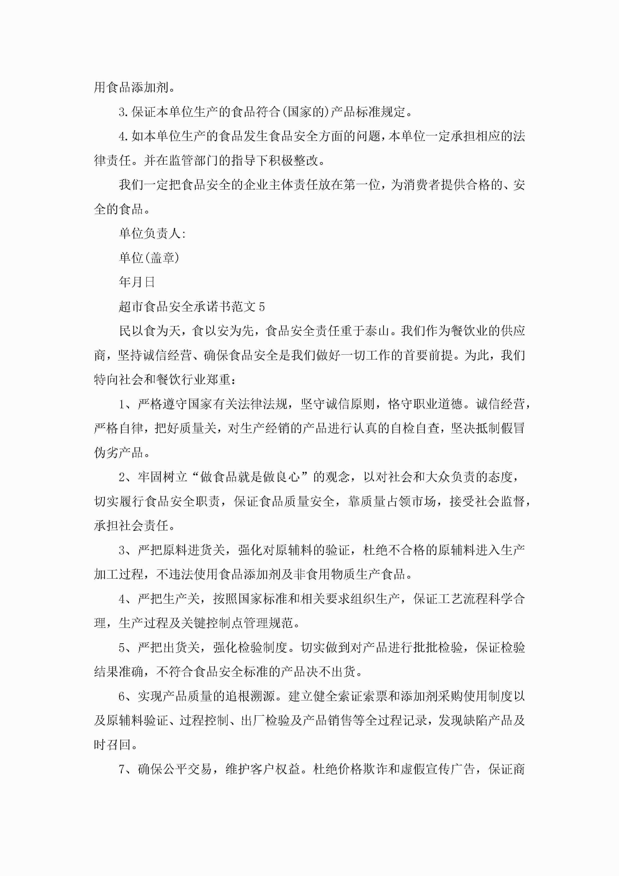 超市食品安全承诺书范文5篇jugei3月22日 16:21发布关注272 超市食品安全承诺书范文5篇此内容为付费资源,请付费后查看¥10.9 单篇文档限时特惠¥15个人会员开通企业会员开通立即下载无需登陆!可直接快捷下载单个模板付费资源© 版权声明THE ENDWord模板# 实用文档# 实用模板# 信函模板# 承诺书 如有问题,可点击最底部“联系我们”联系客服 分享QQ空间微博QQ好友海报分享复制链接收藏