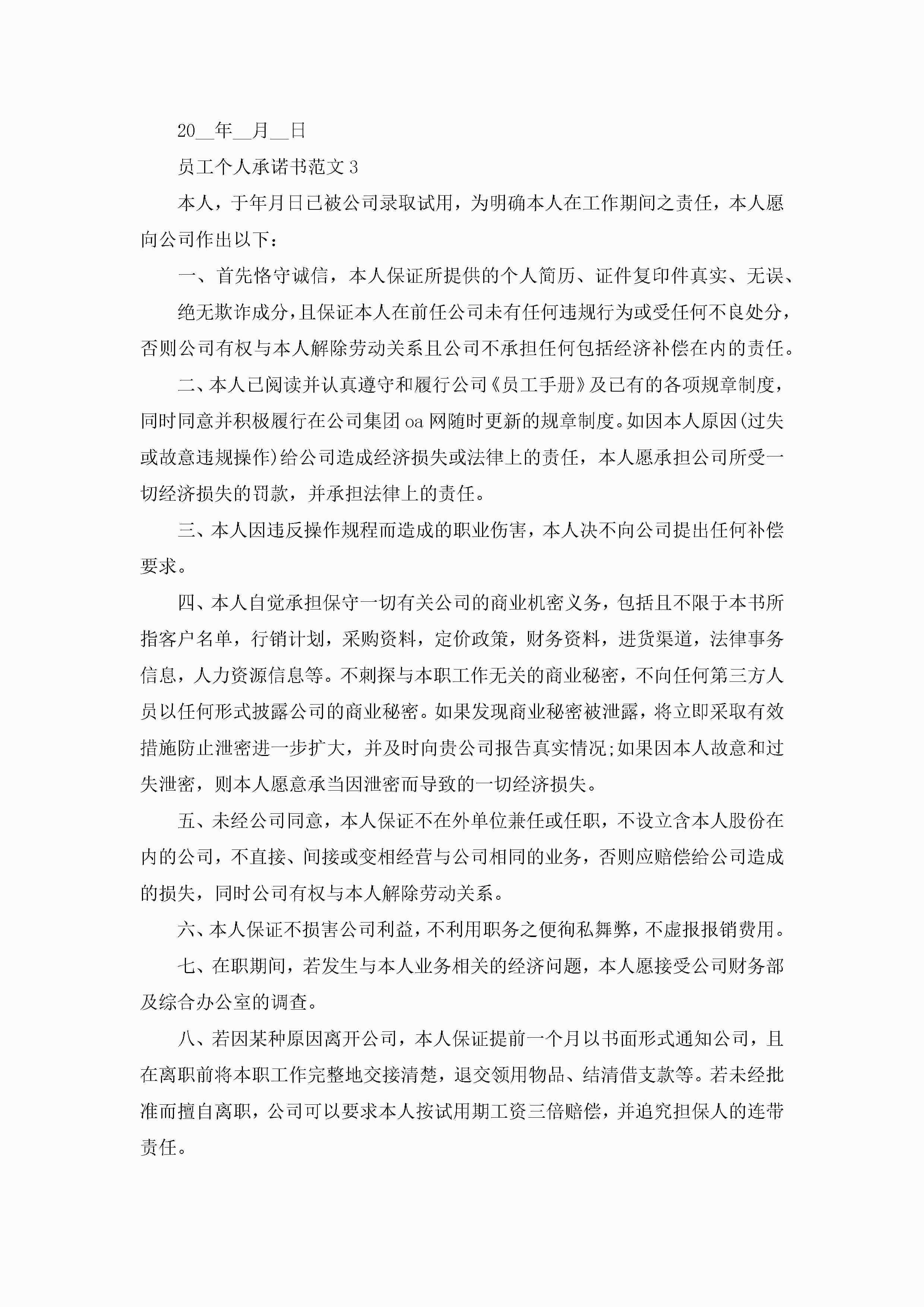 员工个人承诺书范文5篇jugei3月22日 16:21发布关注248 员工个人承诺书范文5篇此内容为付费资源,请付费后查看¥10.9 单篇文档限时特惠¥15个人会员开通企业会员开通立即下载无需登陆!可直接快捷下载单个模板付费资源© 版权声明THE ENDWord模板# 实用文档# 实用模板# 信函模板# 承诺书 如有问题,可点击最底部“联系我们”联系客服 分享QQ空间微博QQ好友海报分享复制链接收藏