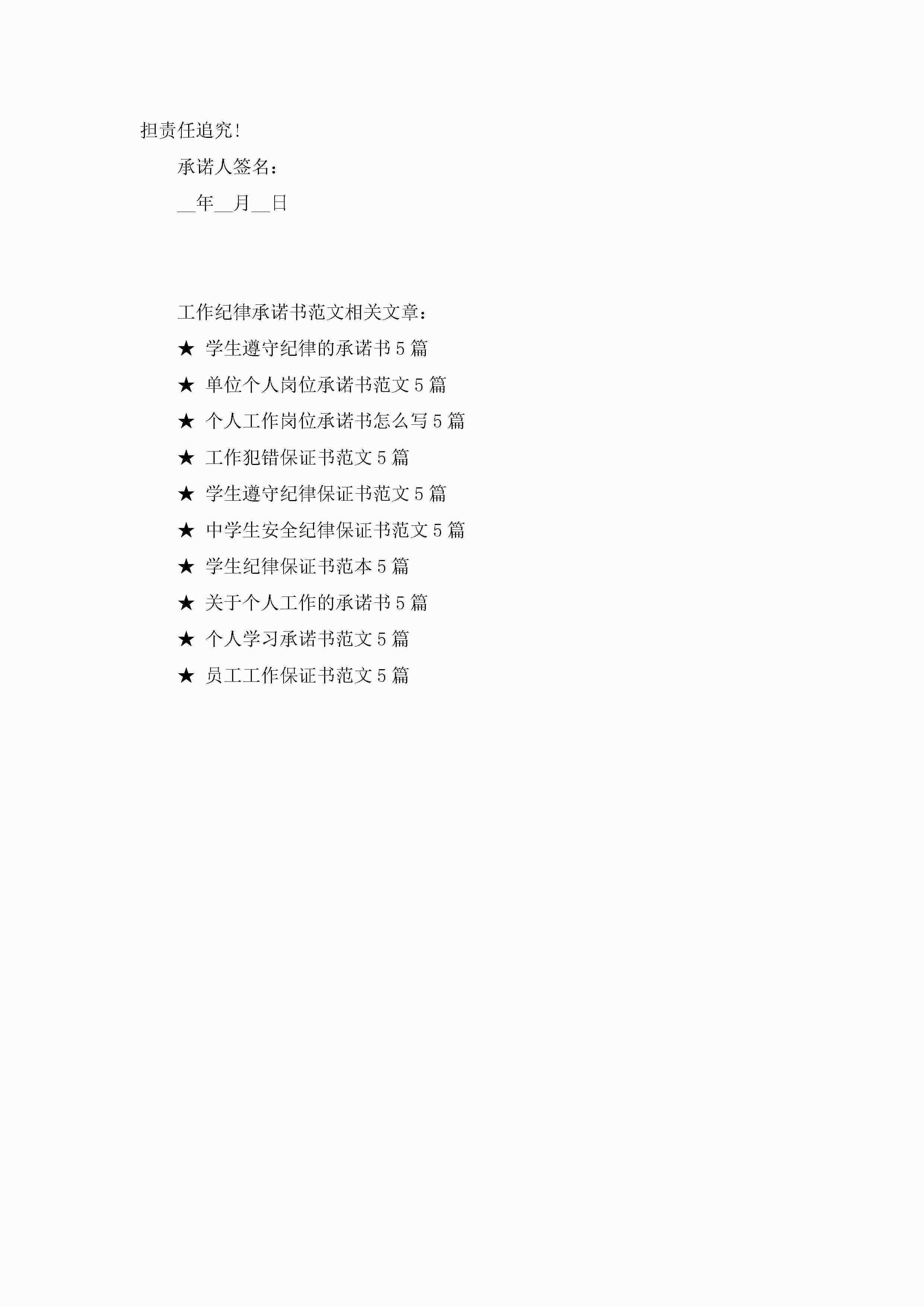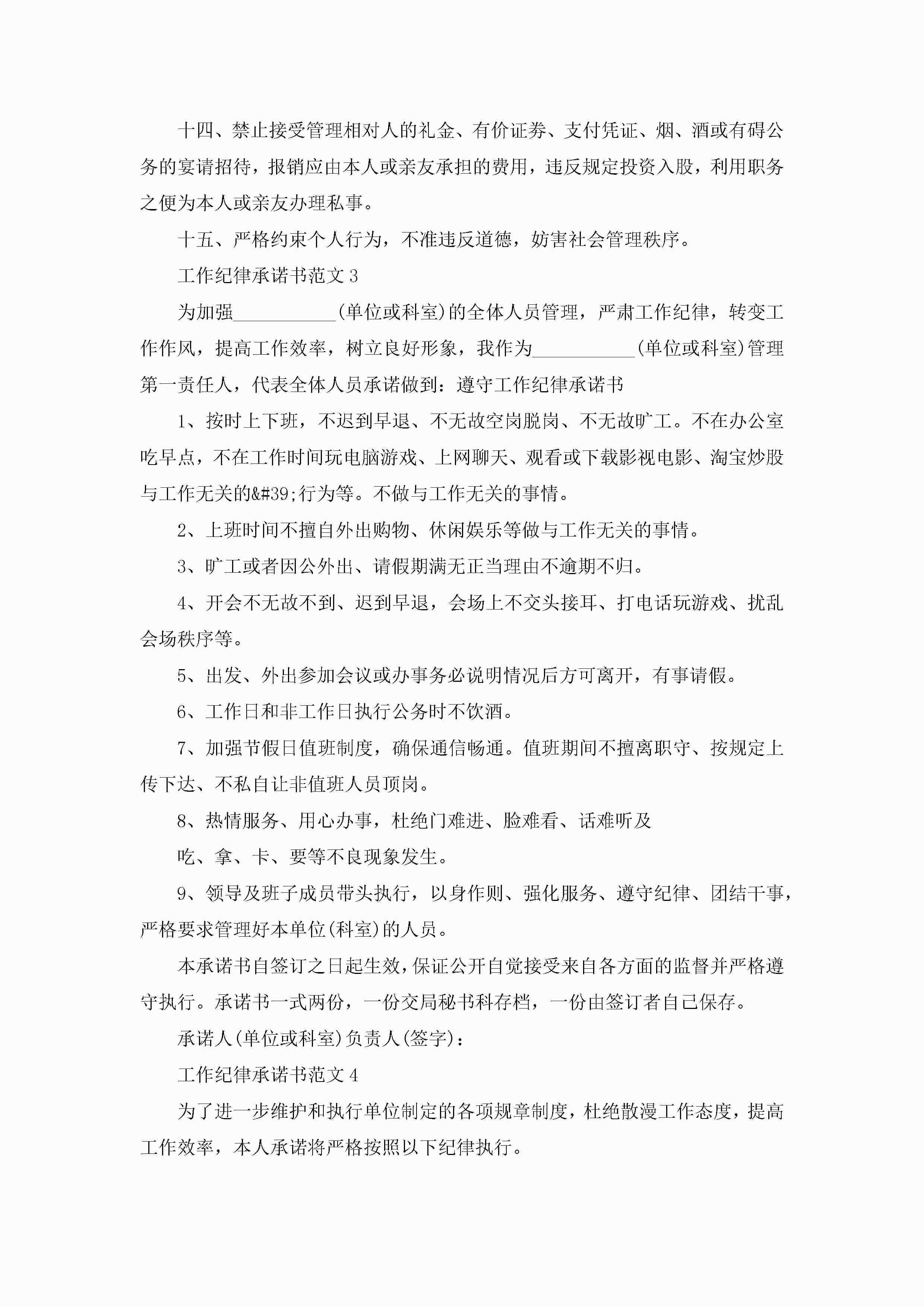 工作纪律承诺书范文5篇jugei3月22日 16:21发布关注213 工作纪律承诺书范文5篇此内容为付费资源,请付费后查看¥10.9 单篇文档限时特惠¥15个人会员开通企业会员开通立即下载无需登陆!可直接快捷下载单个模板付费资源© 版权声明THE ENDWord模板# 实用文档# 实用模板# 信函模板# 承诺书 如有问题,可点击最底部“联系我们”联系客服 分享QQ空间微博QQ好友海报分享复制链接收藏