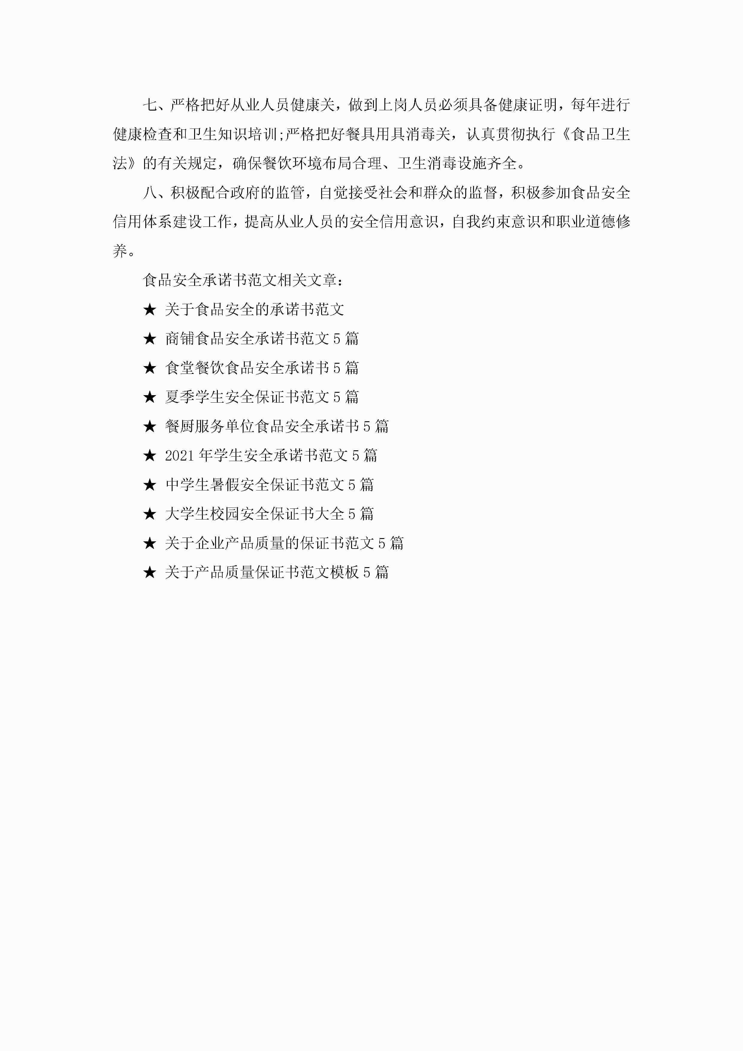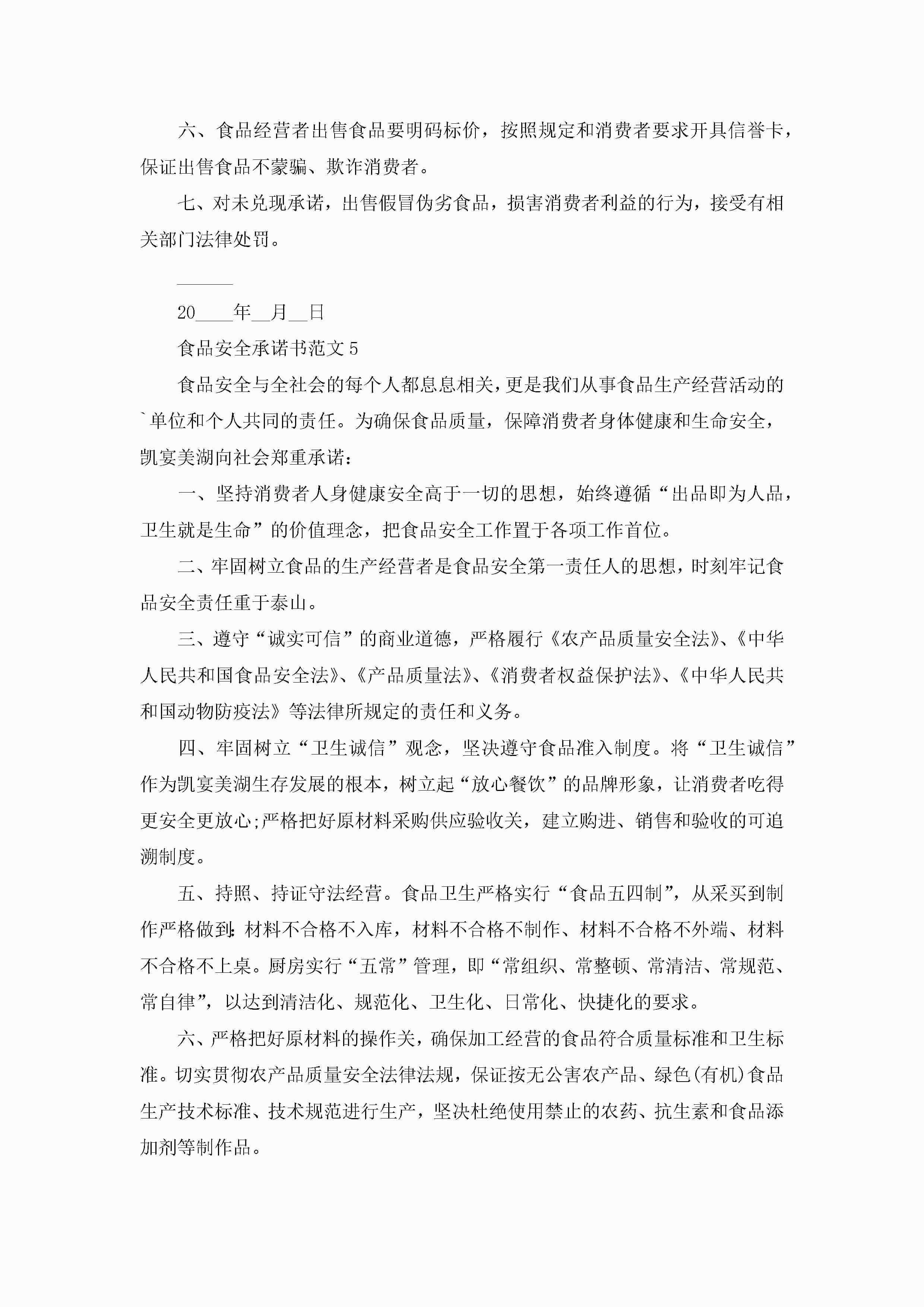 食品安全承诺书范文5篇jugei3月22日 16:21发布关注207 食品安全承诺书范文5篇此内容为付费资源,请付费后查看¥10.9 单篇文档限时特惠¥15个人会员开通企业会员开通立即下载无需登陆!可直接快捷下载单个模板付费资源© 版权声明THE ENDWord模板# 实用文档# 实用模板# 信函模板# 承诺书 如有问题,可点击最底部“联系我们”联系客服 分享QQ空间微博QQ好友海报分享复制链接收藏