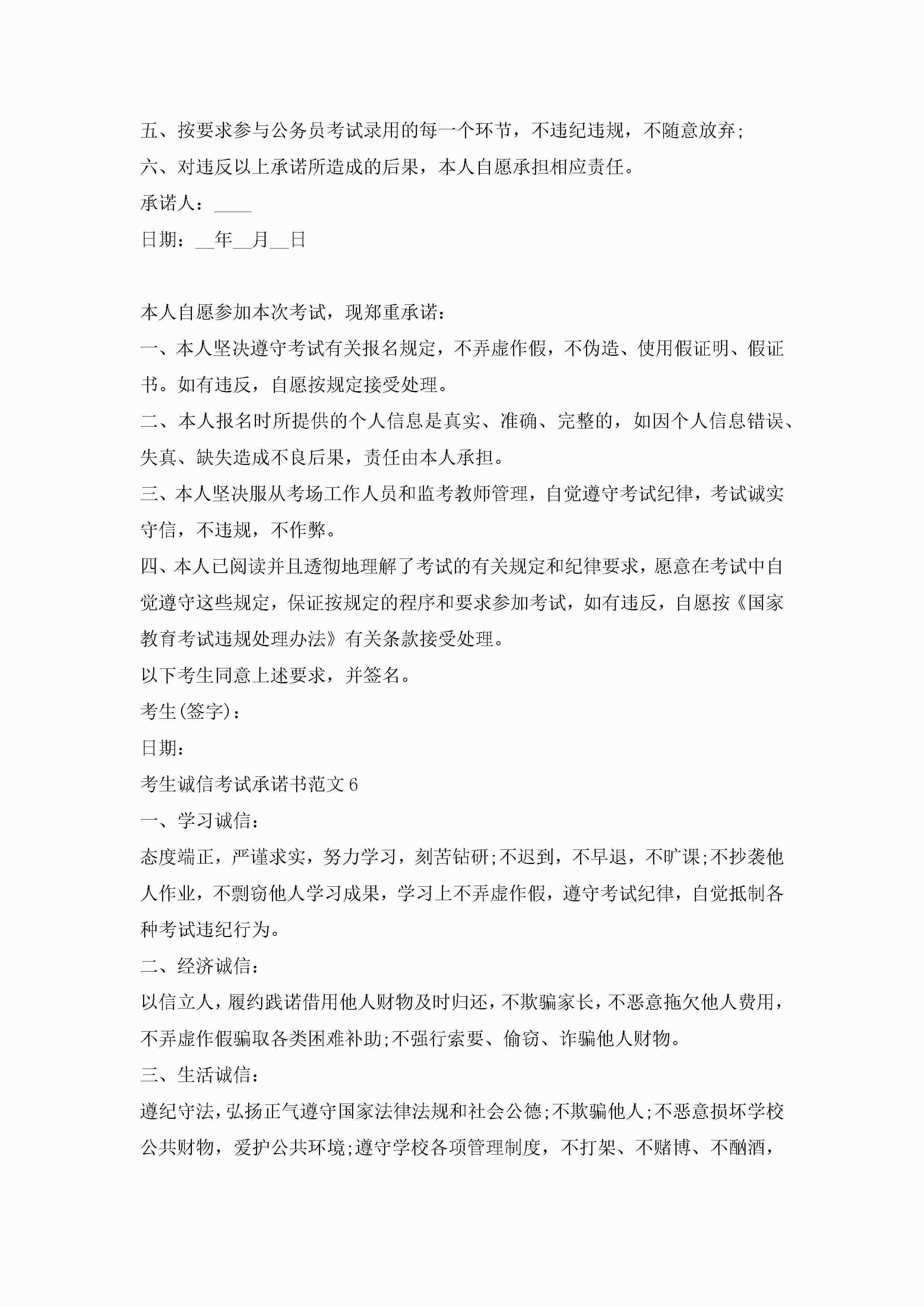 考生诚信考试承诺书范文6篇jugei3月22日 16:21发布关注210 考生诚信考试承诺书范文6篇此内容为付费资源,请付费后查看¥10.9 单篇文档限时特惠¥15个人会员开通企业会员开通立即下载无需登陆!可直接快捷下载单个模板付费资源© 版权声明THE ENDWord模板# 实用文档# 实用模板# 信函模板# 承诺书 如有问题,可点击最底部“联系我们”联系客服 分享QQ空间微博QQ好友海报分享复制链接收藏