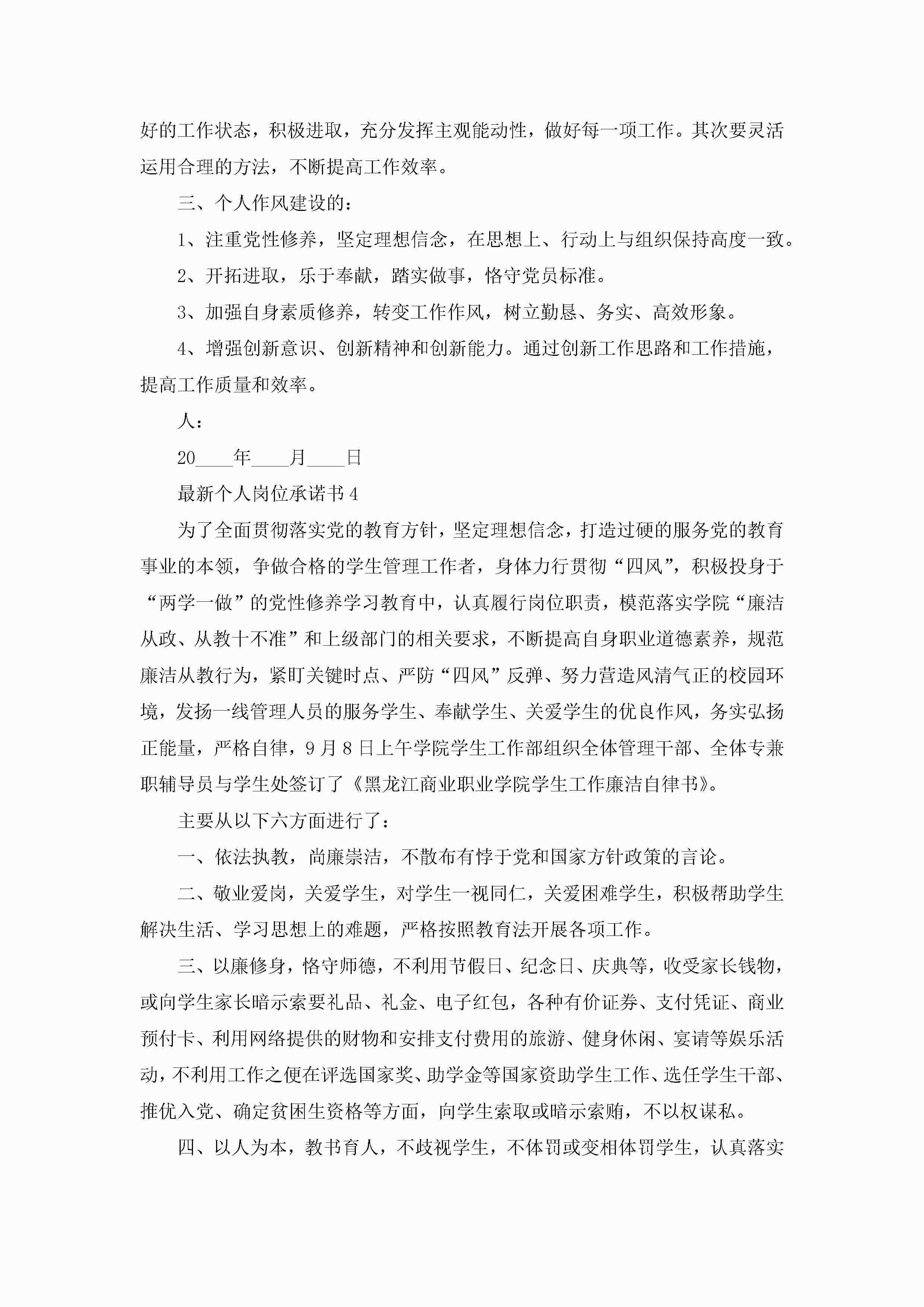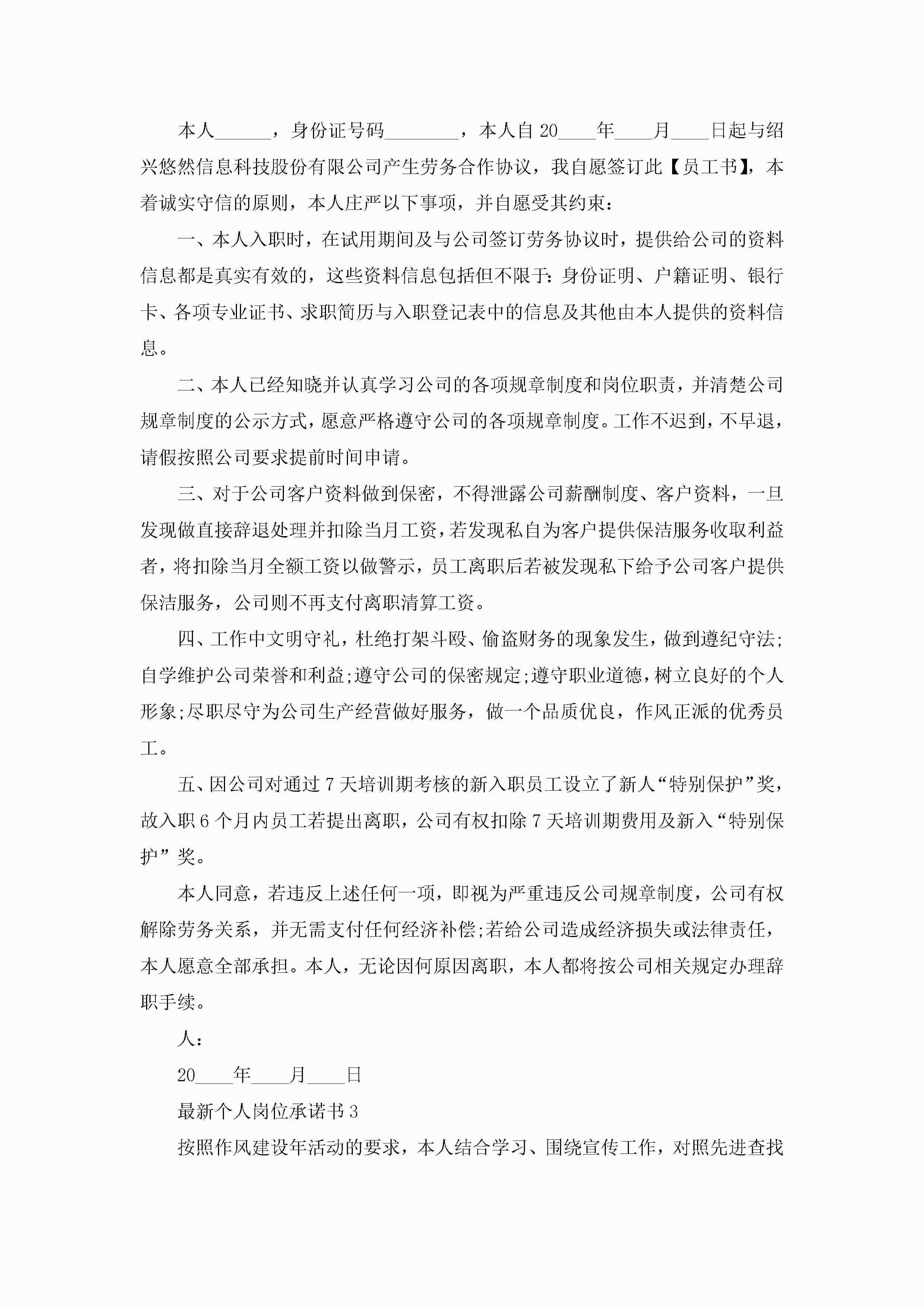 最新个人岗位承诺书5篇jugei3月22日 16:21发布关注206 最新个人岗位承诺书5篇此内容为付费资源,请付费后查看¥10.9 单篇文档限时特惠¥15个人会员开通企业会员开通立即下载无需登陆!可直接快捷下载单个模板付费资源© 版权声明THE ENDWord模板# 实用文档# 实用模板# 信函模板# 承诺书 如有问题,可点击最底部“联系我们”联系客服 分享QQ空间微博QQ好友海报分享复制链接收藏