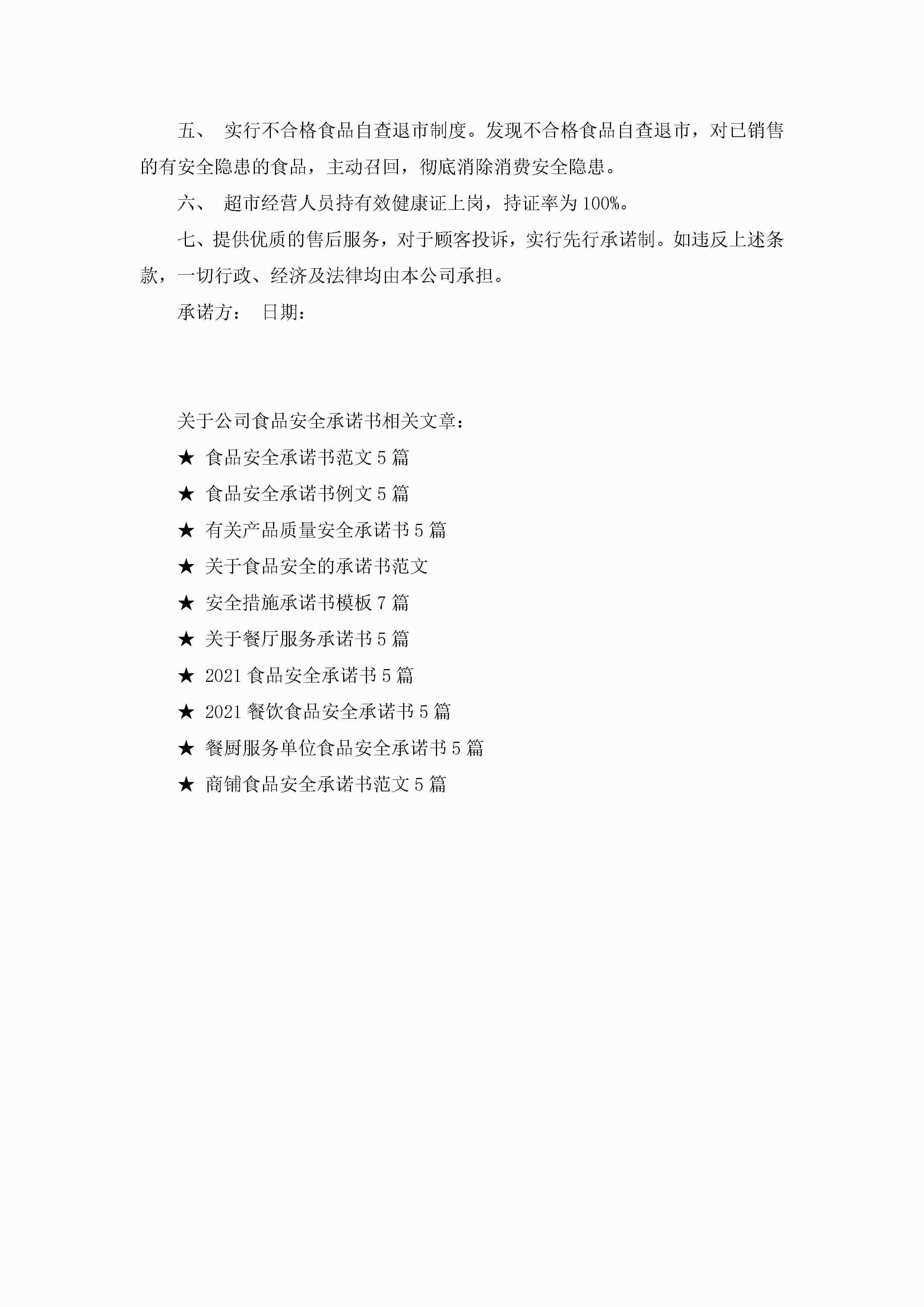 关于公司食品安全承诺书7篇jugei3月22日 16:22发布关注201 关于公司食品安全承诺书7篇此内容为付费资源,请付费后查看¥10.9 单篇文档限时特惠¥15个人会员开通企业会员开通立即下载无需登陆!可直接快捷下载单个模板付费资源© 版权声明THE ENDWord模板# 实用文档# 实用模板# 信函模板# 承诺书 如有问题,可点击最底部“联系我们”联系客服 分享QQ空间微博QQ好友海报分享复制链接收藏