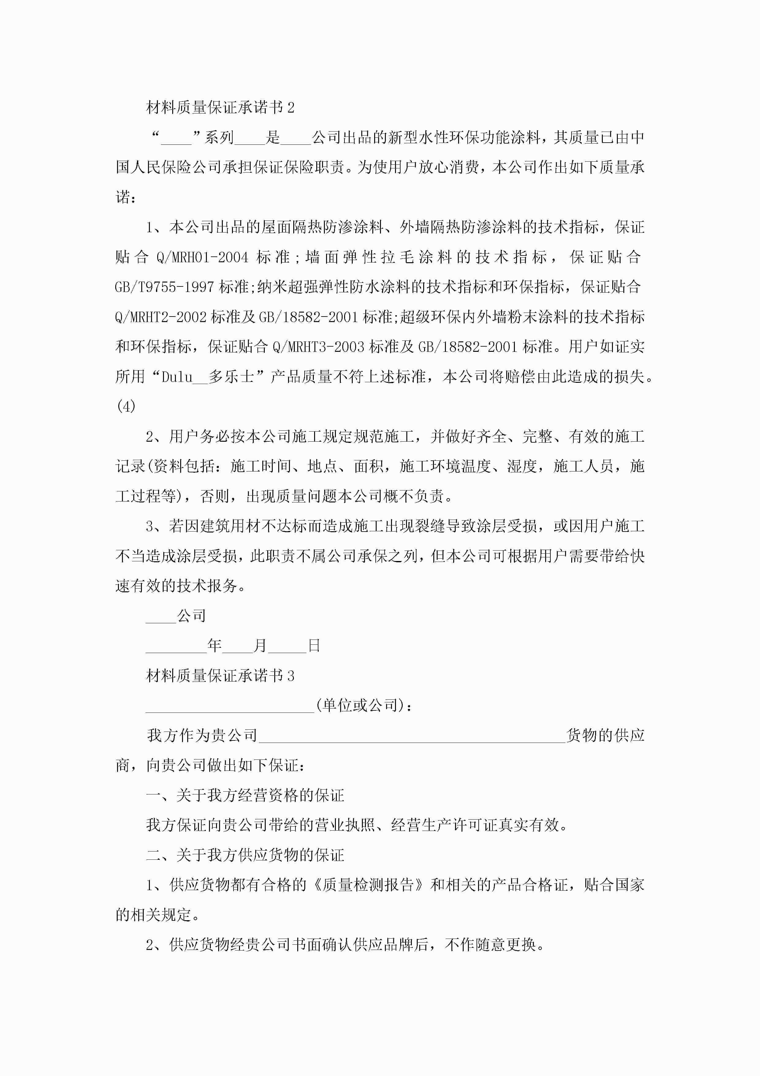 最新材料质量保证承诺书5篇jugei3月22日 16:22发布关注194 最新材料质量保证承诺书5篇此内容为付费资源,请付费后查看¥10.9 单篇文档限时特惠¥15个人会员开通企业会员开通立即下载无需登陆!可直接快捷下载单个模板付费资源© 版权声明THE ENDWord模板# 实用文档# 实用模板# 信函模板# 承诺书 如有问题,可点击最底部“联系我们”联系客服 分享QQ空间微博QQ好友海报分享复制链接收藏