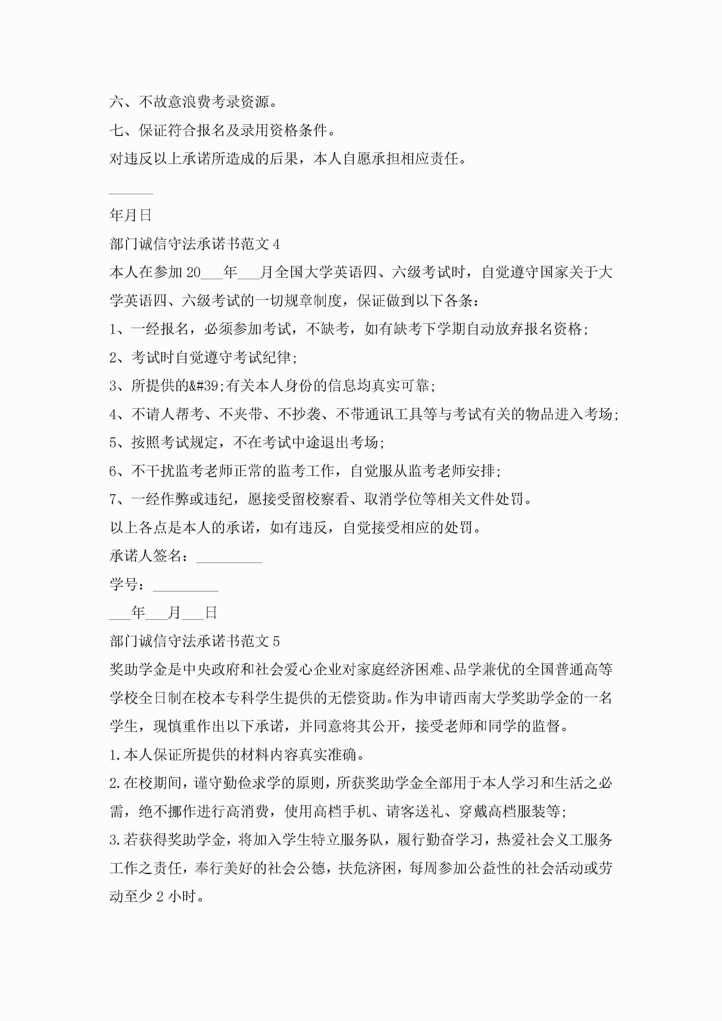 部门诚信守法承诺书8篇范文jugei3月22日 16:22发布关注194 部门诚信守法承诺书8篇范文此内容为付费资源,请付费后查看¥10.9 单篇文档限时特惠¥15个人会员开通企业会员开通立即下载无需登陆!可直接快捷下载单个模板付费资源© 版权声明THE ENDWord模板# 实用文档# 实用模板# 信函模板# 承诺书 如有问题,可点击最底部“联系我们”联系客服 分享QQ空间微博QQ好友海报分享复制链接收藏