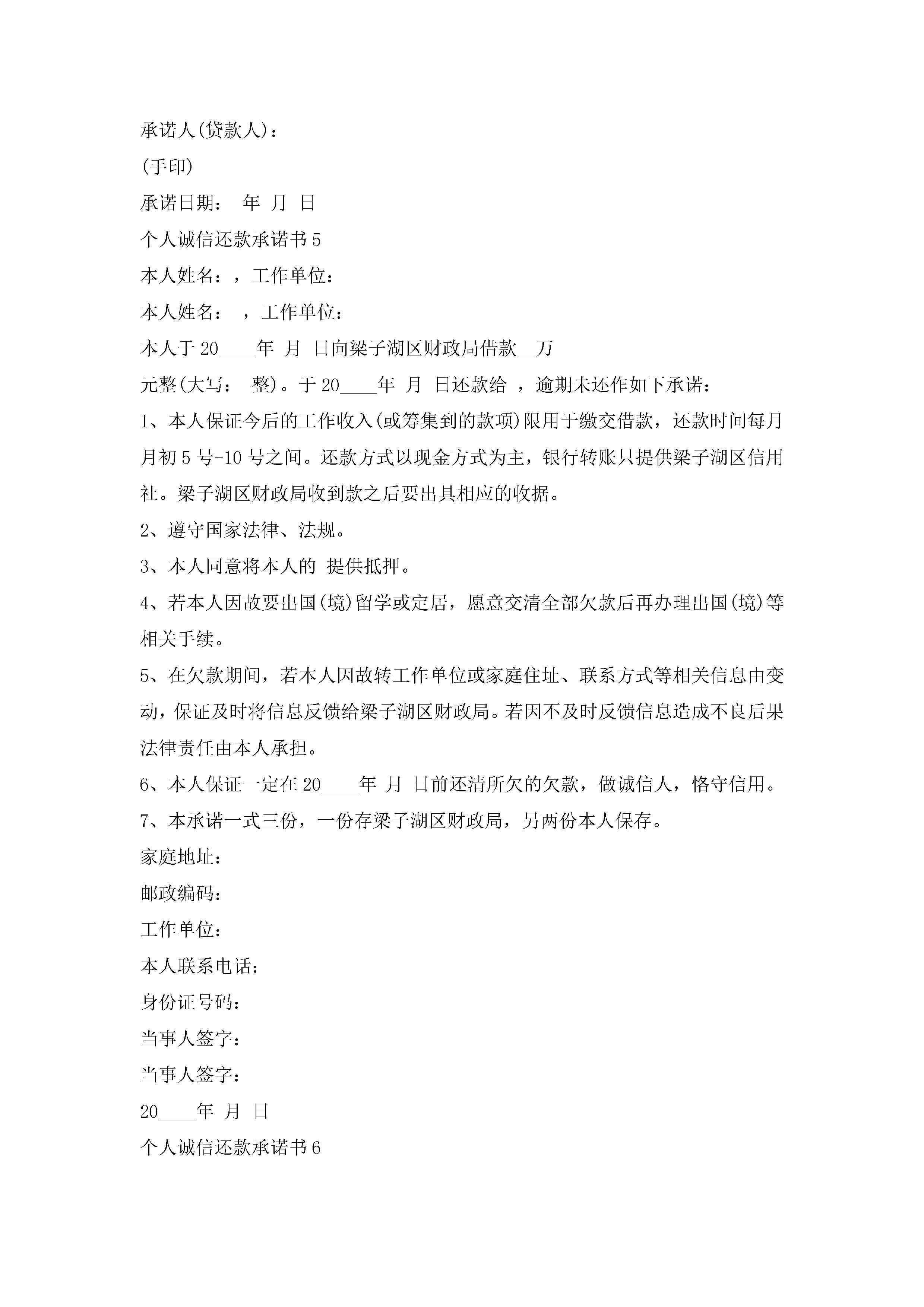 个人诚信还款承诺书6篇范文jugei3月22日 16:22发布关注195 个人诚信还款承诺书6篇范文此内容为付费资源,请付费后查看¥10.9 单篇文档限时特惠¥15个人会员开通企业会员开通立即下载无需登陆!可直接快捷下载单个模板付费资源© 版权声明THE ENDWord模板# 实用文档# 实用模板# 信函模板# 承诺书 如有问题,可点击最底部“联系我们”联系客服 分享QQ空间微博QQ好友海报分享复制链接收藏