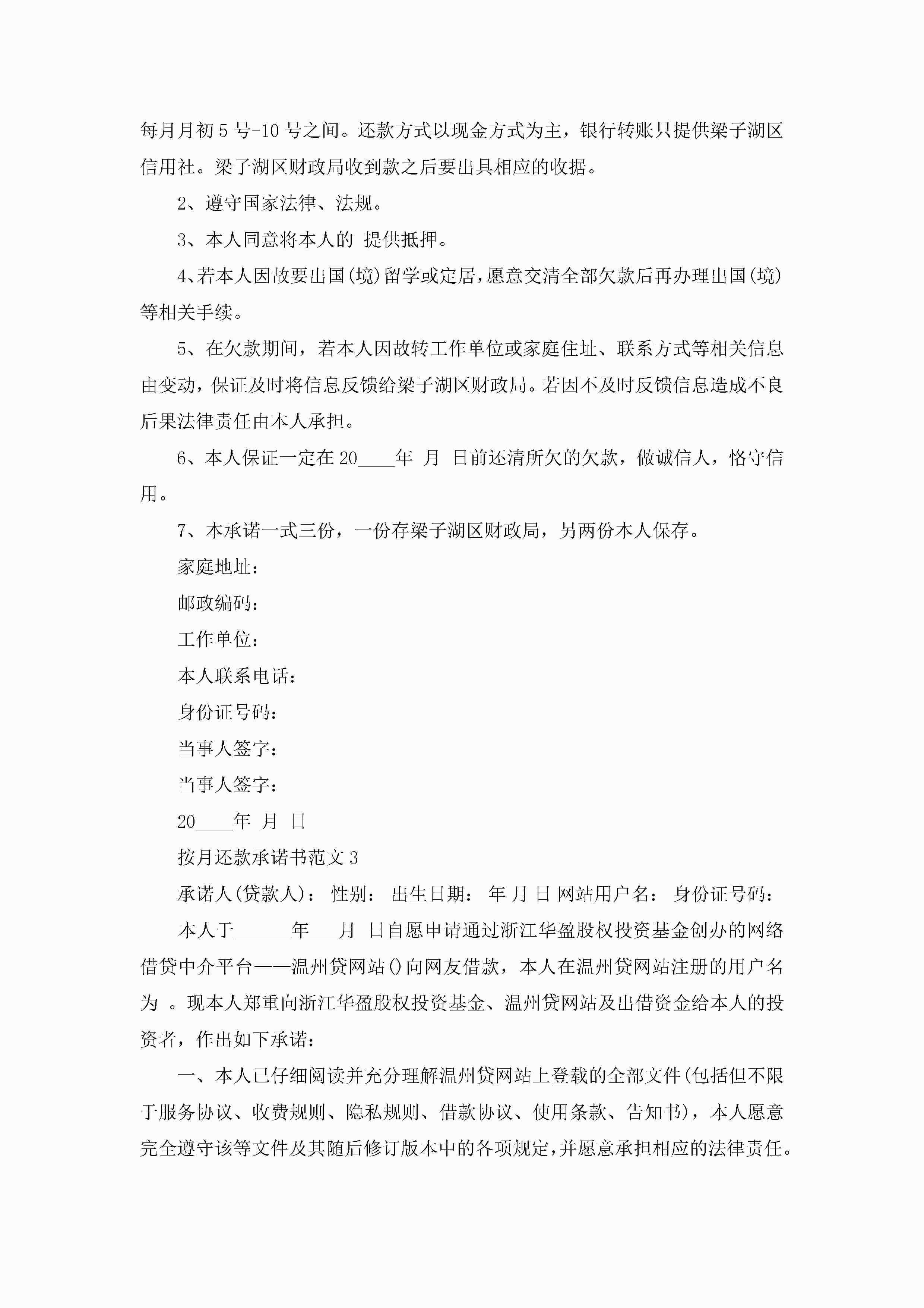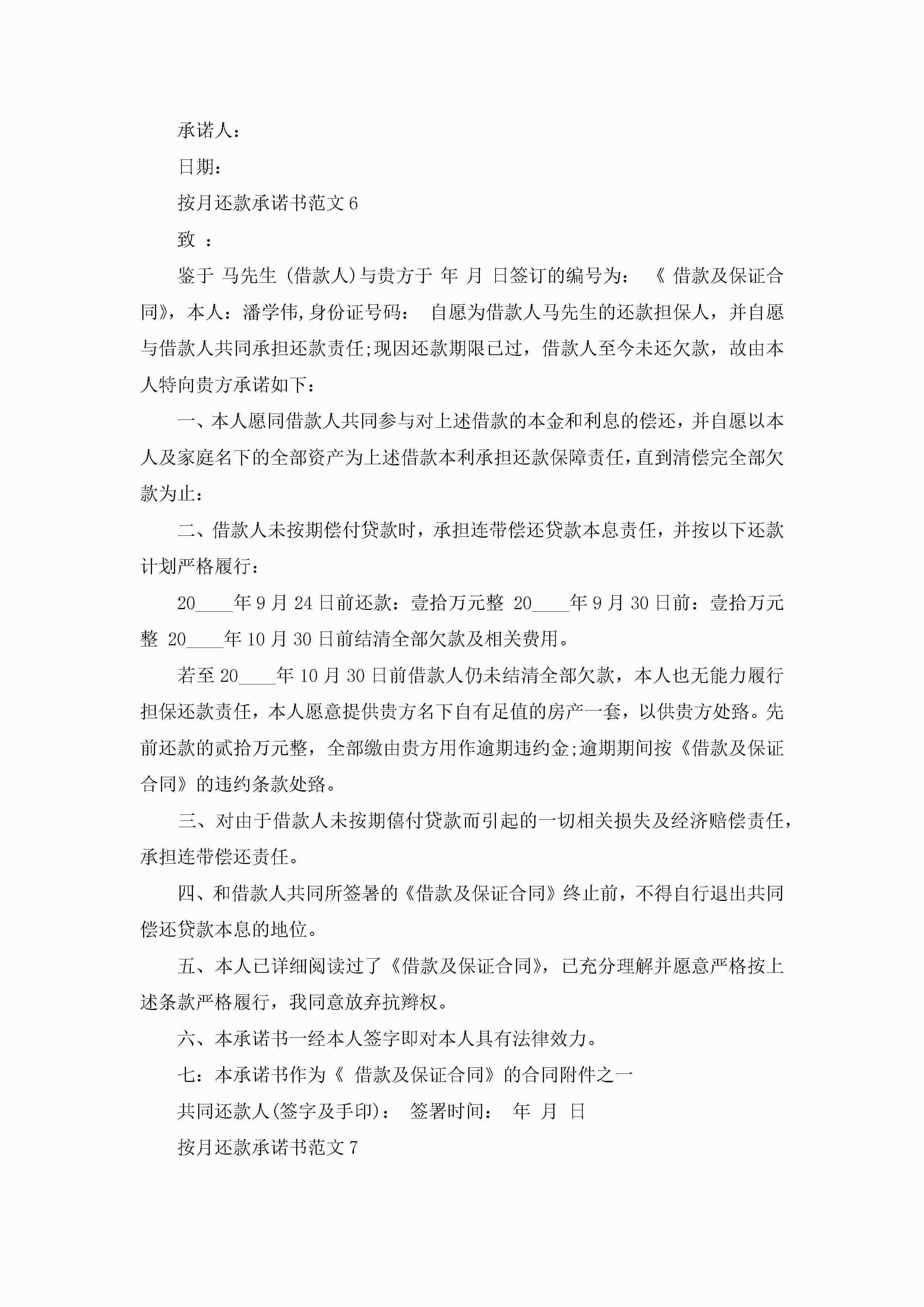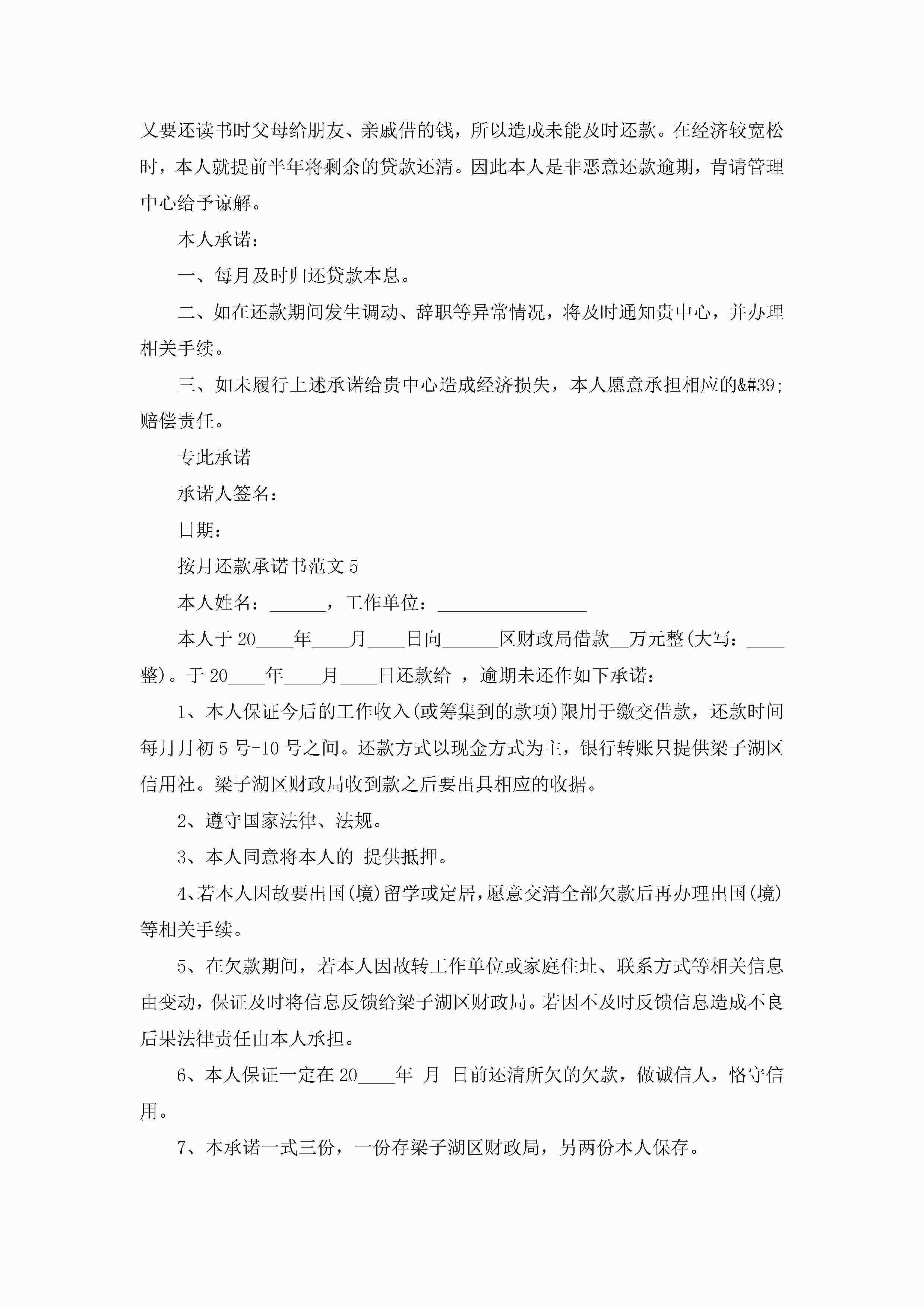 按月还款承诺书范文7篇jugei3月22日 16:22发布关注195 按月还款承诺书范文7篇此内容为付费资源,请付费后查看¥10.9 单篇文档限时特惠¥15个人会员开通企业会员开通立即下载无需登陆!可直接快捷下载单个模板付费资源© 版权声明THE ENDWord模板# 实用文档# 实用模板# 信函模板# 承诺书 如有问题,可点击最底部“联系我们”联系客服 分享QQ空间微博QQ好友海报分享复制链接收藏