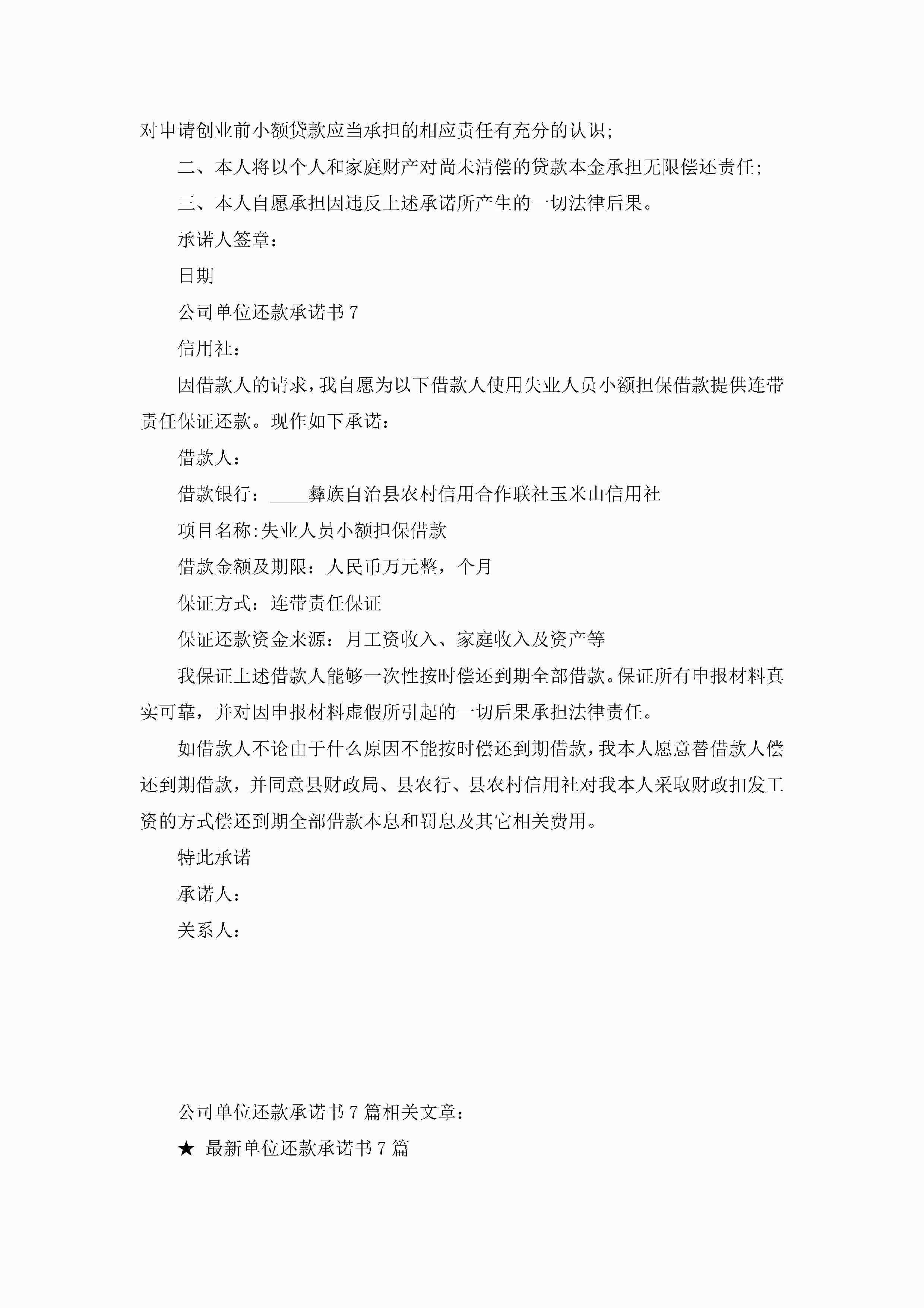 公司单位还款承诺书7篇最新jugei3月22日 16:22发布关注196 公司单位还款承诺书7篇最新此内容为付费资源,请付费后查看¥10.9 单篇文档限时特惠¥15个人会员开通企业会员开通立即下载无需登陆!可直接快捷下载单个模板付费资源© 版权声明THE ENDWord模板# 实用文档# 实用模板# 信函模板# 承诺书 如有问题,可点击最底部“联系我们”联系客服 分享QQ空间微博QQ好友海报分享复制链接收藏