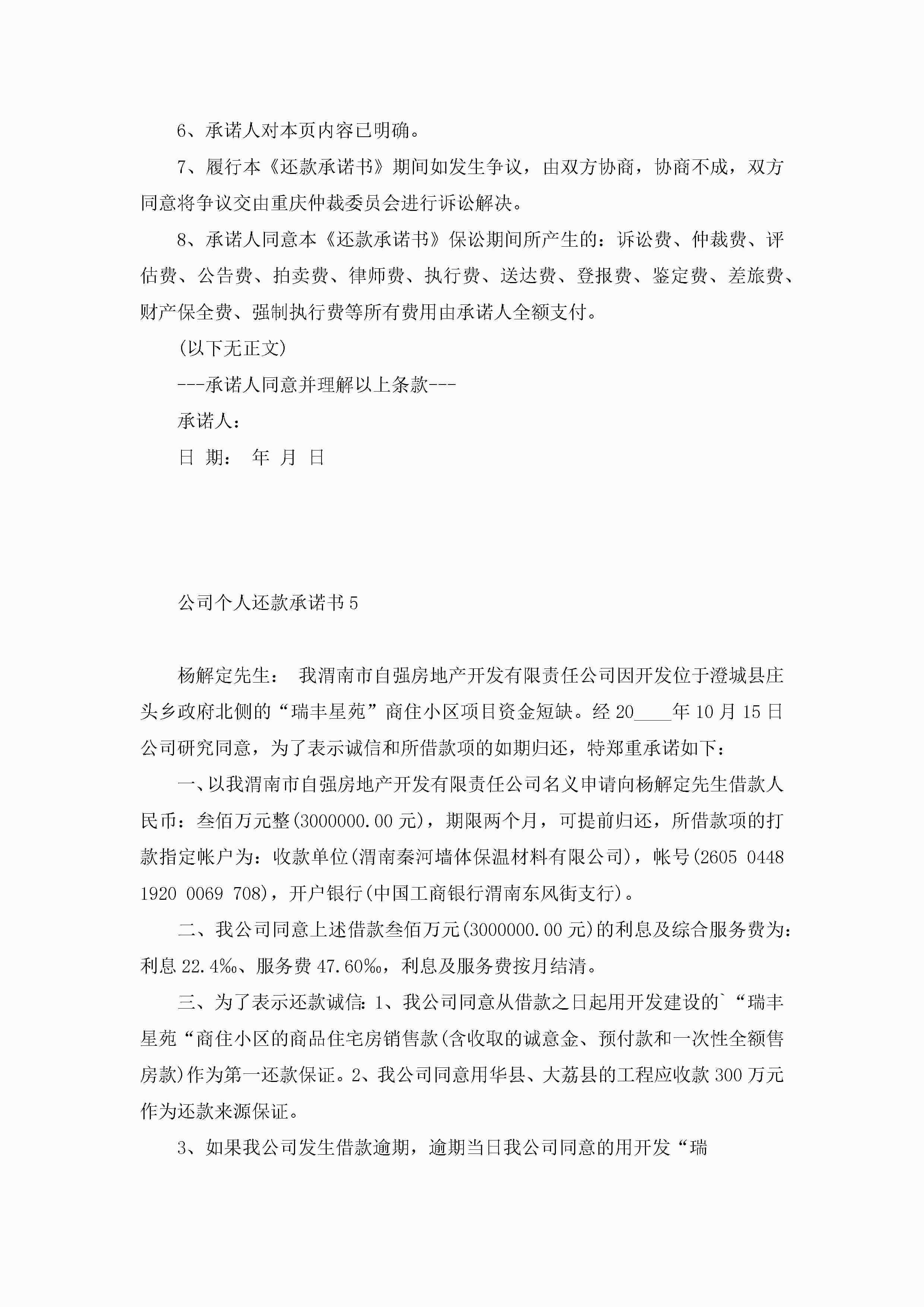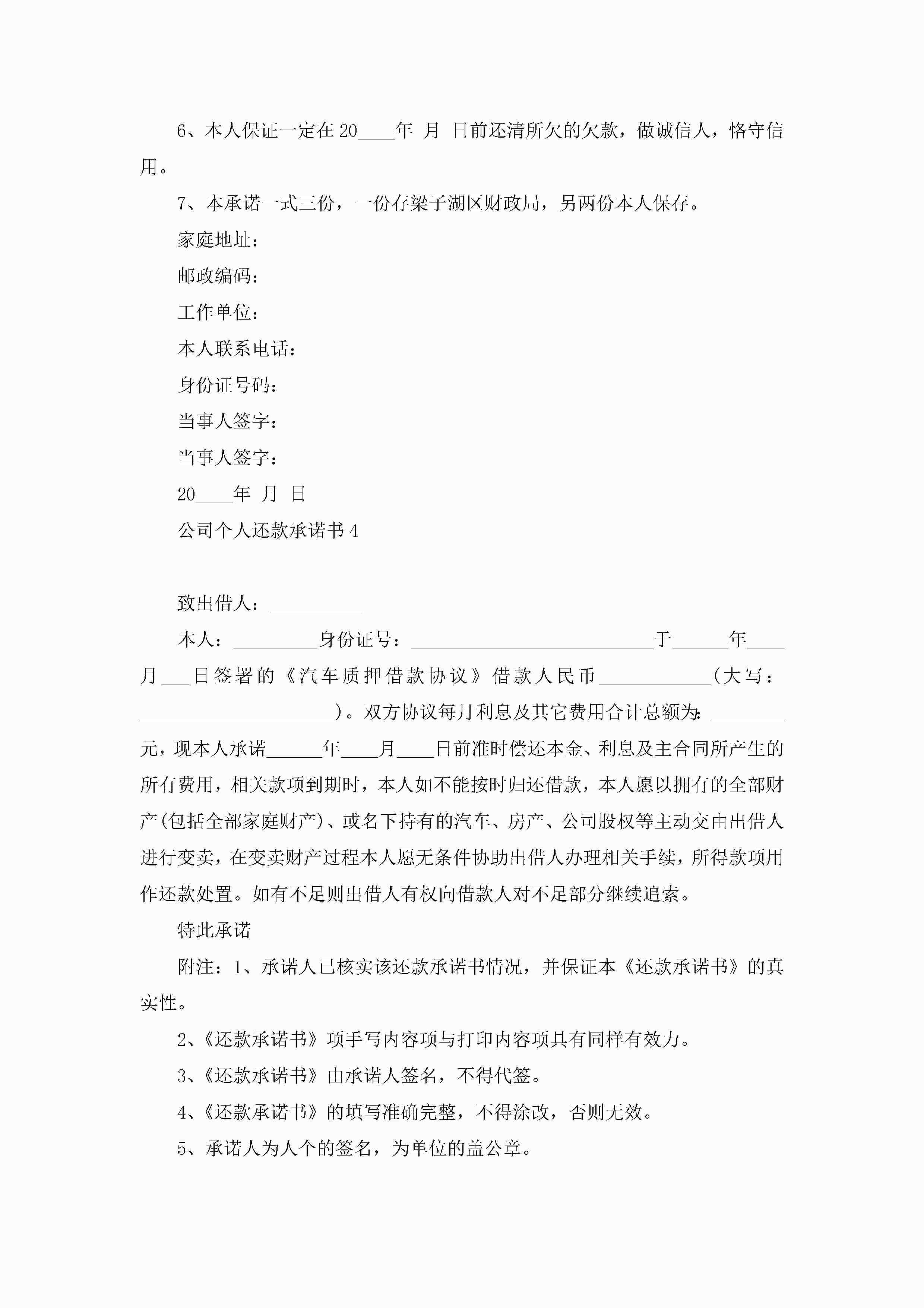 公司个人还款承诺书5篇范文jugei3月22日 16:22发布关注192 公司个人还款承诺书5篇范文此内容为付费资源,请付费后查看¥10.9 单篇文档限时特惠¥15个人会员开通企业会员开通立即下载无需登陆!可直接快捷下载单个模板付费资源© 版权声明THE ENDWord模板# 实用文档# 实用模板# 信函模板# 承诺书 如有问题,可点击最底部“联系我们”联系客服 分享QQ空间微博QQ好友海报分享复制链接收藏