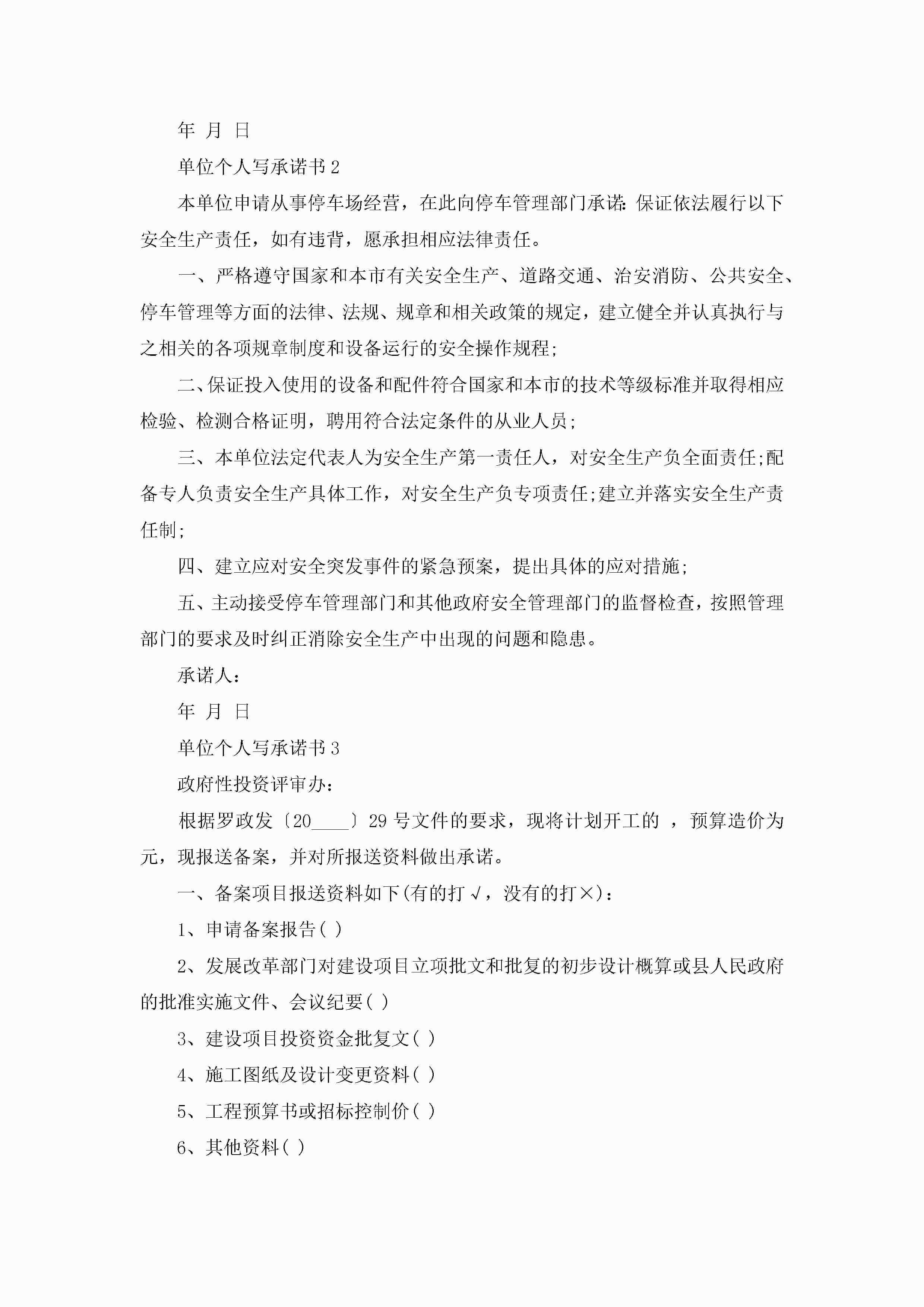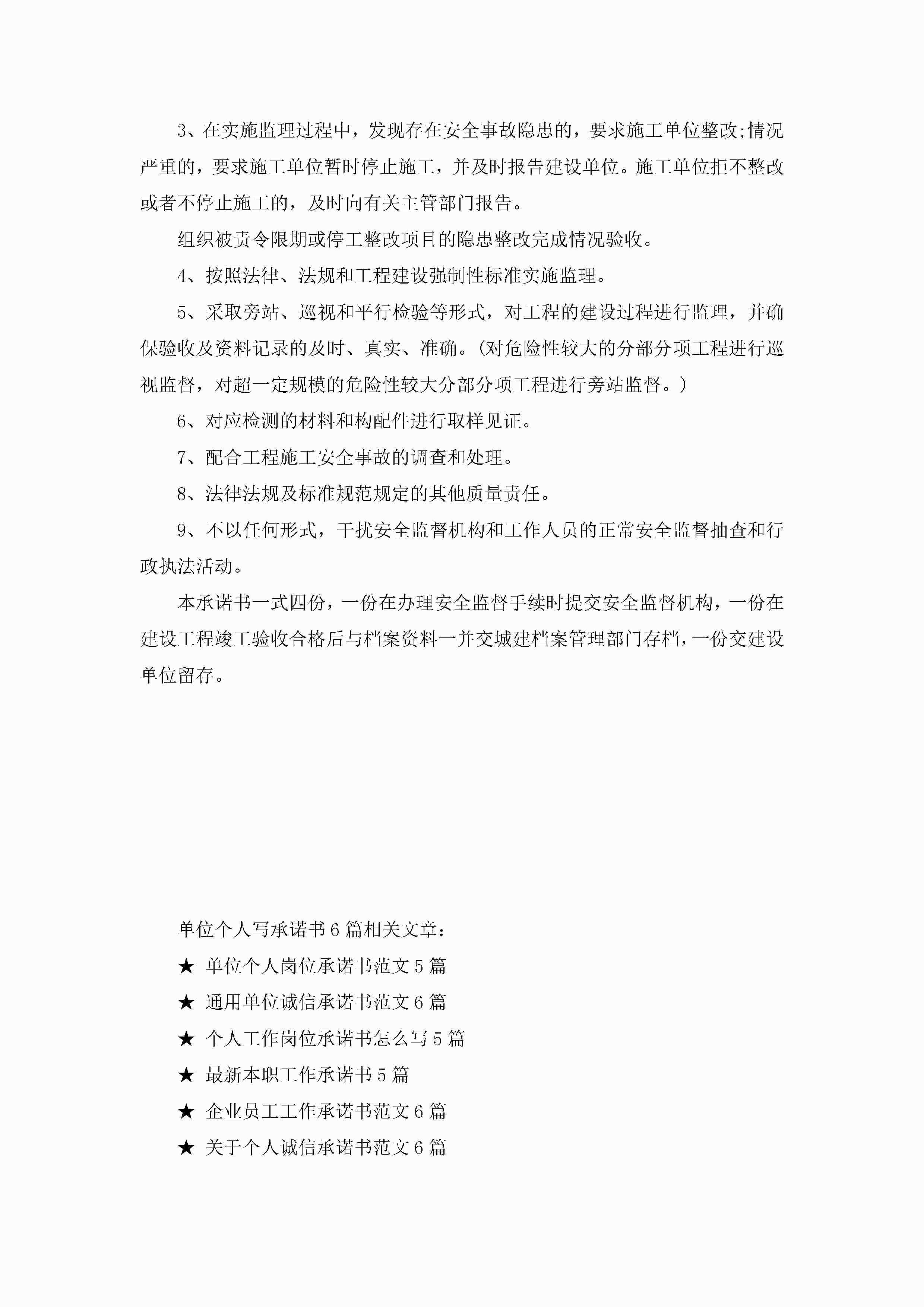 单位个人写承诺书6篇范文jugei3月22日 16:22发布关注220 单位个人写承诺书6篇范文此内容为付费资源,请付费后查看¥10.9 单篇文档限时特惠¥15个人会员开通企业会员开通立即下载无需登陆!可直接快捷下载单个模板付费资源© 版权声明THE ENDWord模板# 实用文档# 实用模板# 信函模板# 承诺书 如有问题,可点击最底部“联系我们”联系客服 分享QQ空间微博QQ好友海报分享复制链接收藏