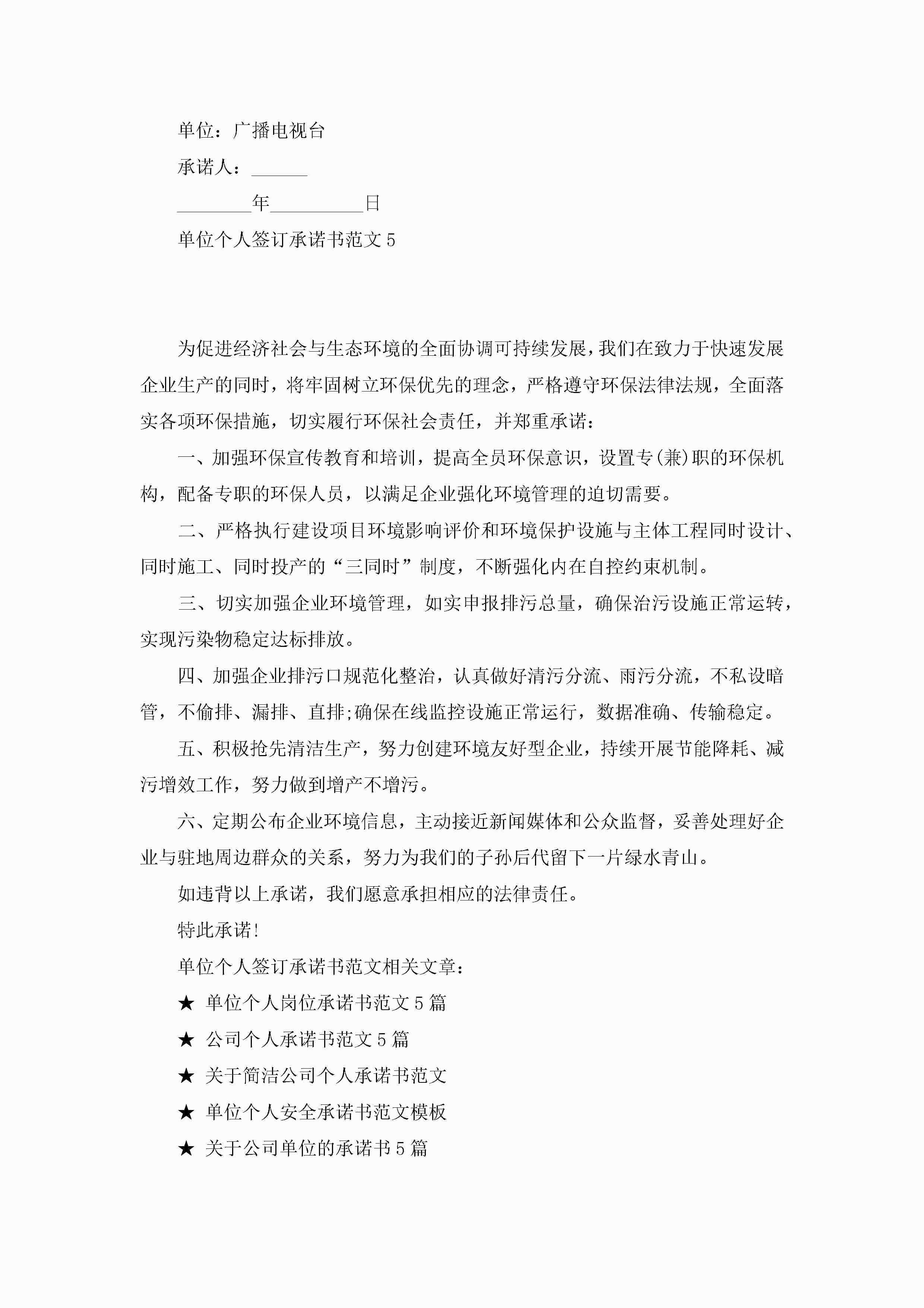 单位个人签订承诺书范文5篇jugei3月22日 16:22发布关注195 单位个人签订承诺书范文5篇此内容为付费资源,请付费后查看¥10.9 单篇文档限时特惠¥15个人会员开通企业会员开通立即下载无需登陆!可直接快捷下载单个模板付费资源© 版权声明THE ENDWord模板# 实用文档# 实用模板# 信函模板# 承诺书 如有问题,可点击最底部“联系我们”联系客服 分享QQ空间微博QQ好友海报分享复制链接收藏