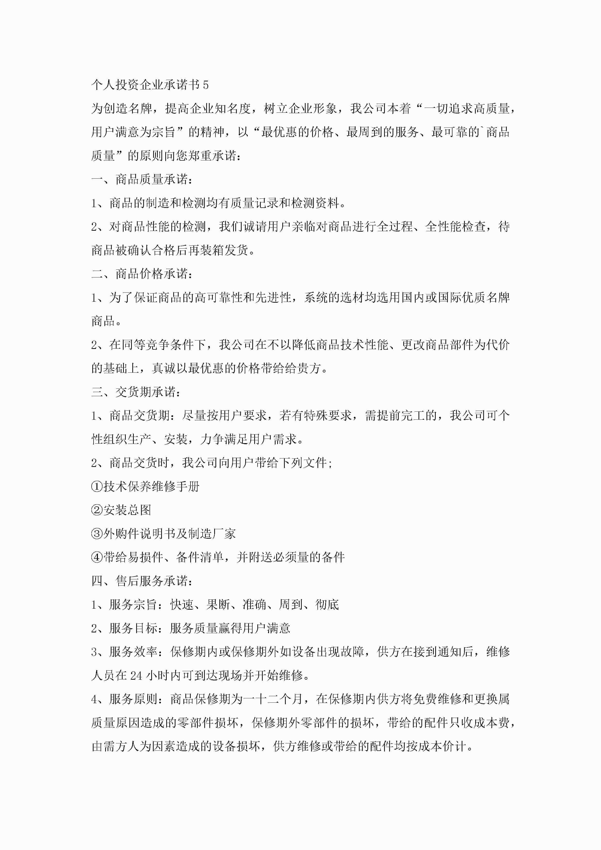 个人投资企业承诺书6篇jugei3月22日 16:22发布关注299 个人投资企业承诺书6篇此内容为付费资源,请付费后查看¥10.9 单篇文档限时特惠¥15个人会员开通企业会员开通立即下载无需登陆!可直接快捷下载单个模板付费资源© 版权声明THE ENDWord模板# 实用文档# 实用模板# 信函模板# 承诺书 如有问题,可点击最底部“联系我们”联系客服 分享QQ空间微博QQ好友海报分享复制链接收藏
