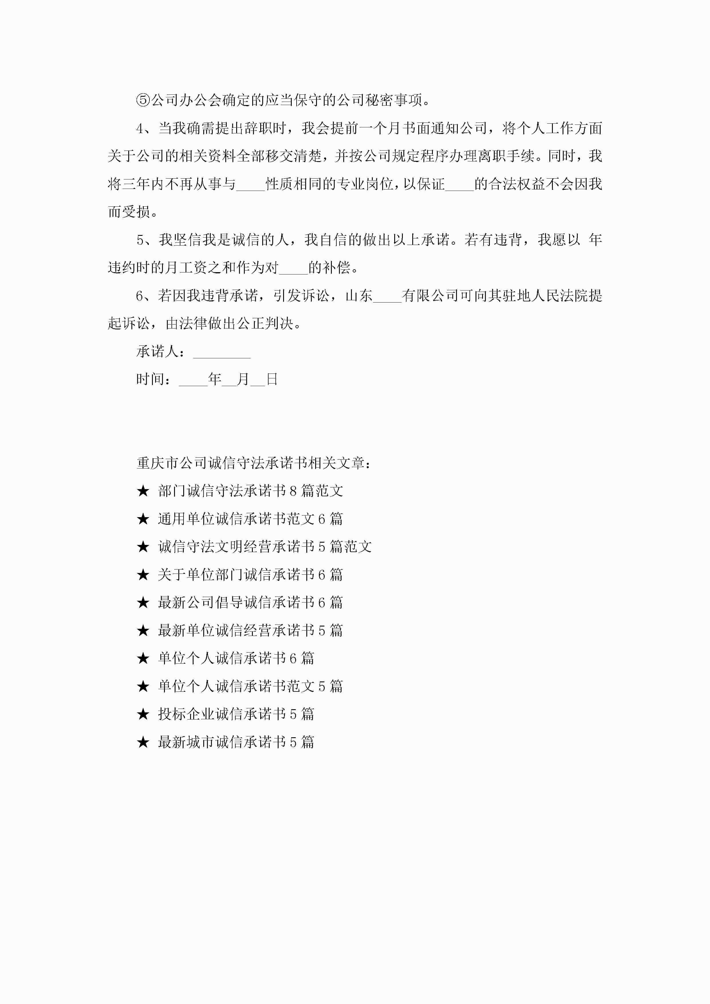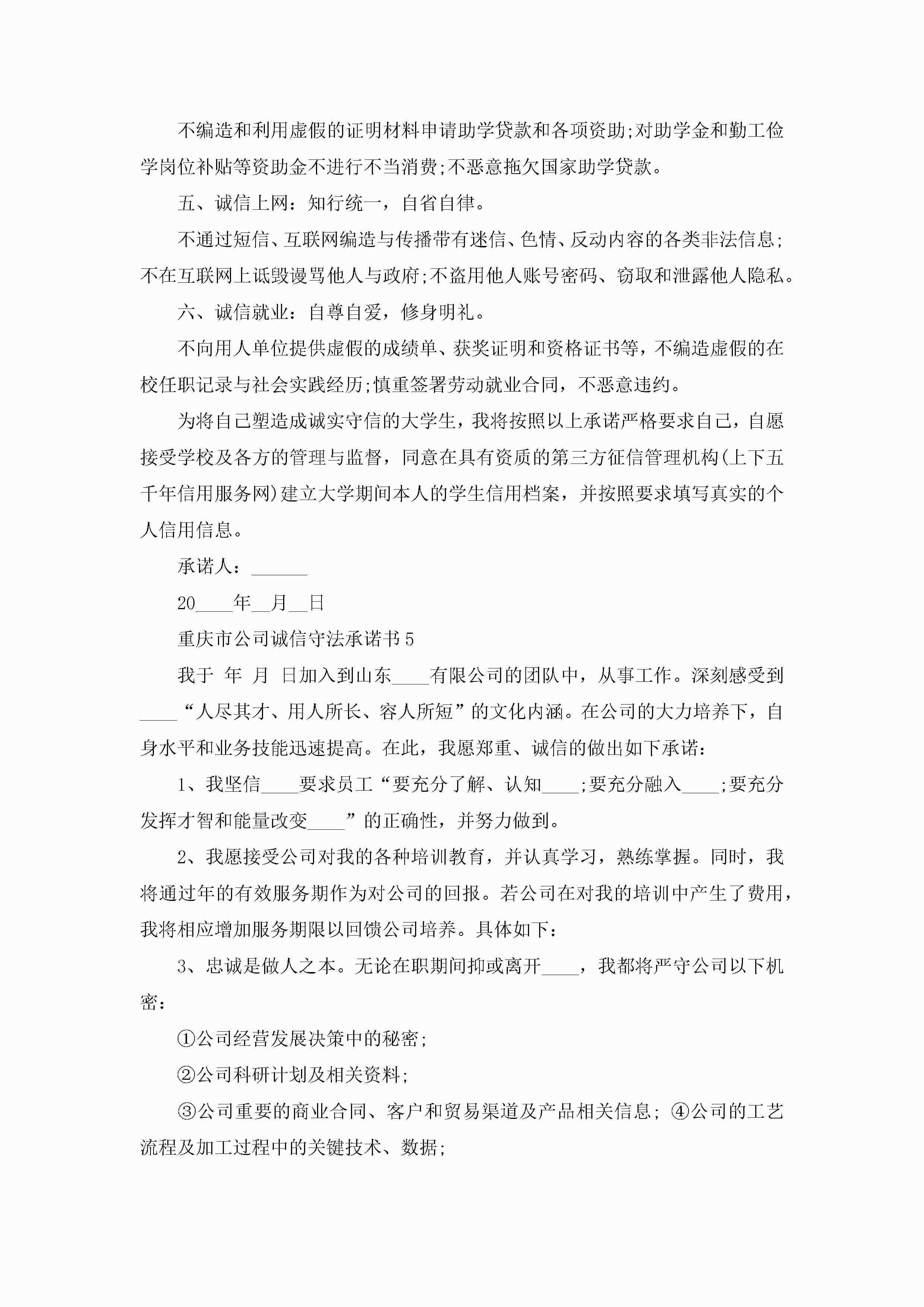 重庆市公司诚信守法承诺书5篇jugei3月22日 16:22发布关注265 重庆市公司诚信守法承诺书5篇此内容为付费资源,请付费后查看¥10.9 单篇文档限时特惠¥15个人会员开通企业会员开通立即下载无需登陆!可直接快捷下载单个模板付费资源© 版权声明THE ENDWord模板# 实用文档# 实用模板# 信函模板# 承诺书 如有问题,可点击最底部“联系我们”联系客服 分享QQ空间微博QQ好友海报分享复制链接收藏