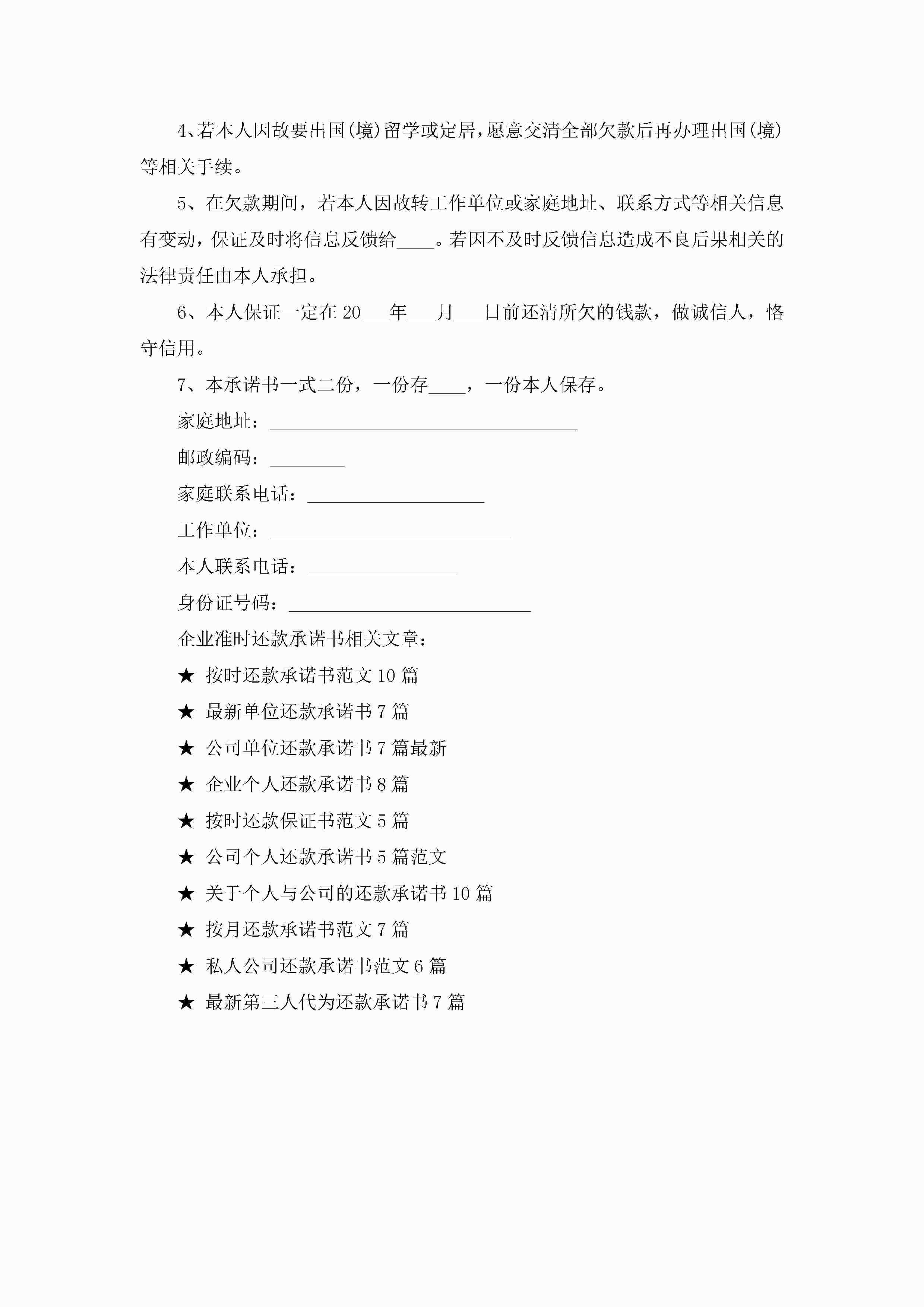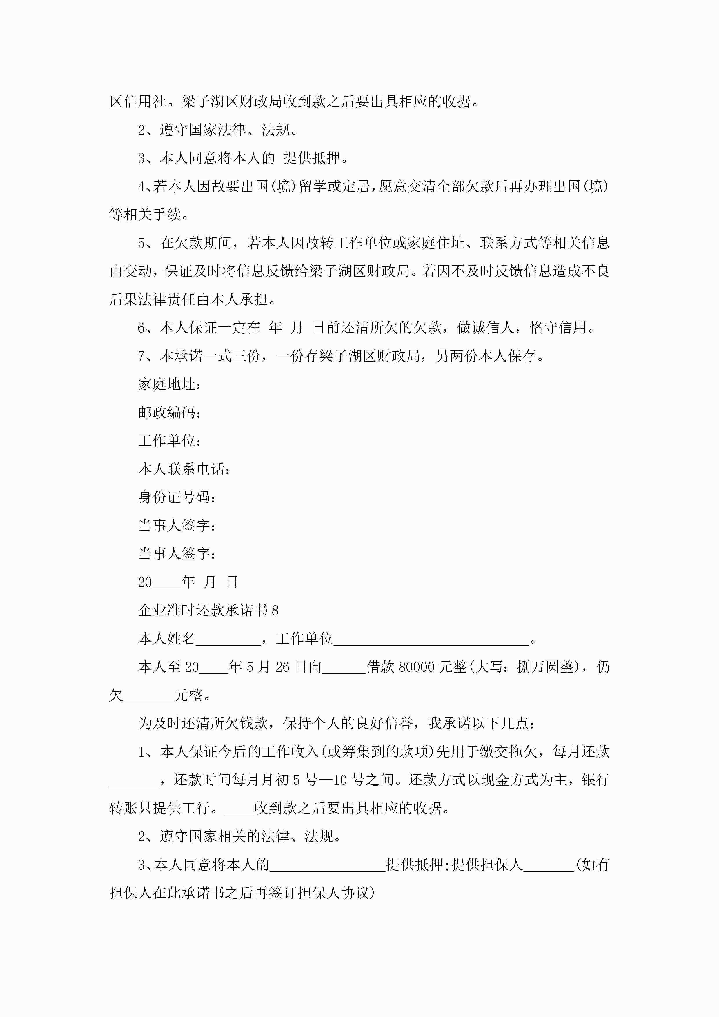 企业准时还款承诺书8篇jugei3月22日 16:22发布关注401 企业准时还款承诺书8篇此内容为付费资源,请付费后查看¥10.9 单篇文档限时特惠¥15个人会员开通企业会员开通立即下载无需登陆!可直接快捷下载单个模板付费资源© 版权声明THE ENDWord模板# 实用文档# 实用模板# 信函模板# 承诺书 如有问题,可点击最底部“联系我们”联系客服 分享QQ空间微博QQ好友海报分享复制链接收藏